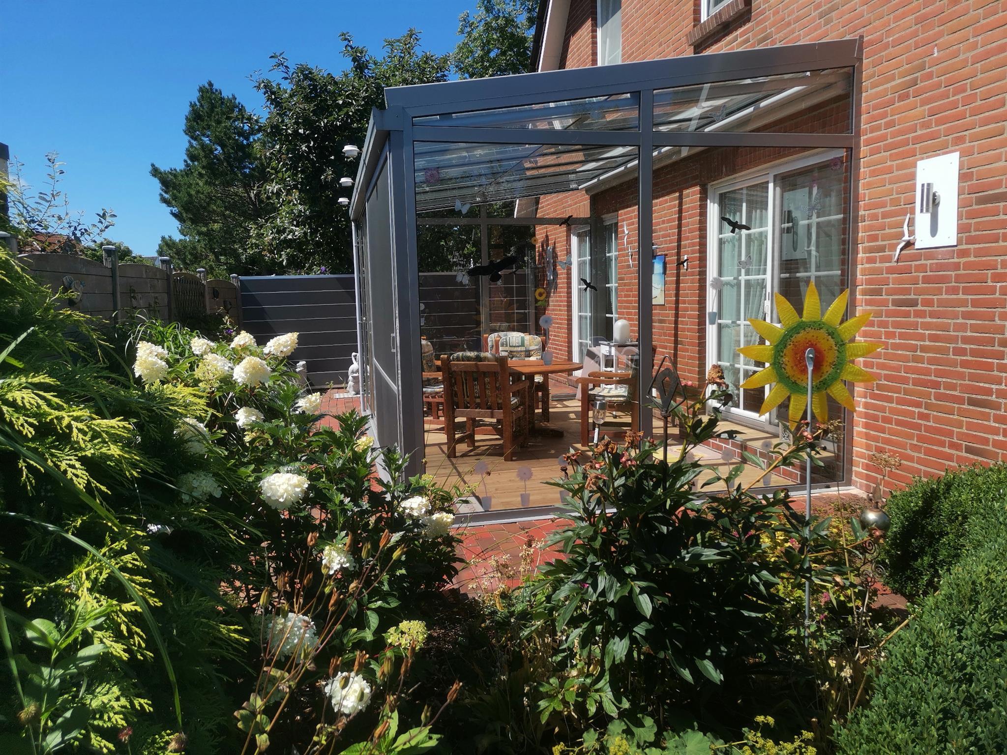 Der angrenzende, lichtdurchflutete Wintergarten fängt jeden Sonnenstrahl ein und wird Ihr Lieblingsplatz im Haus sein, wenn die Sonne einmal nicht den ganzen Tag ununterbrochen scheint. Auch wenn ein kräftiger Sommerregen auf das Glasdach prasselt, während sie einen heißen Tee genießen, werden sie den Wintergarten lieben.