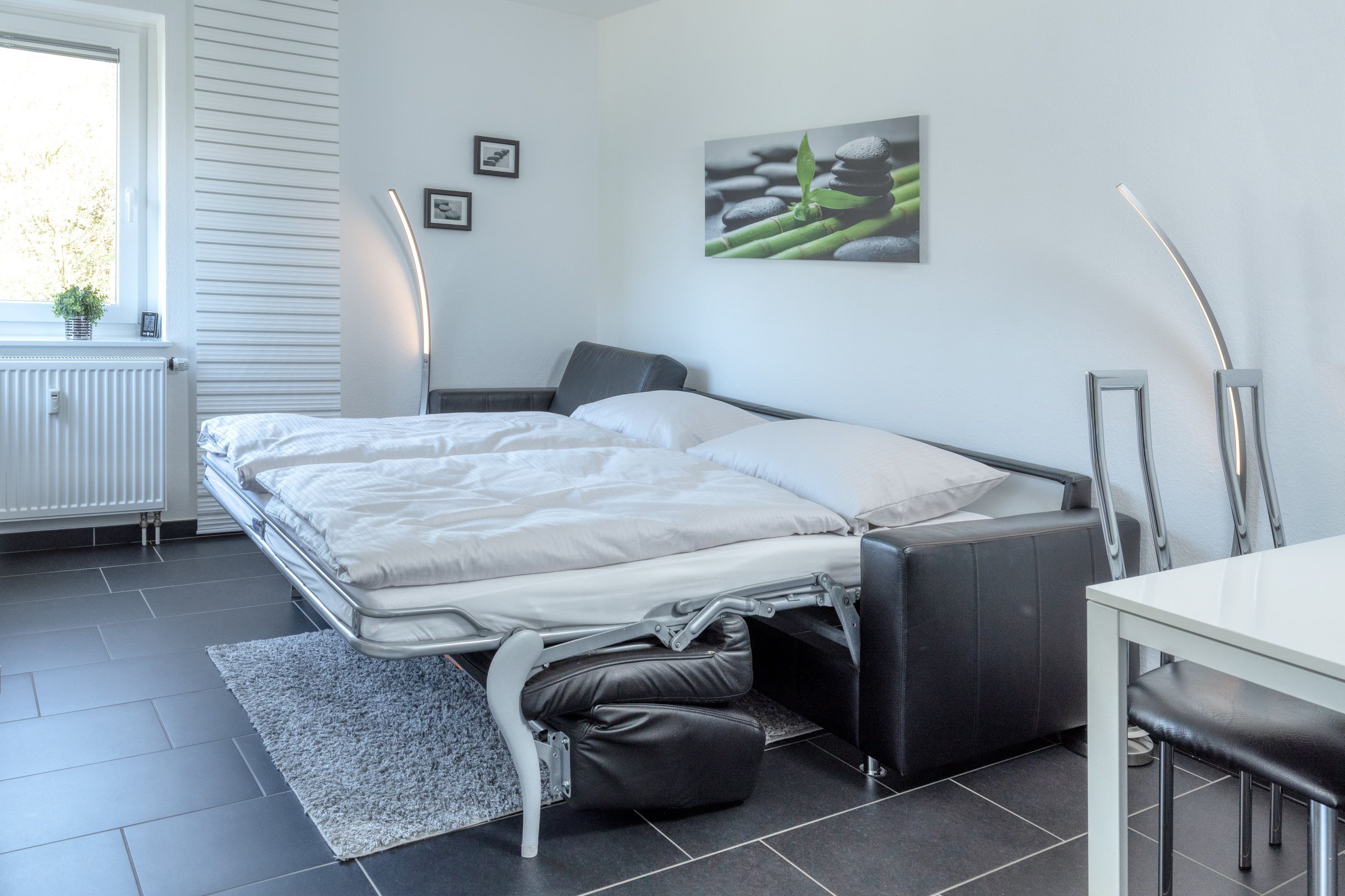 Das Appartement besteht aus einem Schlafzimmer mit Doppelbett, einem Wohnbereich mit ausziehbarem Schlafsofa, eine voll ausgestattete integrierte Küche, einem Badezimmer mit Dusche sowie WC.