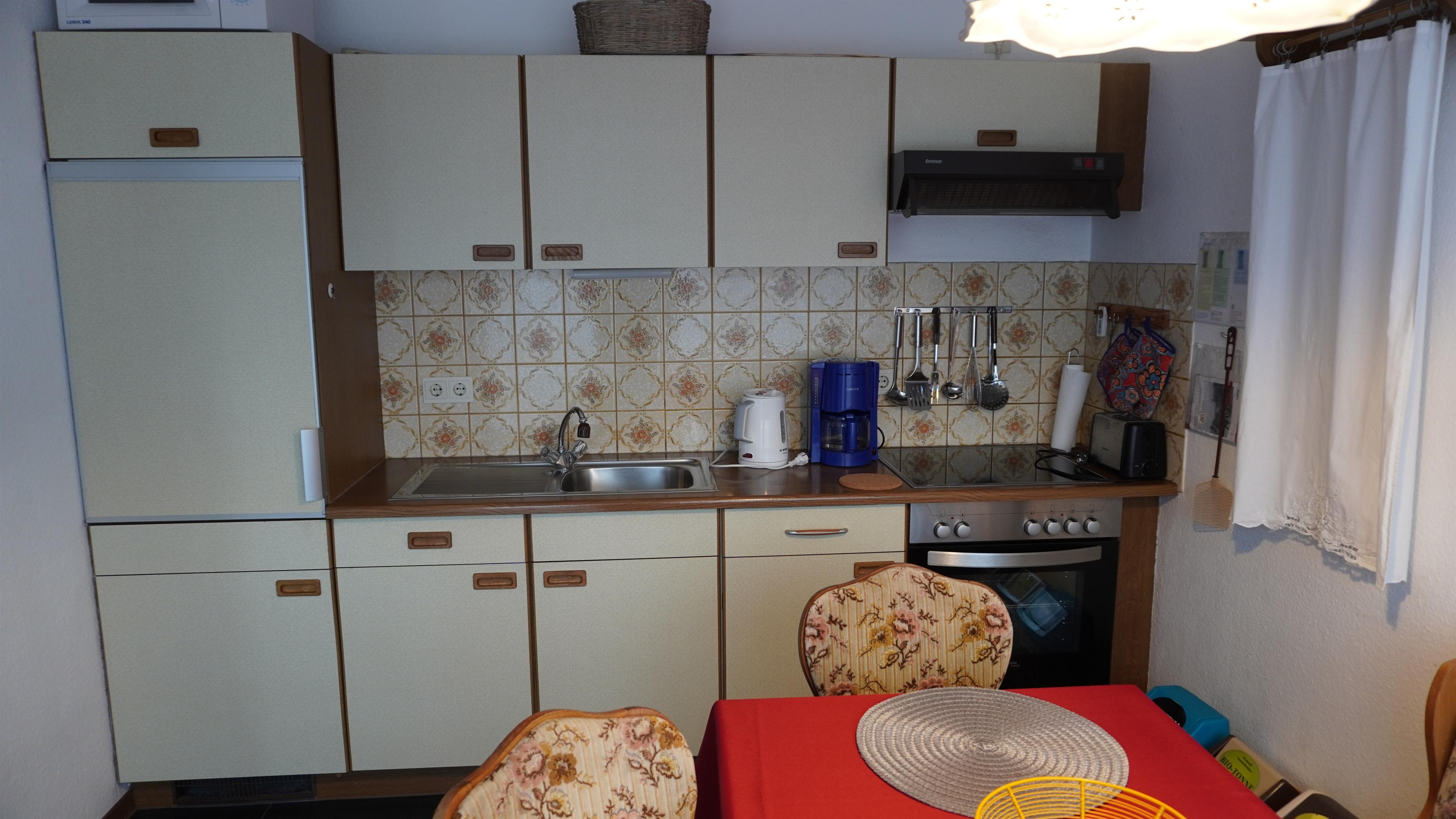 Die Küche ist separat mit diversen elektrischen Geräten, wie Backofen, Mikrowelle und Geschirrspüler ausgestattet.