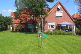 Unser Ferienhaus befindet sich in ruhiger Lage direkt am Deich und bietet Ihnen in drei Ferienwohnungen die Möglichkeit sich in Ihrem Urlaub rundum wohlzufühlen. Genießen Sie nach einem Strandbesuch oder Tagesausflug die schöne Aussicht, die sich Ihnen bietet, wenn Sie in unserem Garten den Tag ausklingen lassen oder wie man hier sagt Freilenzen Sie. Denn hier erwarten Sie drei separate Terrassen mit Gartenmöbeln, sowie eine Spiel- und Liegewiese mit Schaukel. PKW-Einstellplatz direkt am Haus. Für mitgebrachte Fahrräder bieten wir Platz in der angrenzenden Garage, in der sich gleichzeitig eine Waschmaschine und ein Trockner für alle Gäste befinden. Alle Wohnungen verfügen über kostenfreies WLAN.