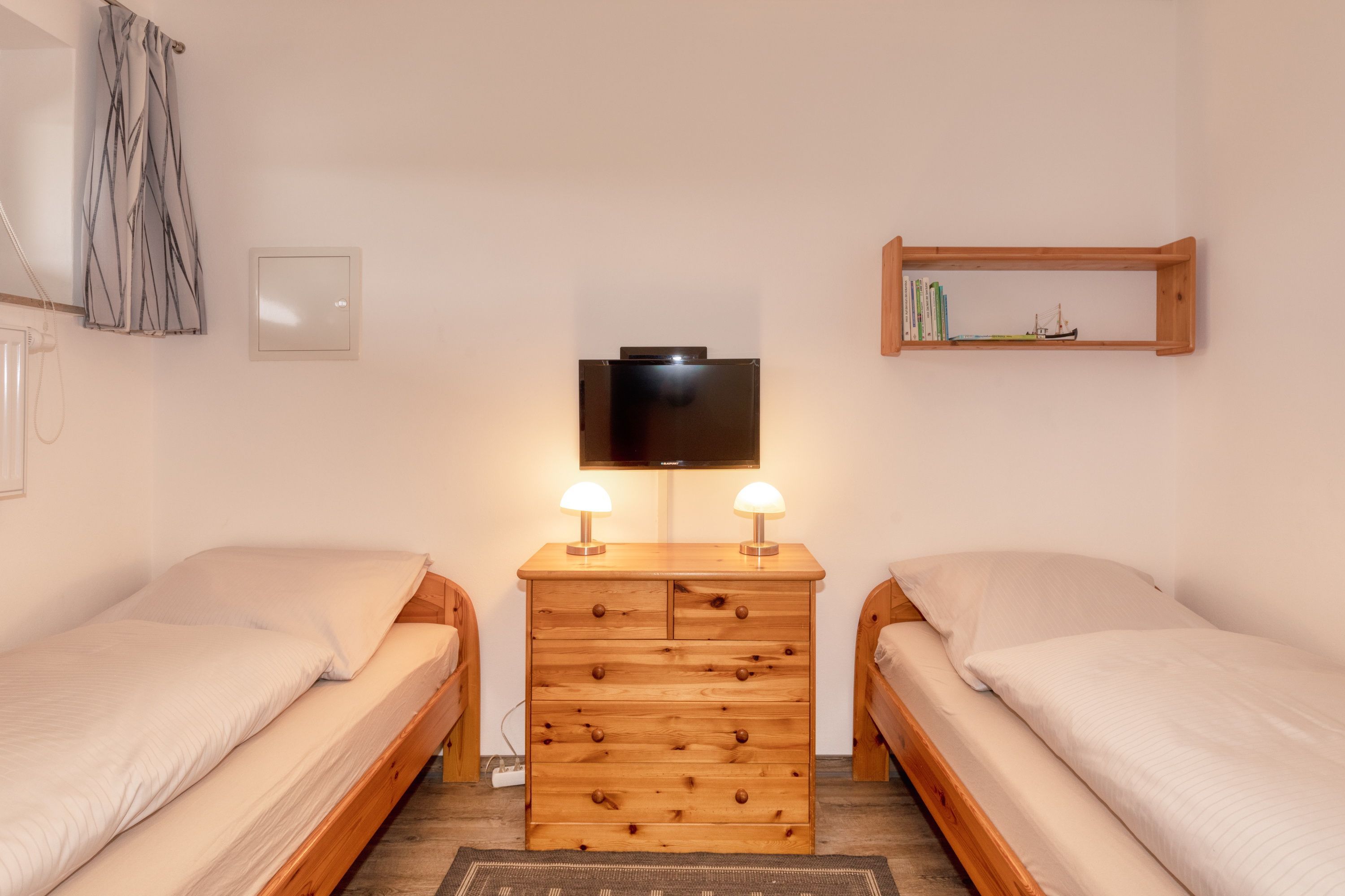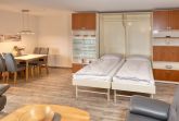 Das Appartement besteht aus einem Schlafzimmer mit zwei Einzelbetten, einem Wohnbereich mit ausklappbaren Schrankbetten, eine separate voll ausgestattete integrierte Küche, einem Badezimmer mit Dusche sowie WC.