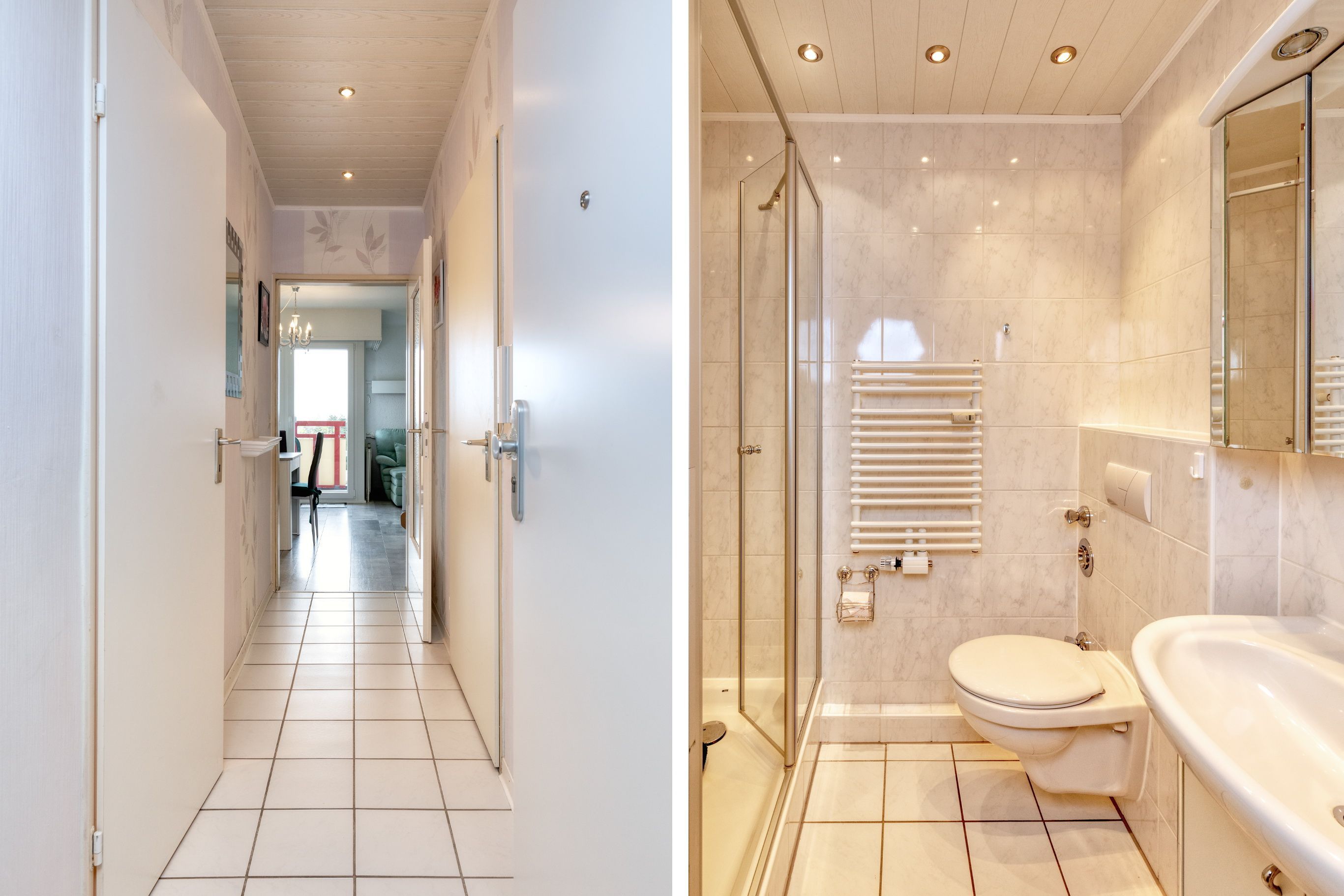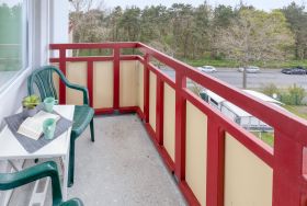 Das Apartment 66 ist ein 2-Raum-Apartment im 5. Obergeschoss für bis zu 4 Personen mit 38 qm. Der möblierte Ostbalkon bietet morgens Sonne und nachmittags Schatten.