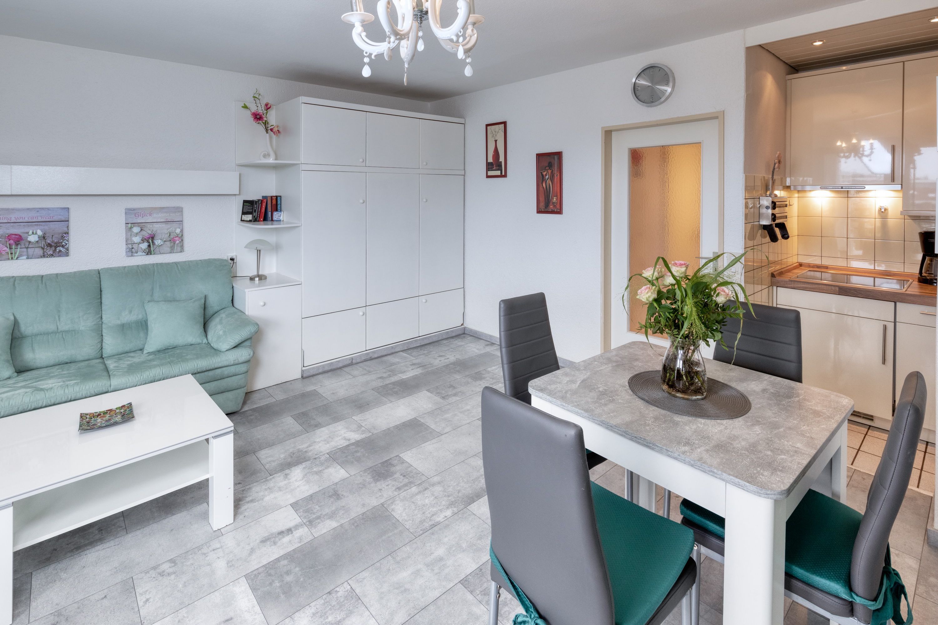 Das Apartment besteht aus einem Schlafzimmer mit Schrankbett, einem Wohnbereich mit Schrankbett, eine voll ausgestattete integrierter Küche, einem Badezimmer mit Dusche sowie WC.