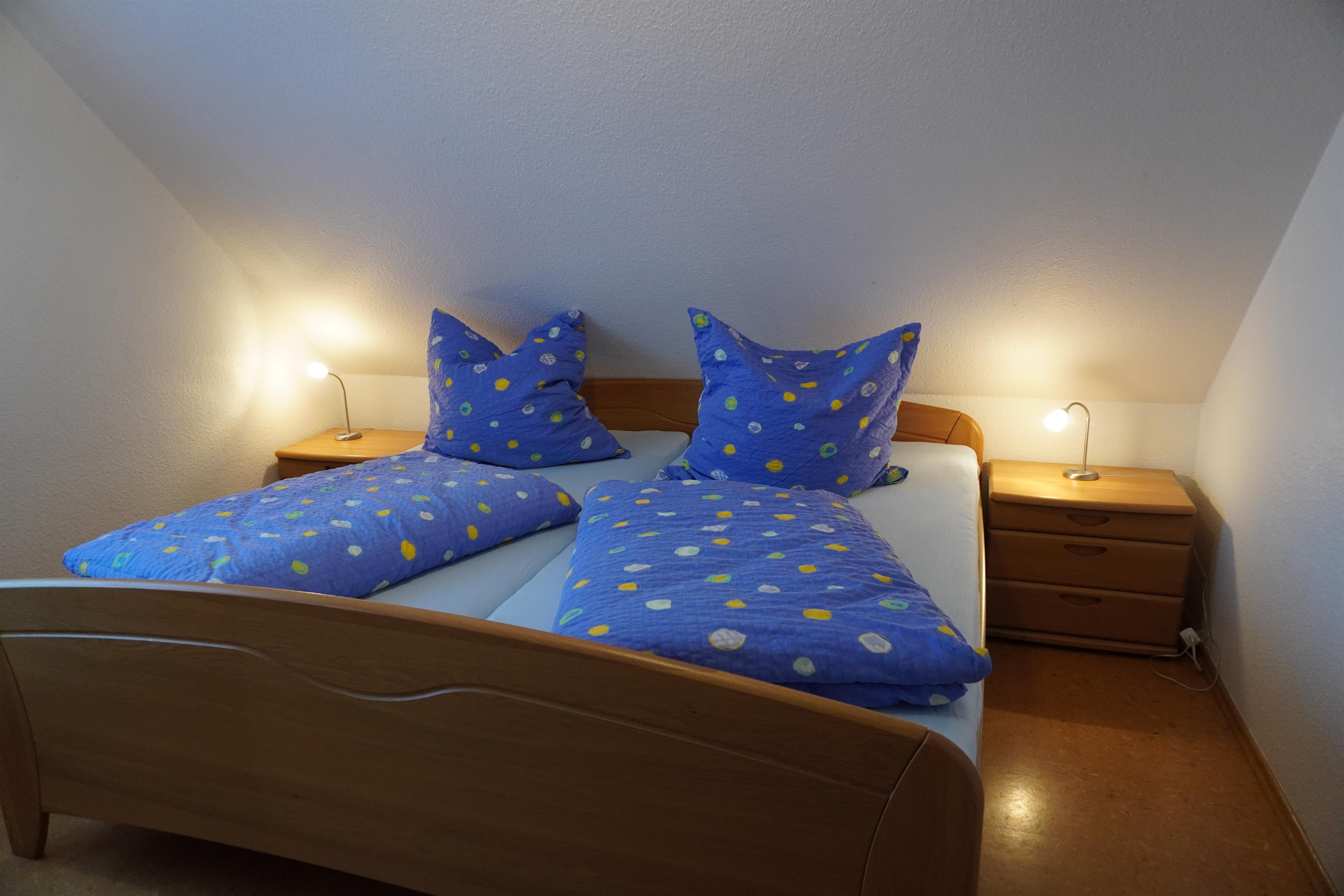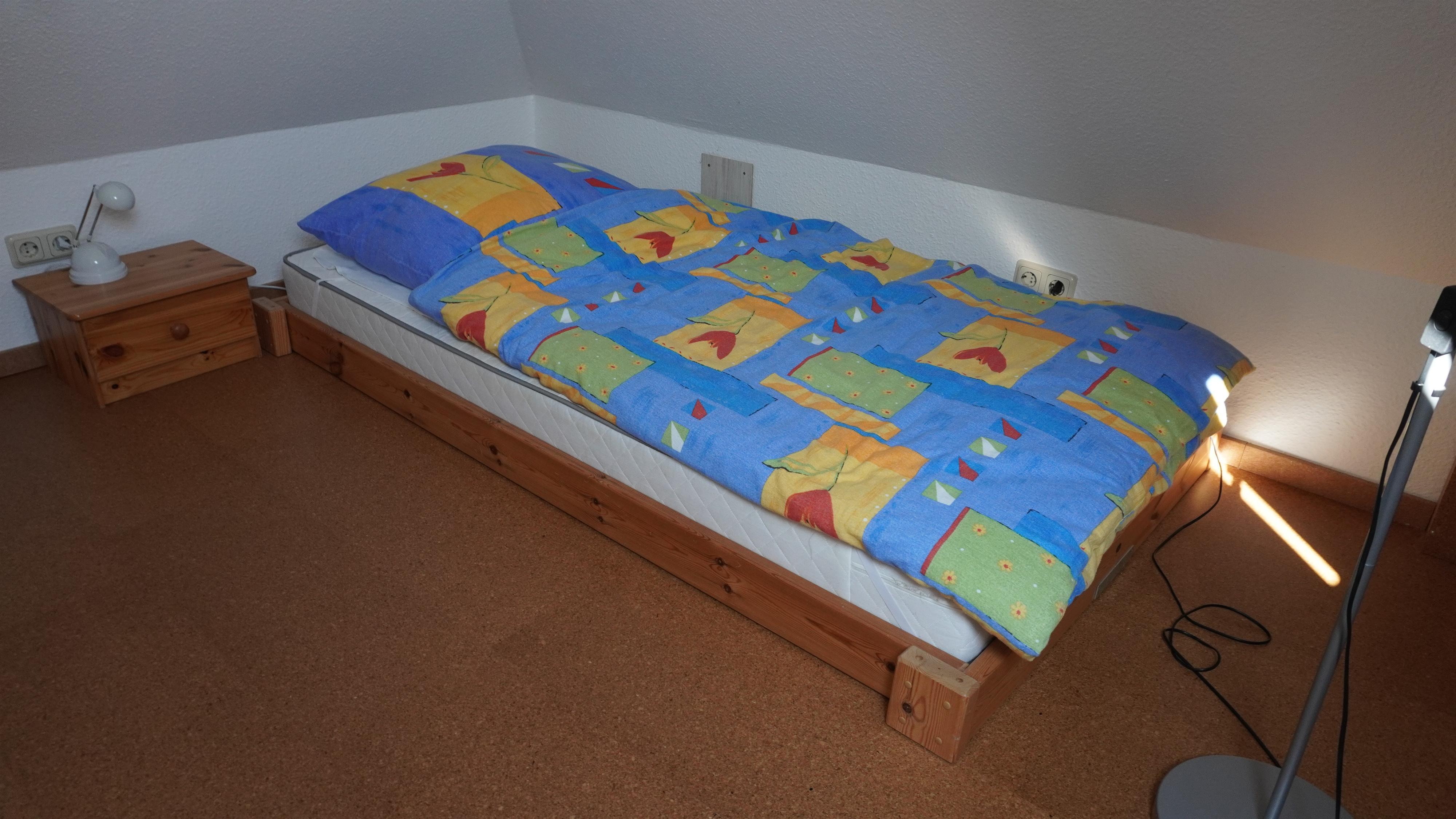 Im Erdgeschoss erwartet Sie ein gemütlich eingerichteter Wohn-/Essbereich mit Sat-TV, DVD-Player, DVDs und Stereoanlage mit Radio, CD- und MP3-Abspielmöglichkeit. Die separate Küche verfügt über jeglichen Komfort wie z.B. Geschirrspülmaschine, Vierplattenherd mit Backofen, Kühlschrank mit 3 Sterne-Gefrierfach und div. elektrische Geräte. Ein Gäste-WC mit einer Waschmaschine ist ebenfalls vorhanden. Als Schlafdomizil dienen zwei Schlafräume im Obergeschoss. Das Elternschlafzimmer ist mit einem Doppelbett (2 m x 2 m) ausgestattet und das Kinderzimmer verfügt über ein französisches Bett (1,40 m x 2 m Spannlaken ist vorhanden) sowie einem Jugendbett (1 m x 2 m). Das Bad ist mit Dusche und WC ausgestattet. Unsere kleinen Gäste können sich auf ein Reisebett (0,60 m x 1,20 m) mit separater Matratze inkl. Spannlaken und einen Kinderhochstuhl freuen.
