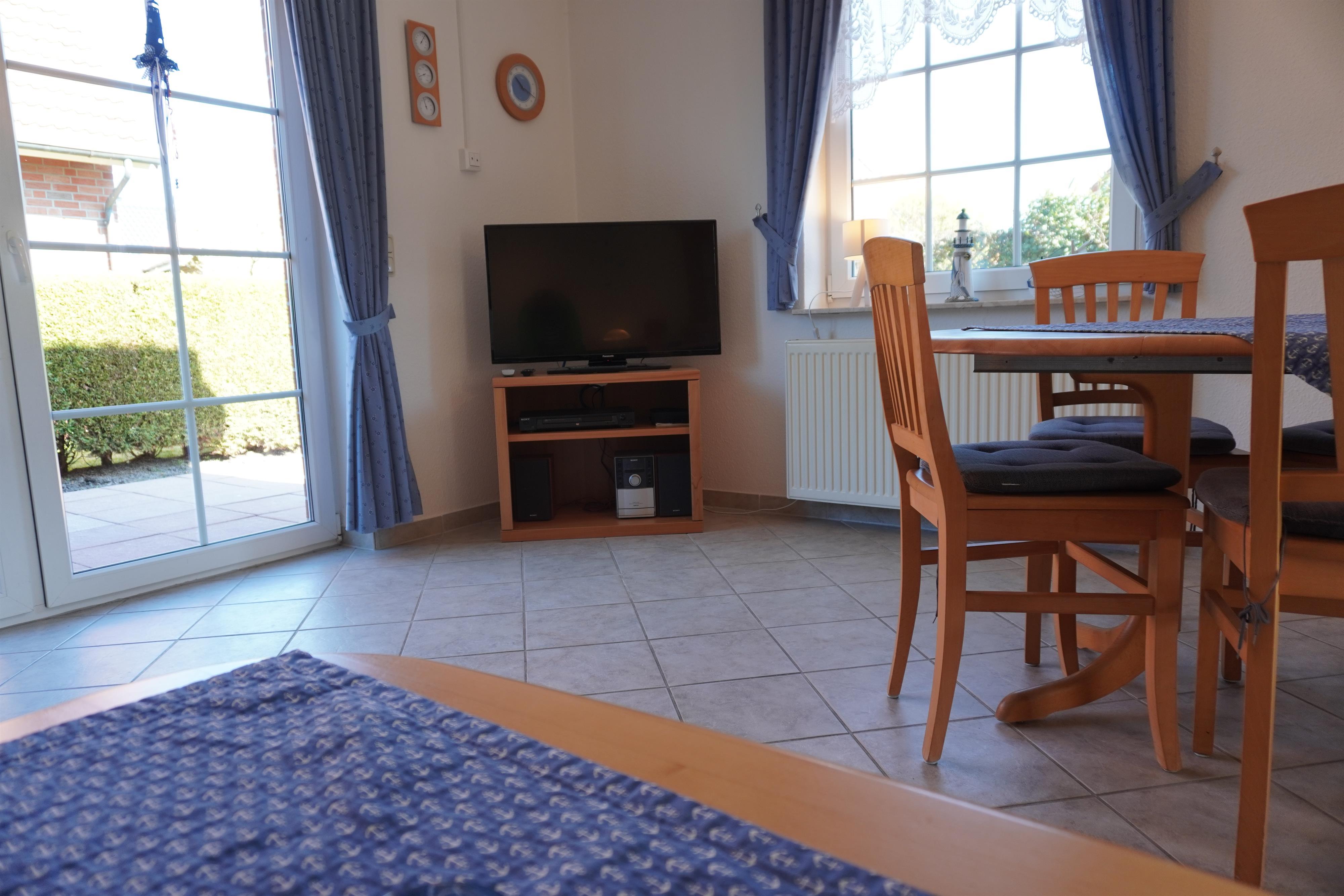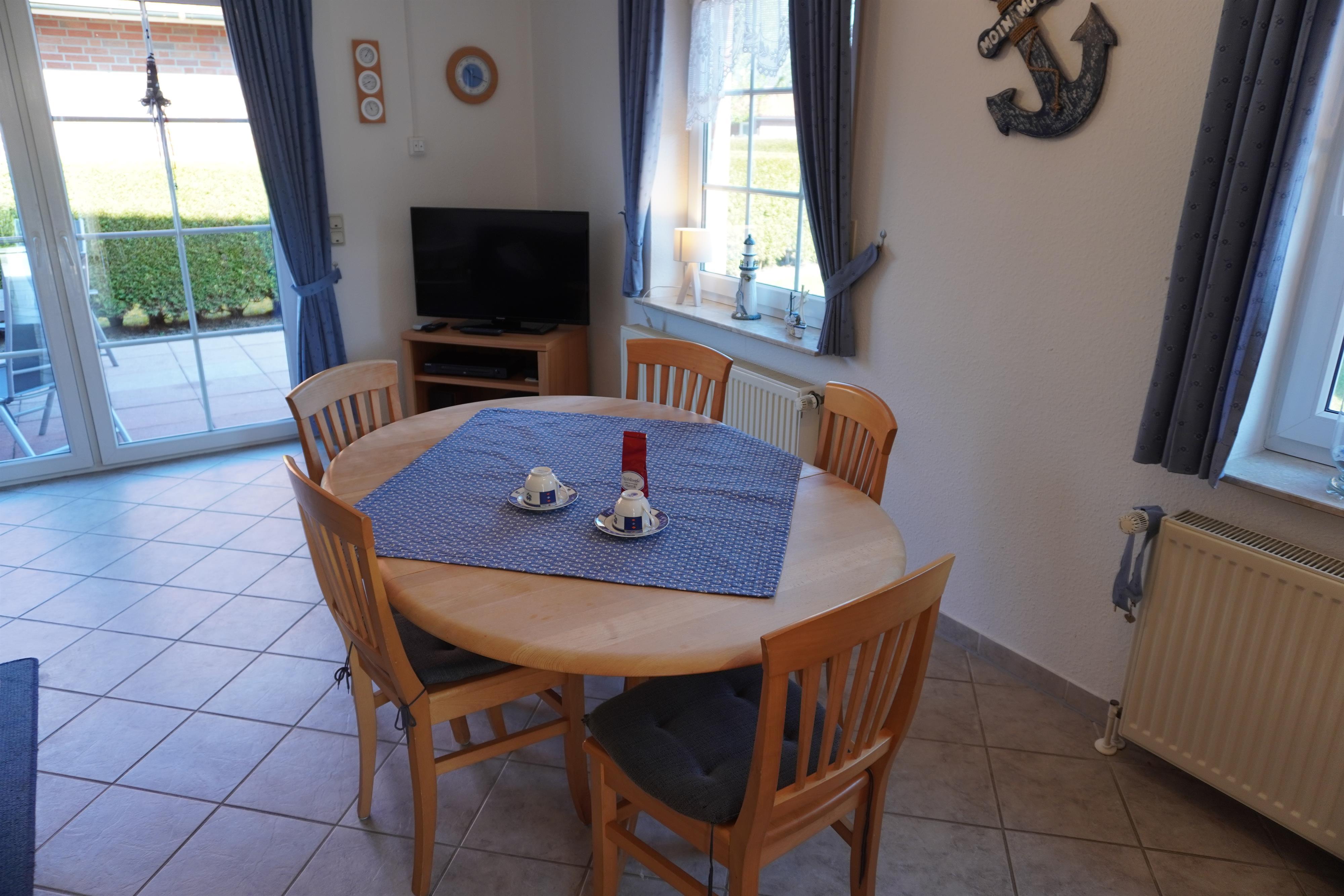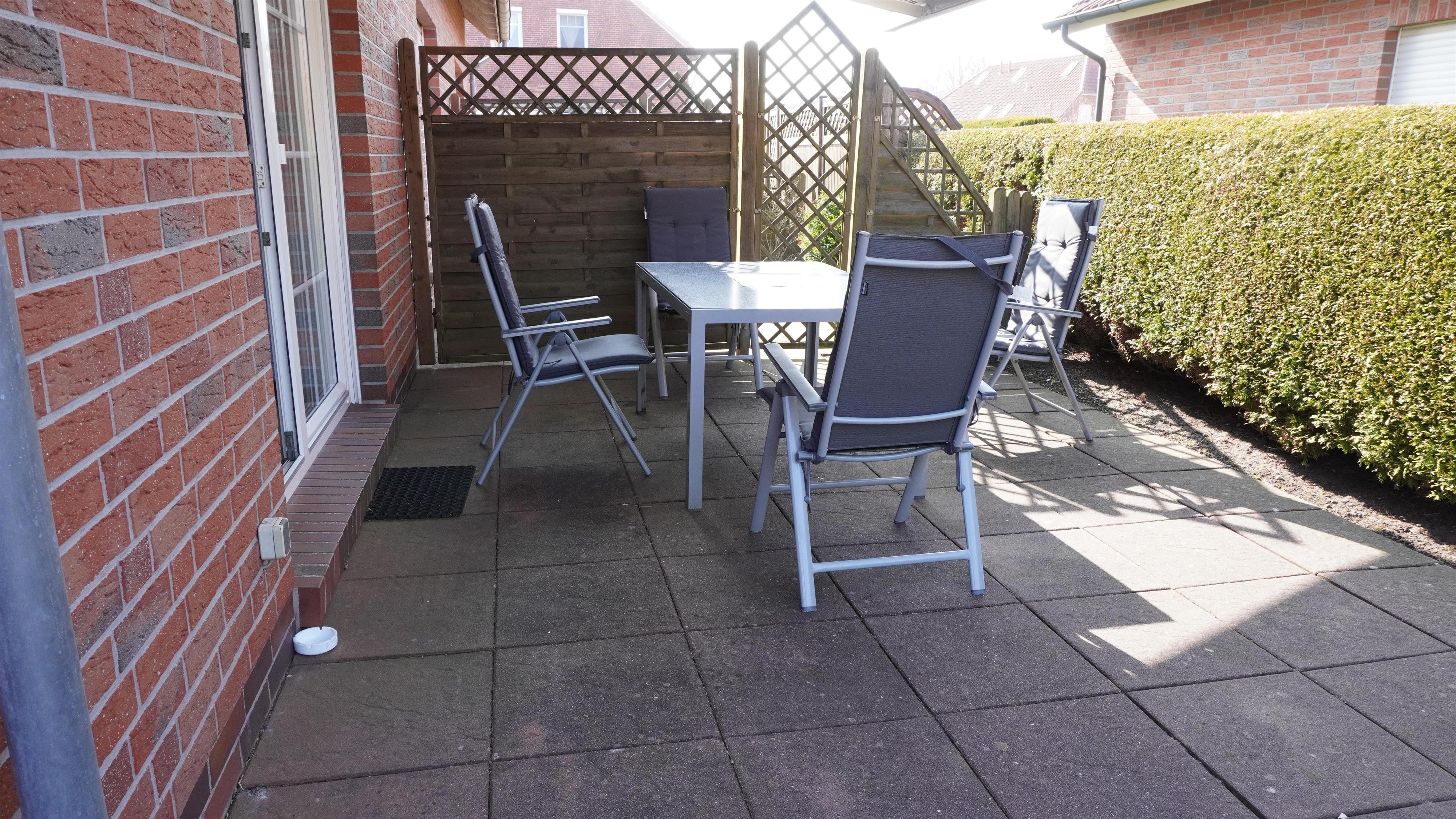 Unser Ferienhaus, ein Reihenendhaus mit ca.75 m² Wohnfläche, befindet sich in ruhiger und dennoch zentraler Lage. Es ist für 4-5 Personen geeignet. Da wir Fliesen und Kork mit Teppichläufern für unseren Fußboden ausgewählt haben, ist unser Haus Allergiker geeignet. In unserem eingezäunten Garten haben Sie die Möglichkeit zum Boccia und Federball spielen. Sie können aber auch auf unserer Terrasse, ausgestattet mit Gartenmöbeln und Grill, nach einem Tages- oder Strandausflug einfach die Seele baumeln lassen. Als Sonnenschutz dient eine elektrische Markise. 2 Damenräder, 1 Mountainbike, 1 Kinderfahrrad, 1 Bollerwagen und 2 Cityroller runden das Angebot unseres Hauses ab. PKW-Stellplatz und Abstellraum für Fahrräder vorhanden.