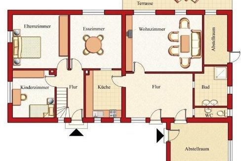 Unser Ferienhaus mit ca. 135 m² und hat 3 Schlafzimmer. Alle sind mit einem Doppelbett und einem Kleiderschrank ausgestattet. Zwei haben zusätzlich noch einen Fernseher. Auch verfügt unser Haus über 2 Bäder. Ein Dusche/WC im OG und eine separate Dusche und ein Gäste WC im Erdgeschoss. Hier finden Sie eine Waschmaschine und einen Trockner.