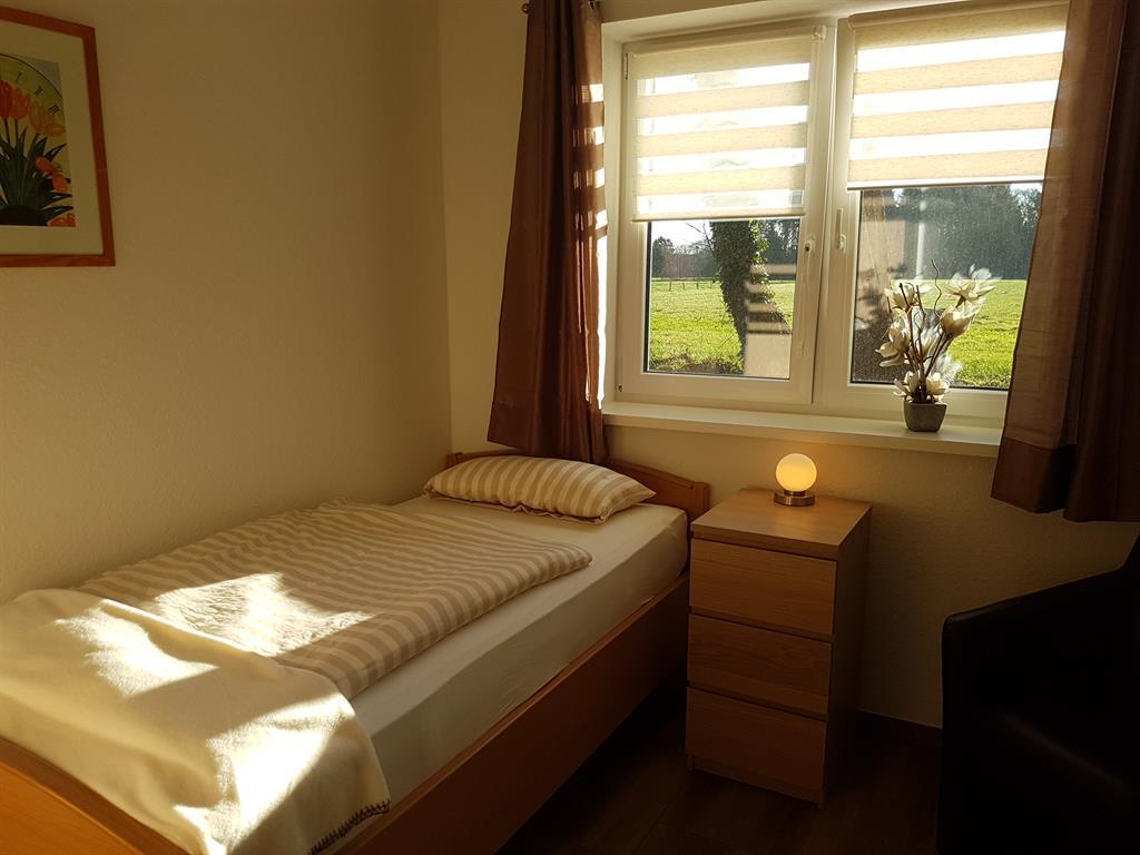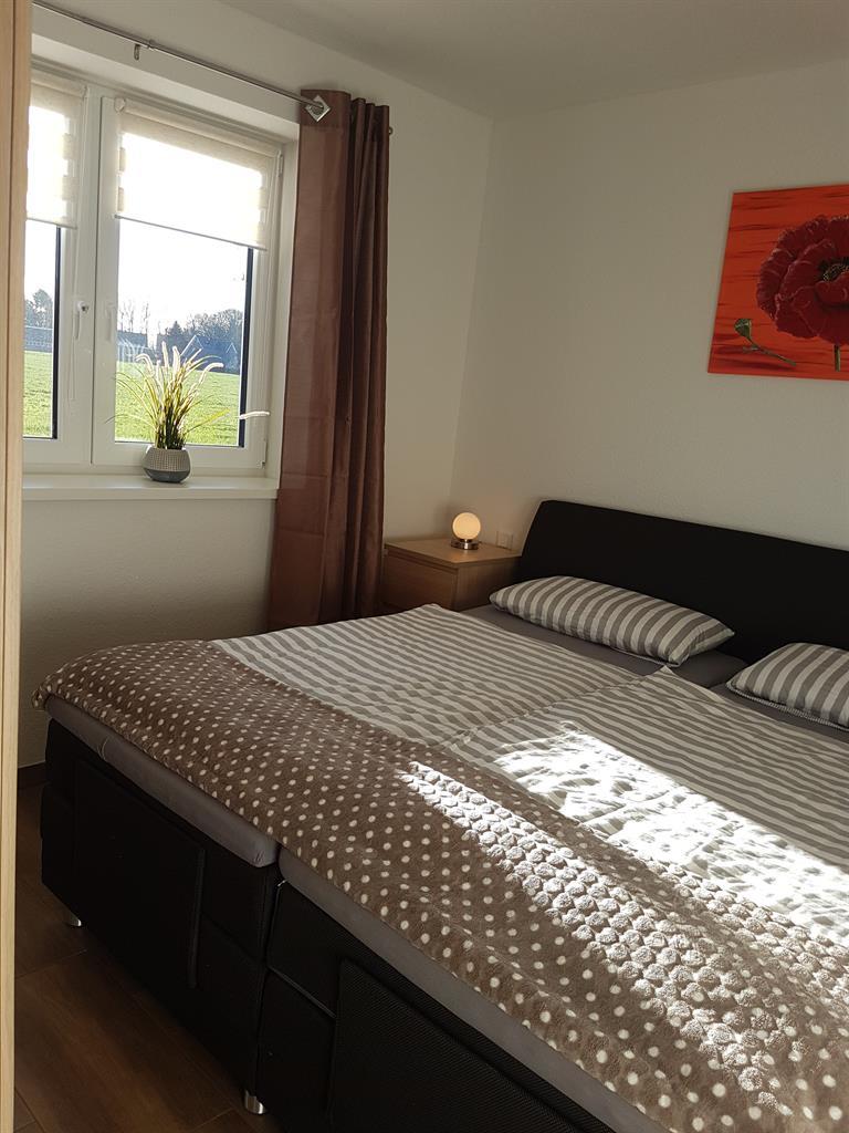 Ist eine barrierefreie Wohnung mit zwei Schlafzimmern. Ein Schlafzimmer hat ein oder zwei Einzelbetten, je nach dem, was sie benötigen. Das zweite Schlafzimmer hat ein in Kopf und Fußteil höhenverstellbares Boxspringbett.