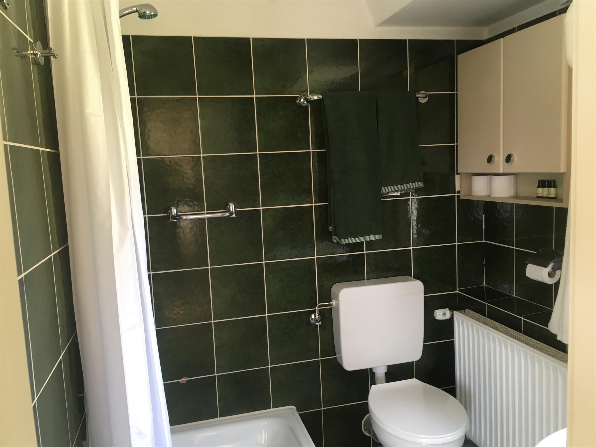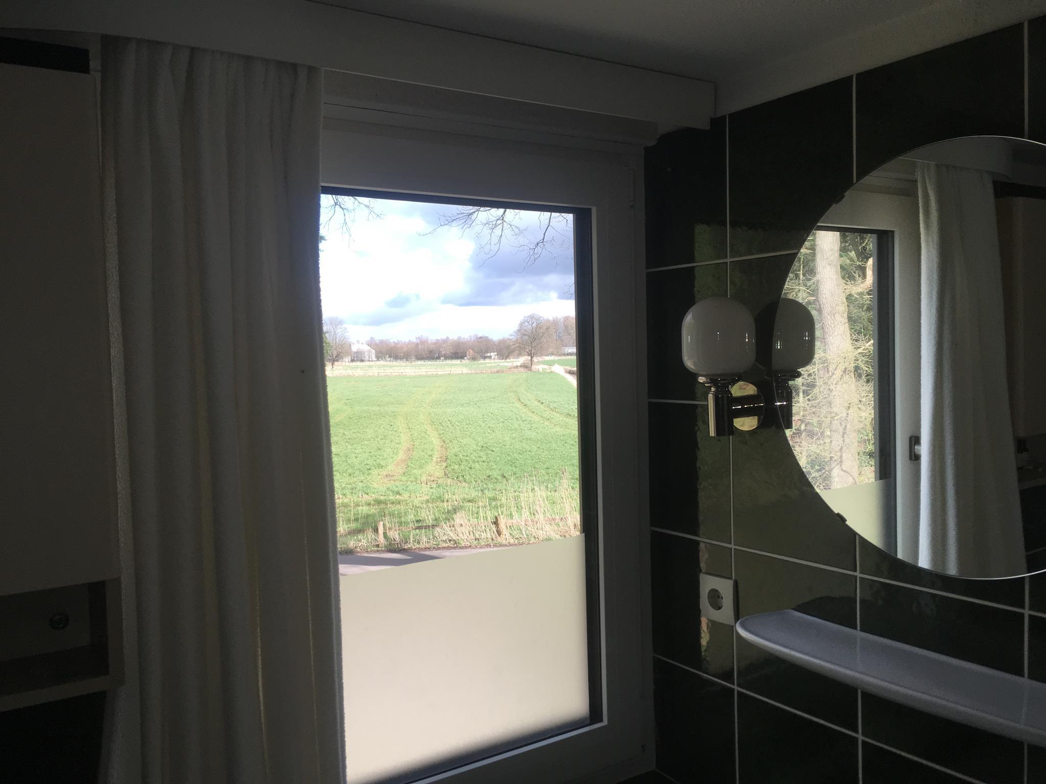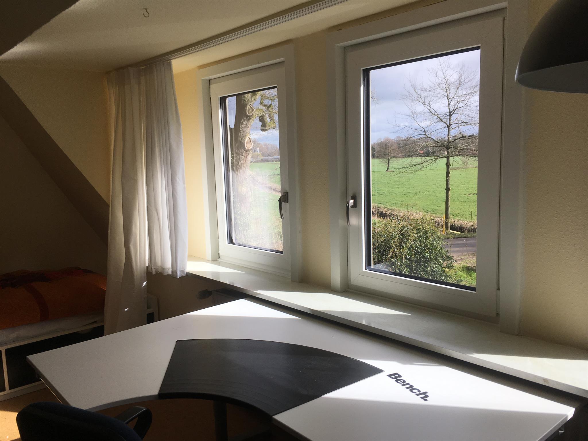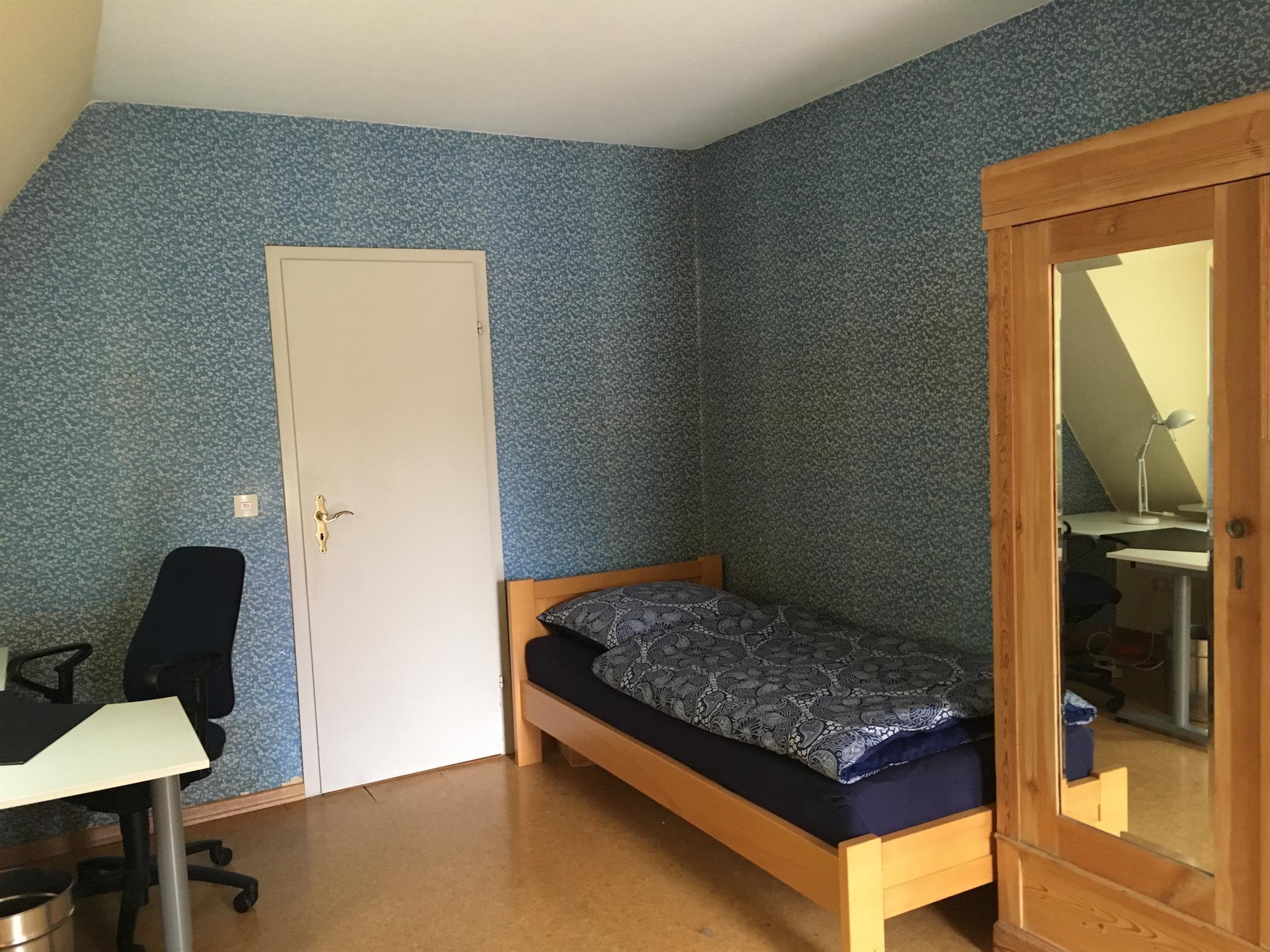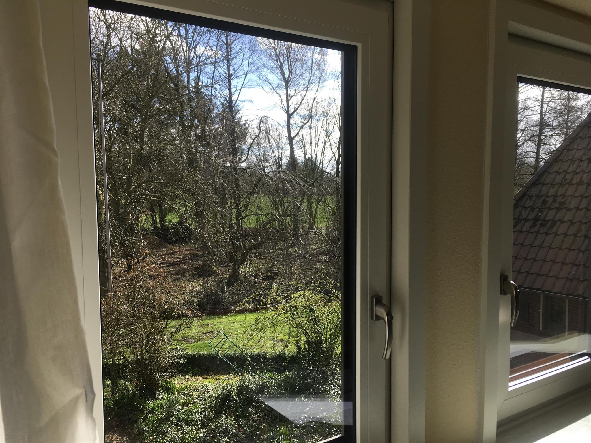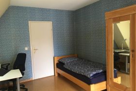 Das Wiesenzimmer ist ein Mansardenzimmer und ca. 15 qm gross. Direkte Aussicht an die angrenzenden Wiesen und die Bäke. Am Zimmer angeschlossen ist das Badezimmer, von dem ebenfalls eine herrliche Aussicht gegeben ist.