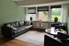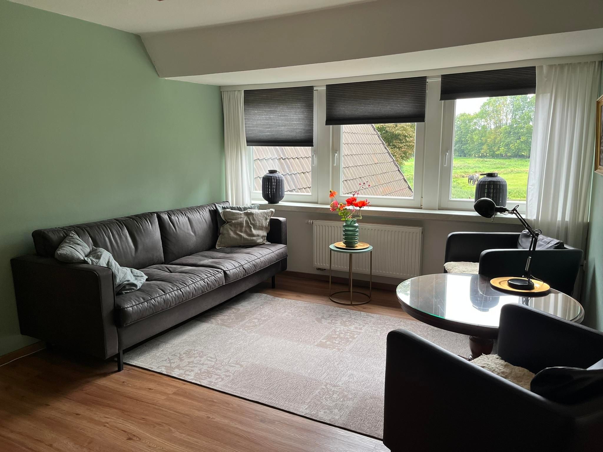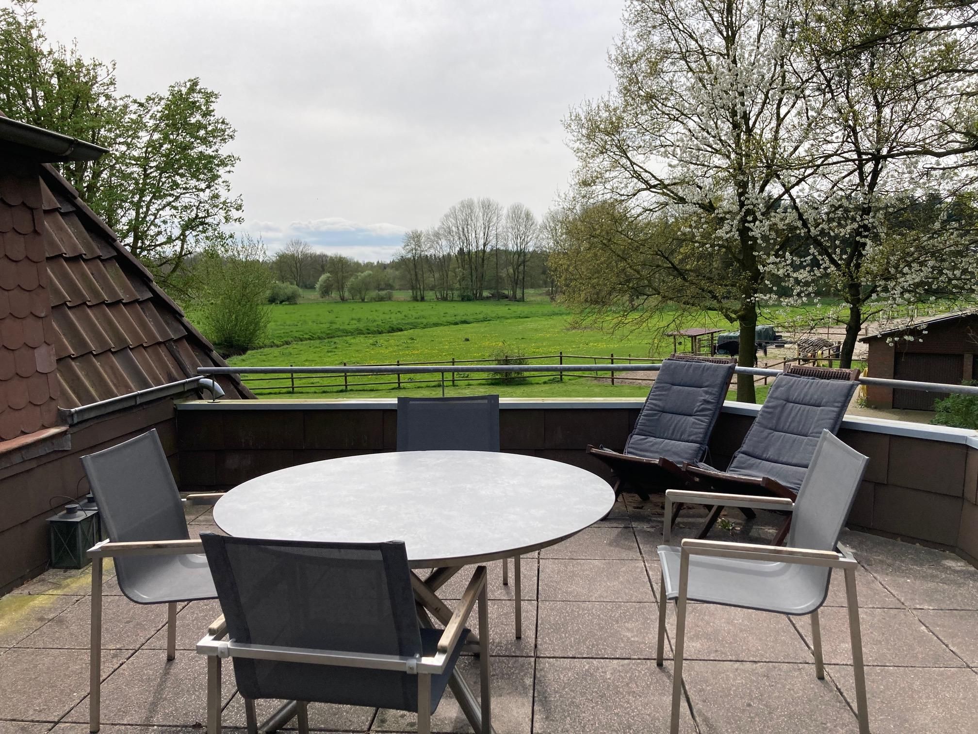 Die Wohnung hat zu allen Seiten hin Aussicht auf die Natur: von der Küche aus schaut man auf die Bäke vor dem Haus, vom Wohnzimmer aus auf die Wiesen, von auf der Terasse aus auf den angrenzenden Wald (beinahe wie im Baumhaus). 2 separate Schlafzimmer stehen zur Verfügung: das Bäkenzimmer hat 2 Einzelbetten, das Brückenzimmer hat ein 1,80 x 2,00 m großes Boxspringbett.