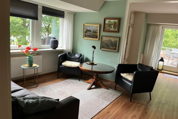 Die Wohnung ist modern und hochwertig eingerichtet. Hier und da sind Sammlerstücke mit integriert, so dass eine gemütliche Atmosphäre entsteht.