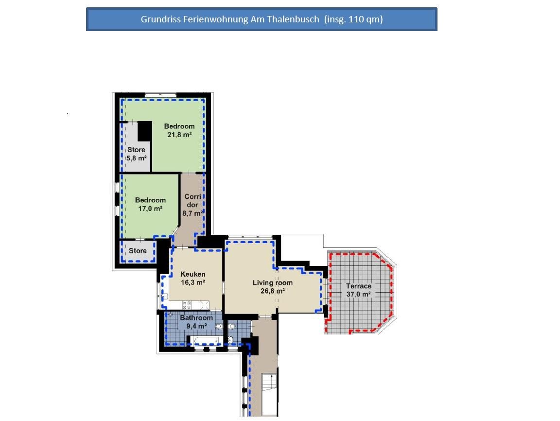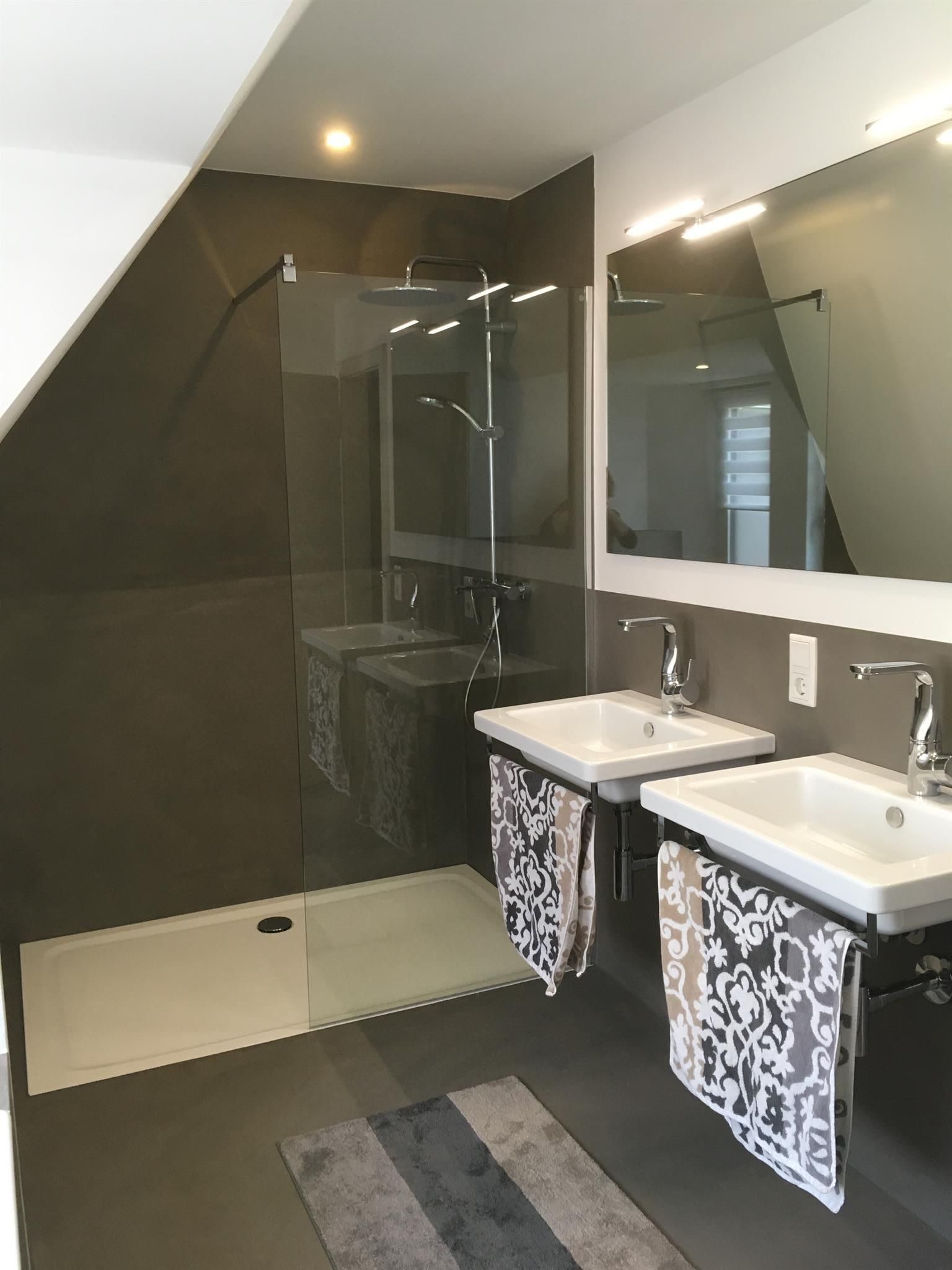 Im Haus befinden sich oben eine komplette Ferienwohnung (Wohnzimmer, Küche, 2 Schlafzimmer, Bad) und 2 Einzelzimmer inkl. eigenen Bädern und gemeinsamer Küche.