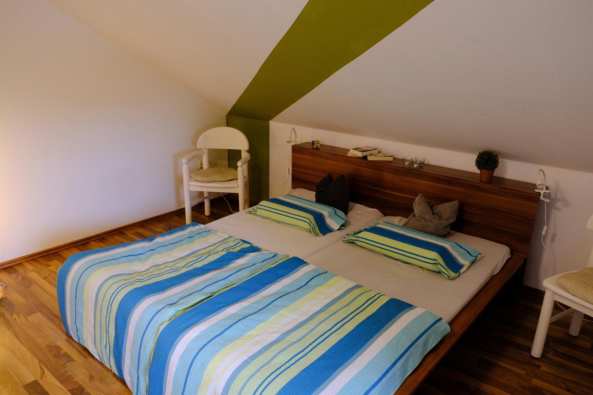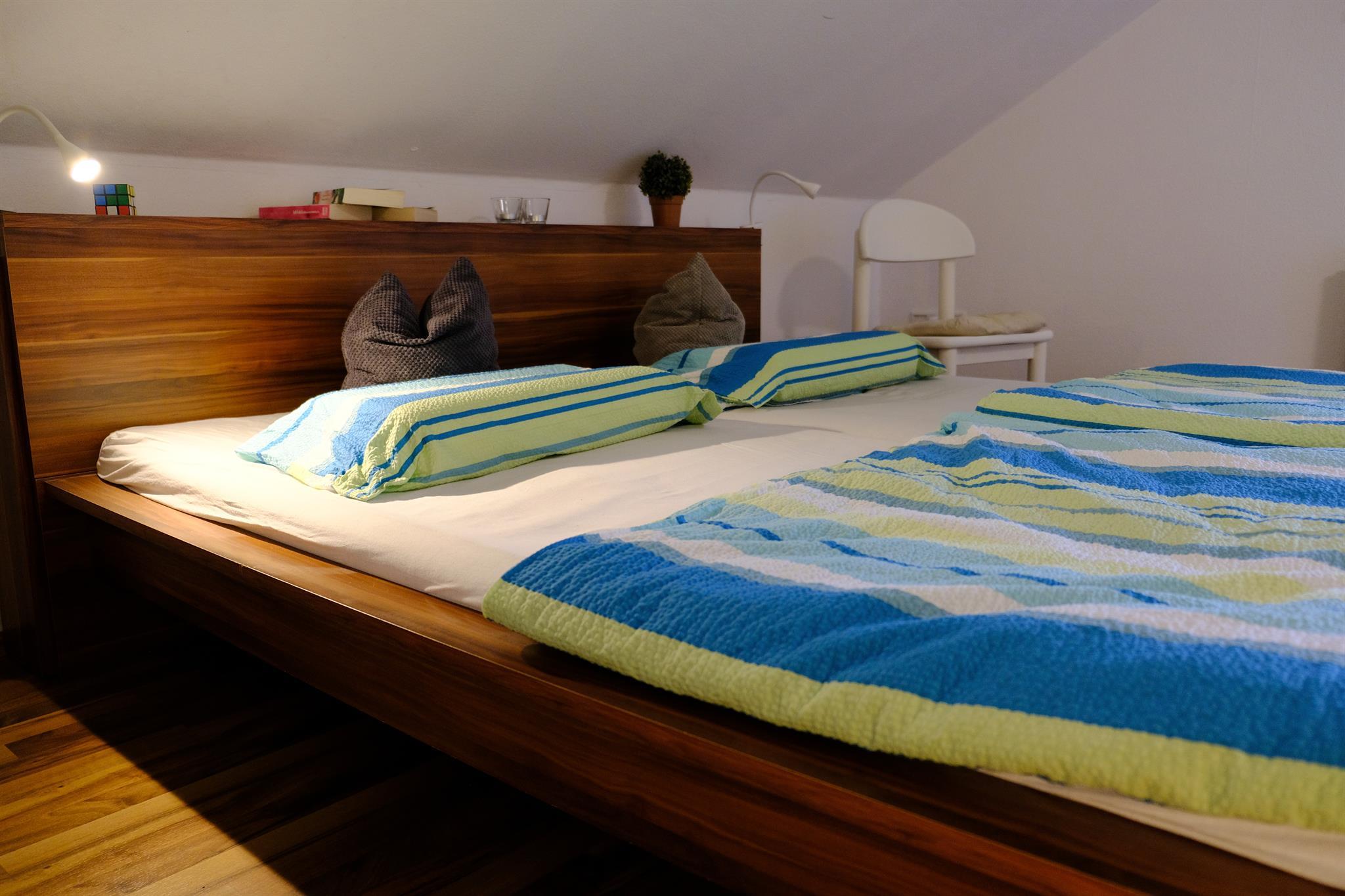 Desweiteren befindet sich ein Doppelbett (1,80 m x 2,00 m) im Schlafzimmer und das moderne Tageslicht-Bad verfügt über eine schöne Dusche.