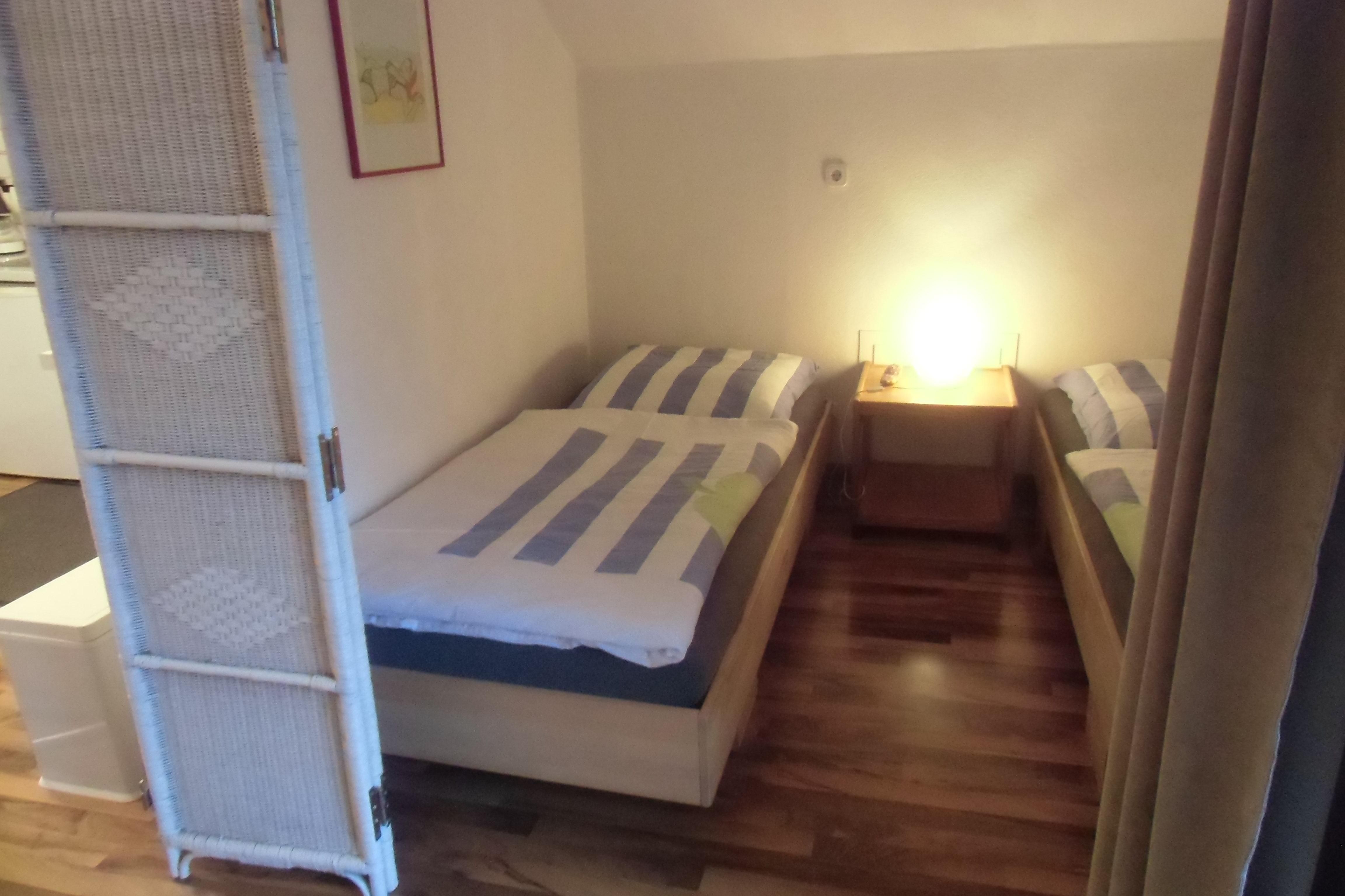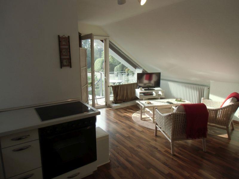 Die Ferienwohnung von ca. 54 qm Größe liegt im 1. Stock und ist über eine Wendeltreppe im Garten erreichbar. Die Ferienwohnung liegt direkt im Ortskern von Wiefelstede aber ruhig in einer Wohnsiedlung. Sie verfügt über eine Wohnküche inkl. Geschirrspülmaschine sowie einem separaten Schlafzimmer, Badezimmer mit Dusche, einem Balkon und einer Sauna.