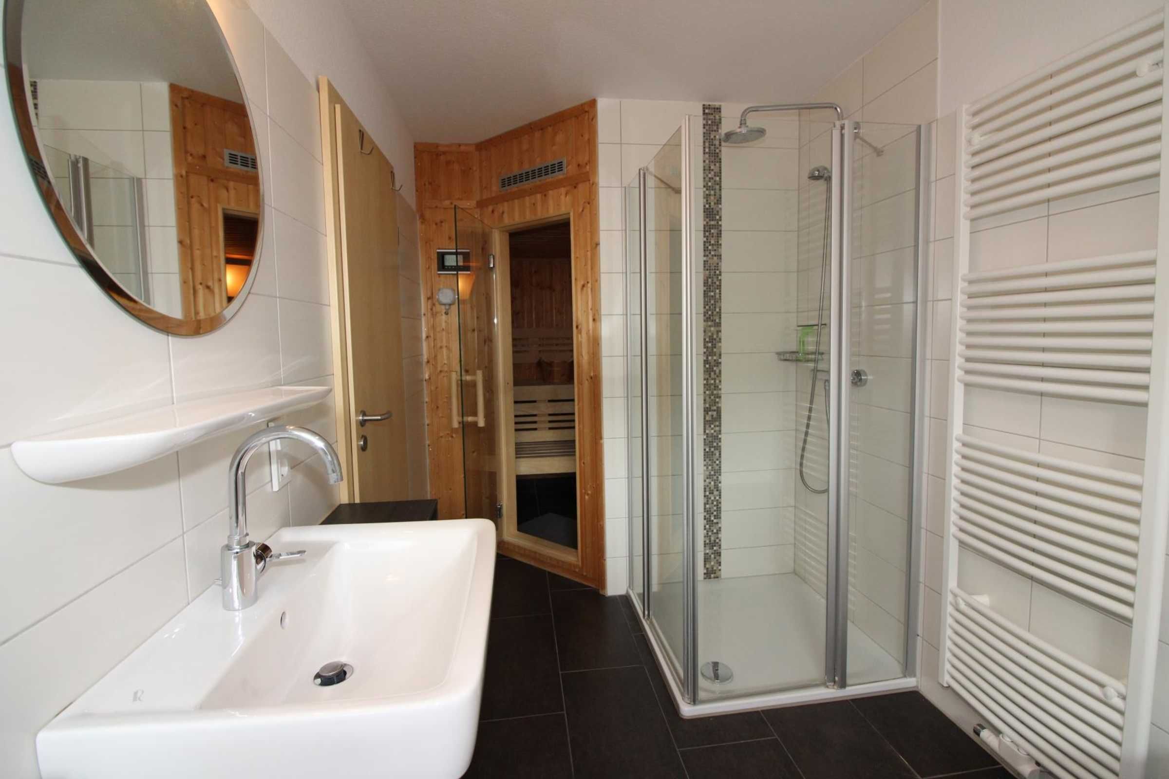 Ein besonderes Highlight ist unsere Wellness Oase mit hauseigener Sauna, Badewanne, Dusche und WC im 1. OG. Diese lässt keine Wünsche offen und bietet Ihnen Erholung pur!