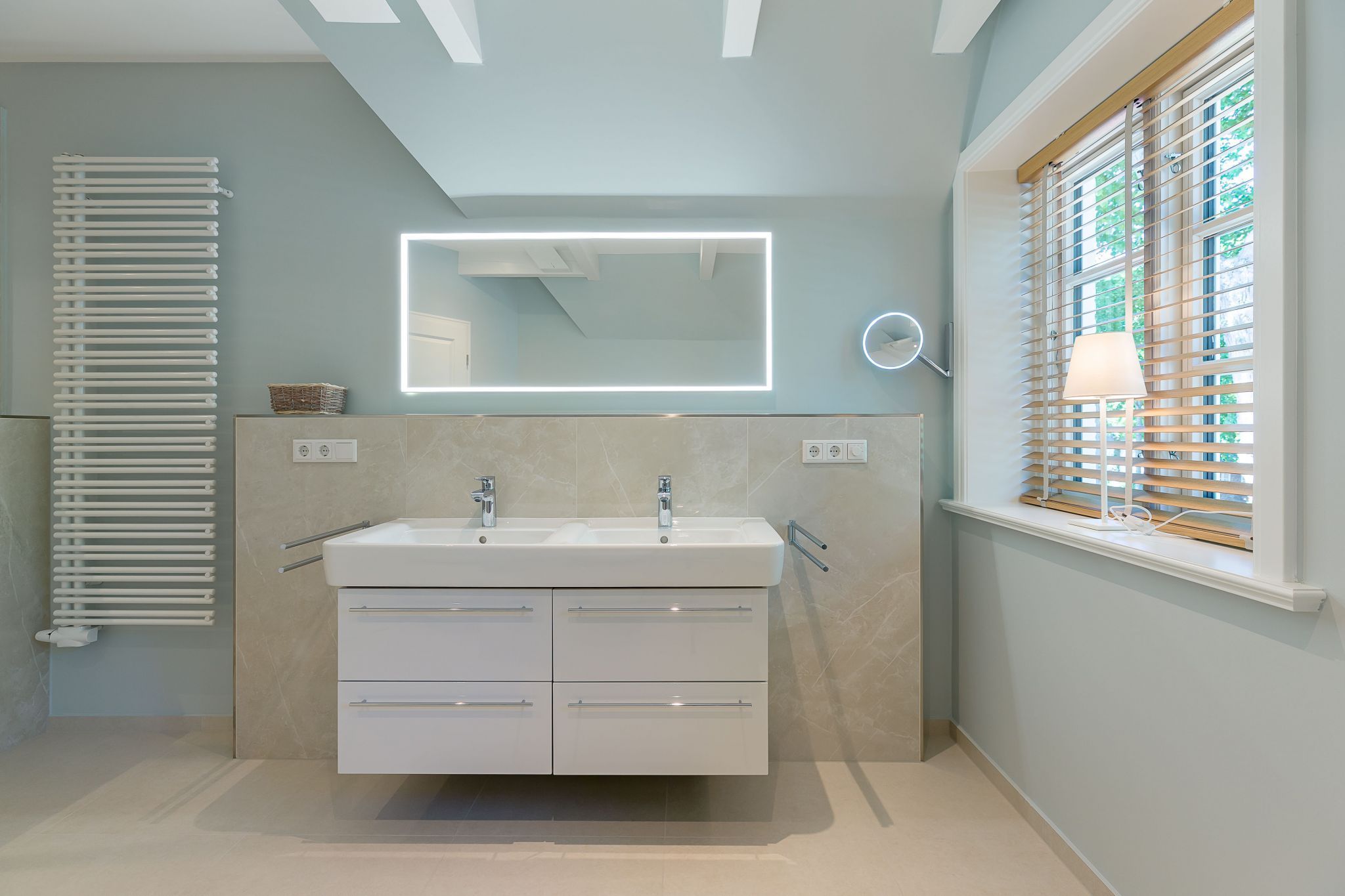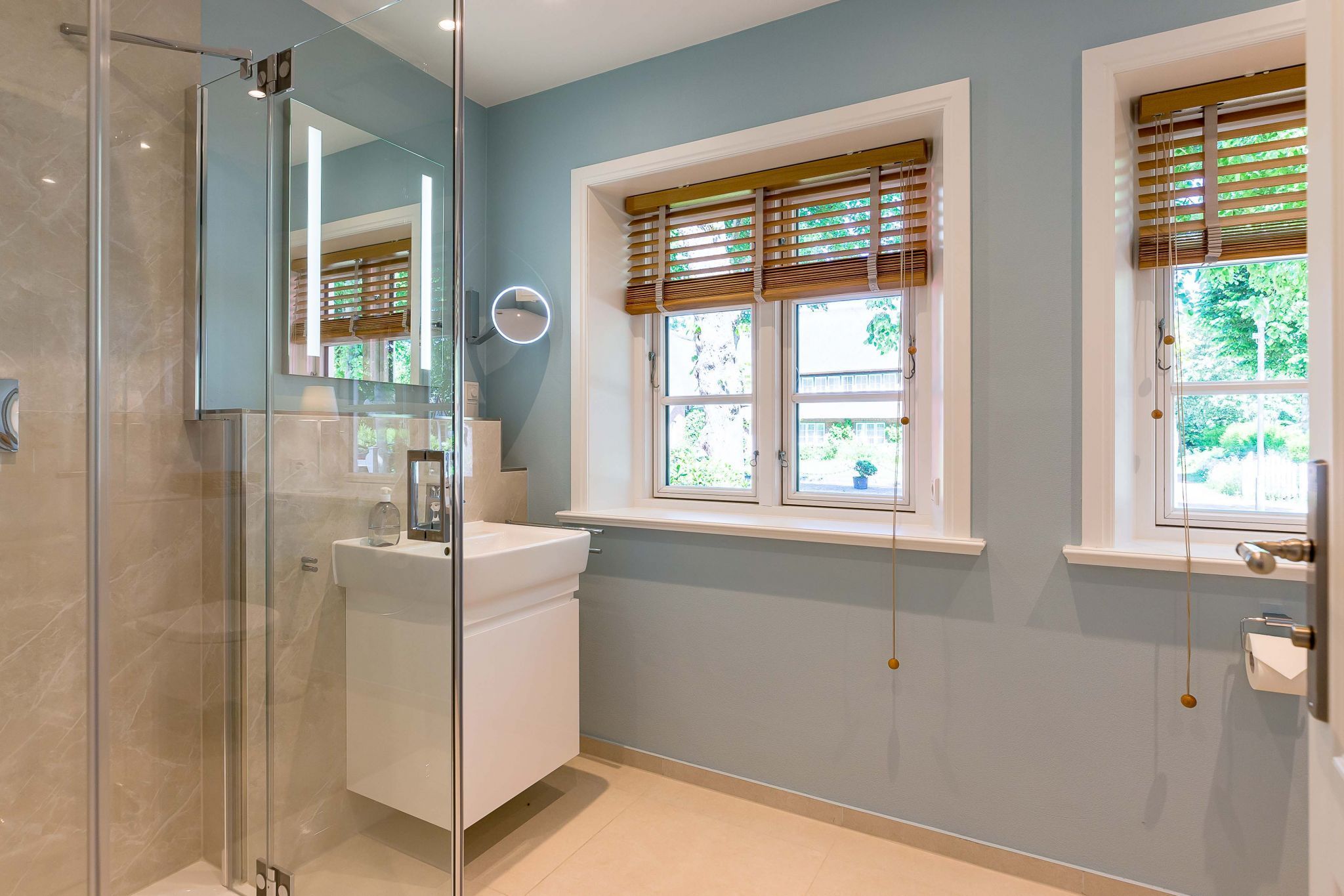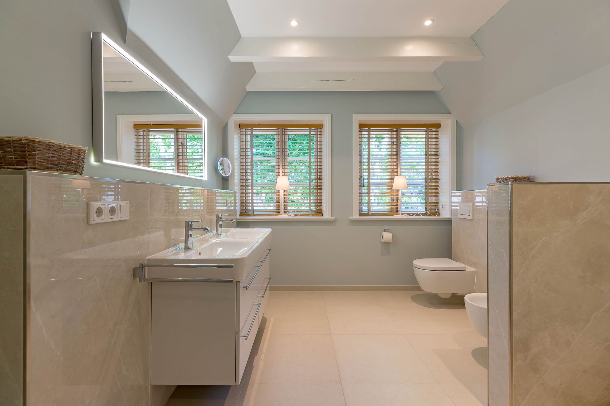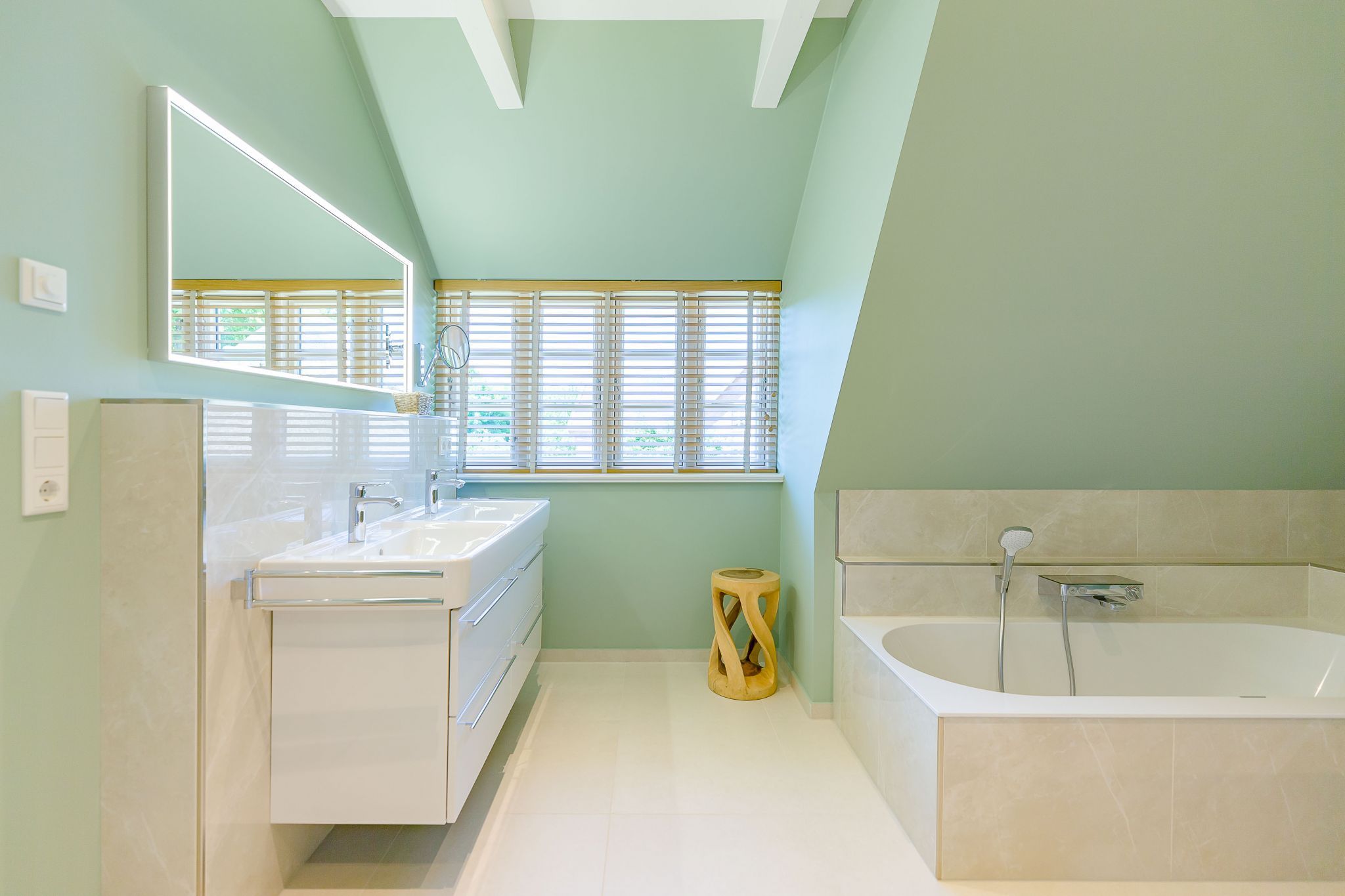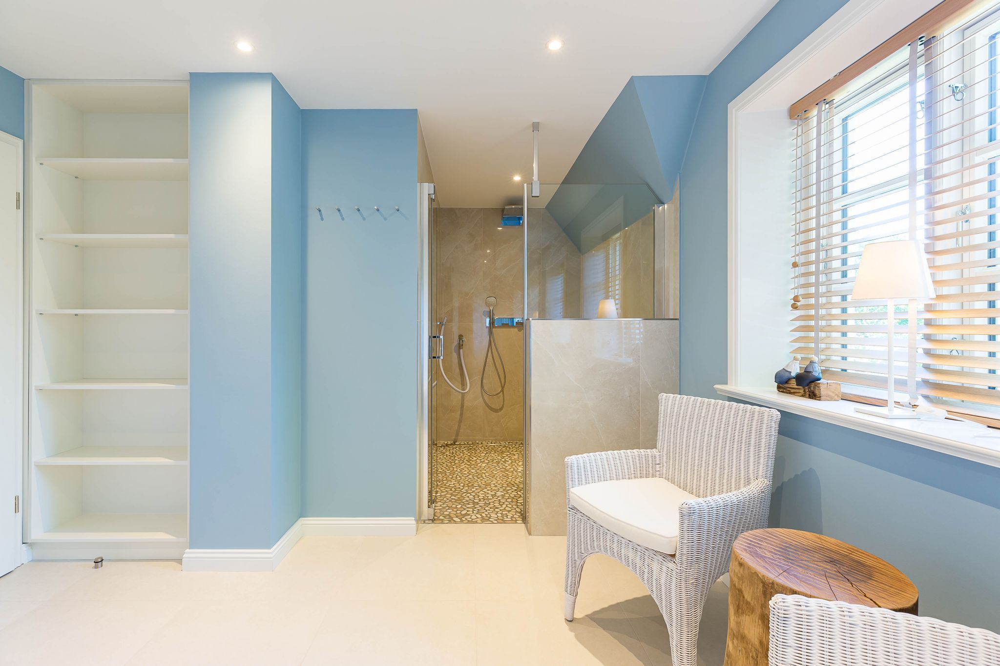 Im Obergeschoss finden Sie zwei weitere großzügige Schlafräume mit offener Kehlbalkendecke und jeweiligem en Suite Bad. Beide Schlafräume sind ebenfalls jeweils mit einem TV und auch einem Schreibtisch ausgestattet. Ein Arbeitszimmer mit Alkoven ist einem Schlafzimmer vorgelagert. Die ebenfalls im Obergeschoss befindliche Sauna mit großer Walk-in Dusche und Kneippgarnitur macht Ihren Wellnesstag zum Erlebnis.