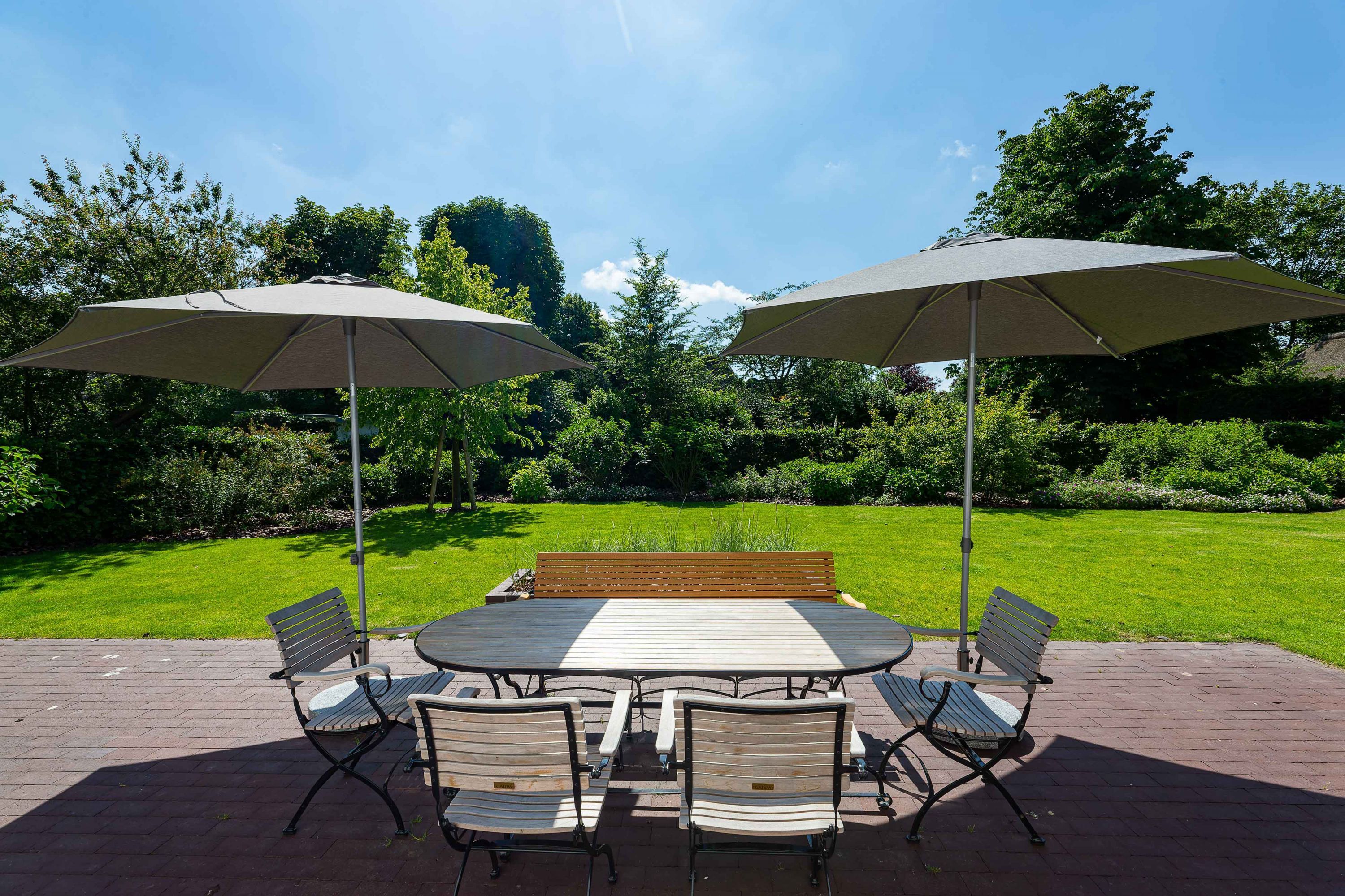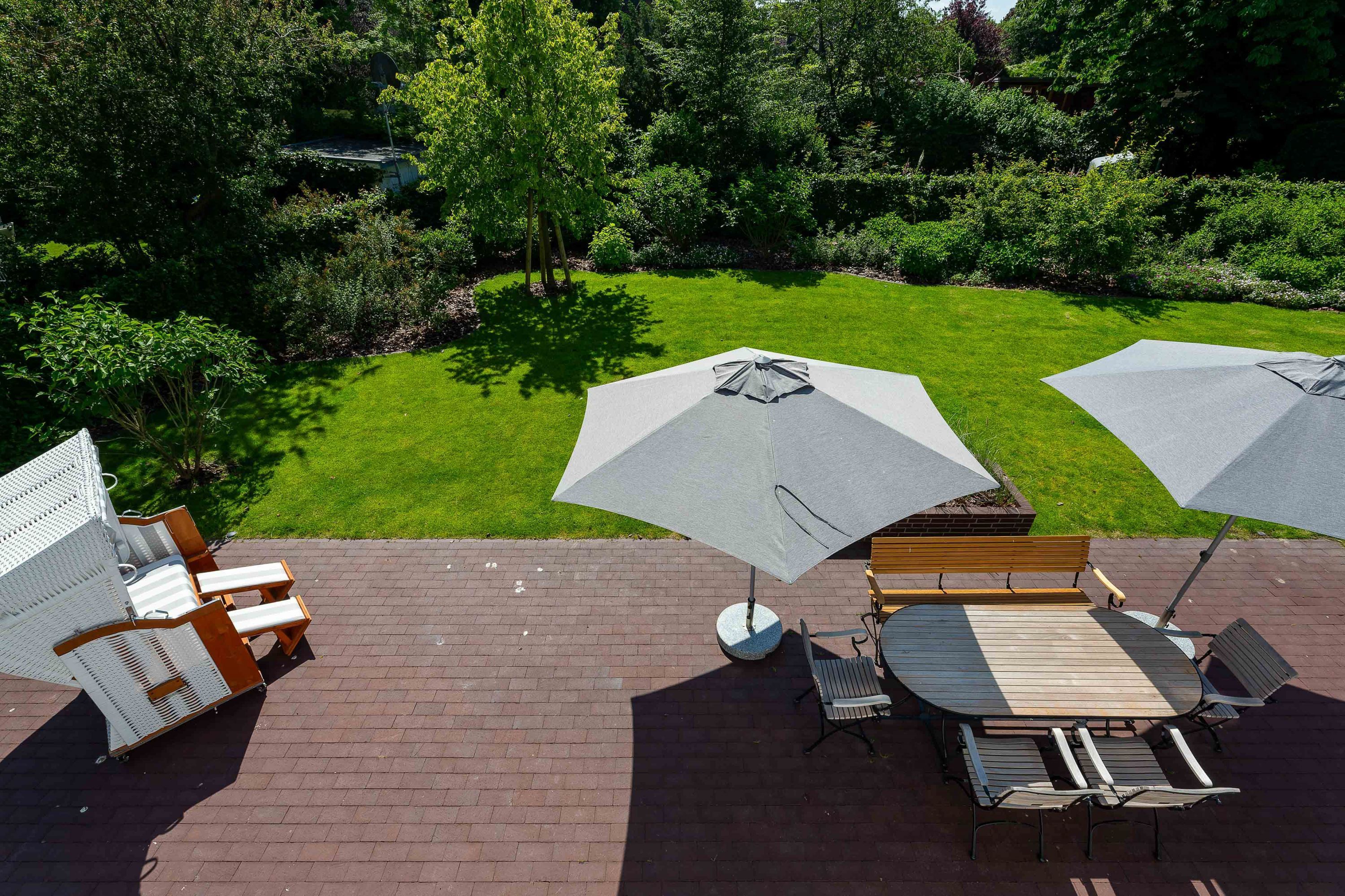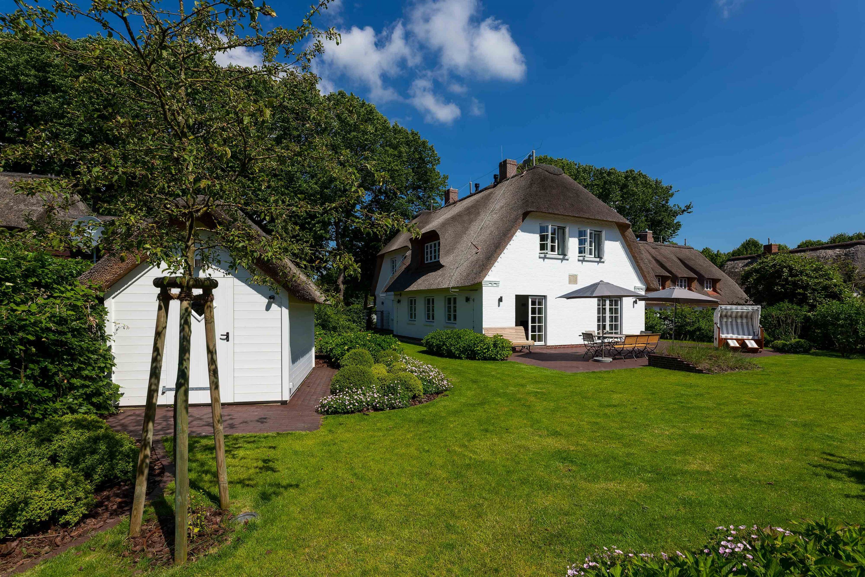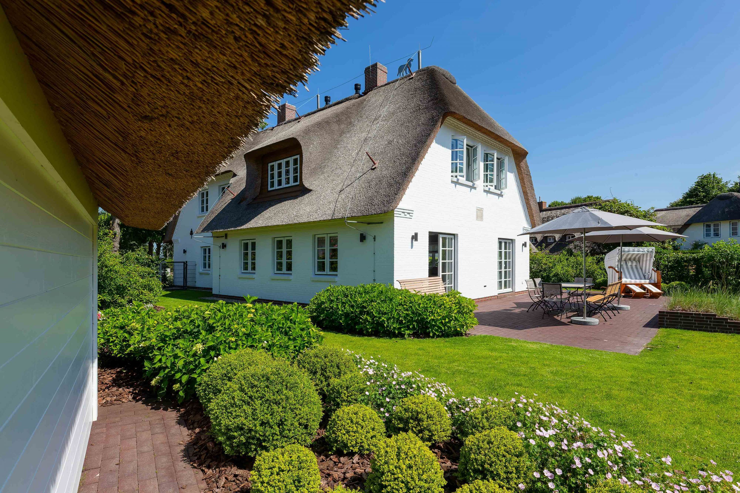 Das Haus ist ein echtes Schmuckstück und bietet abgewandt von der Straße im Südwesten einen großen eingefriedeten Garten mit umlaufender Frühstücks- und Sonnenterasse. Zum Entspannen stehen dort etwaige Bänke und andere Sitzgelegenheiten mit einem großen Gartentisch zur Verfügung. Der Strandkorb lädt zum herrlichen Sonnenbaden ein. Eine automatische Bewässerung, die nachts angesteuert wird, lässt die Pflanzen gedeihen.