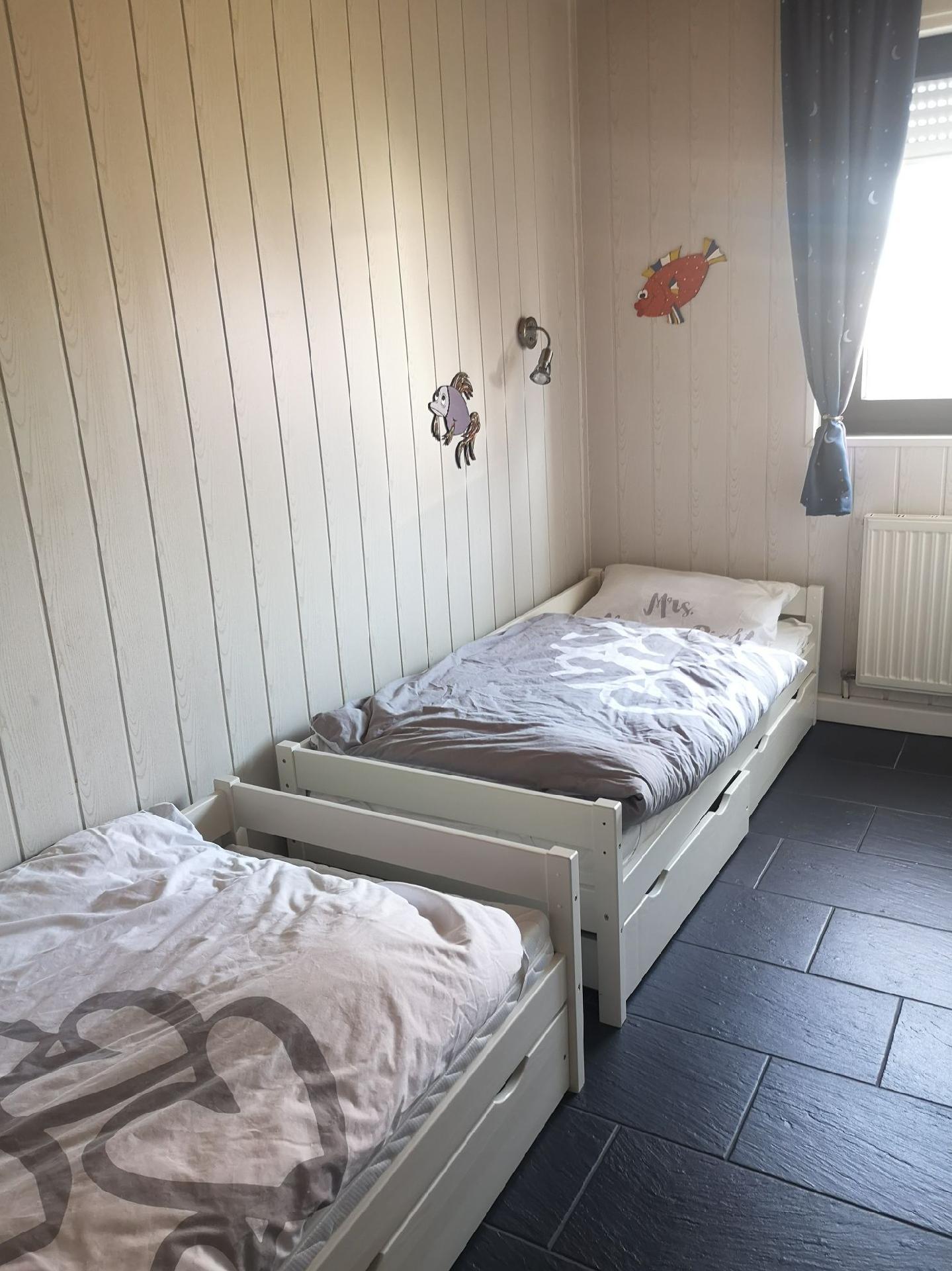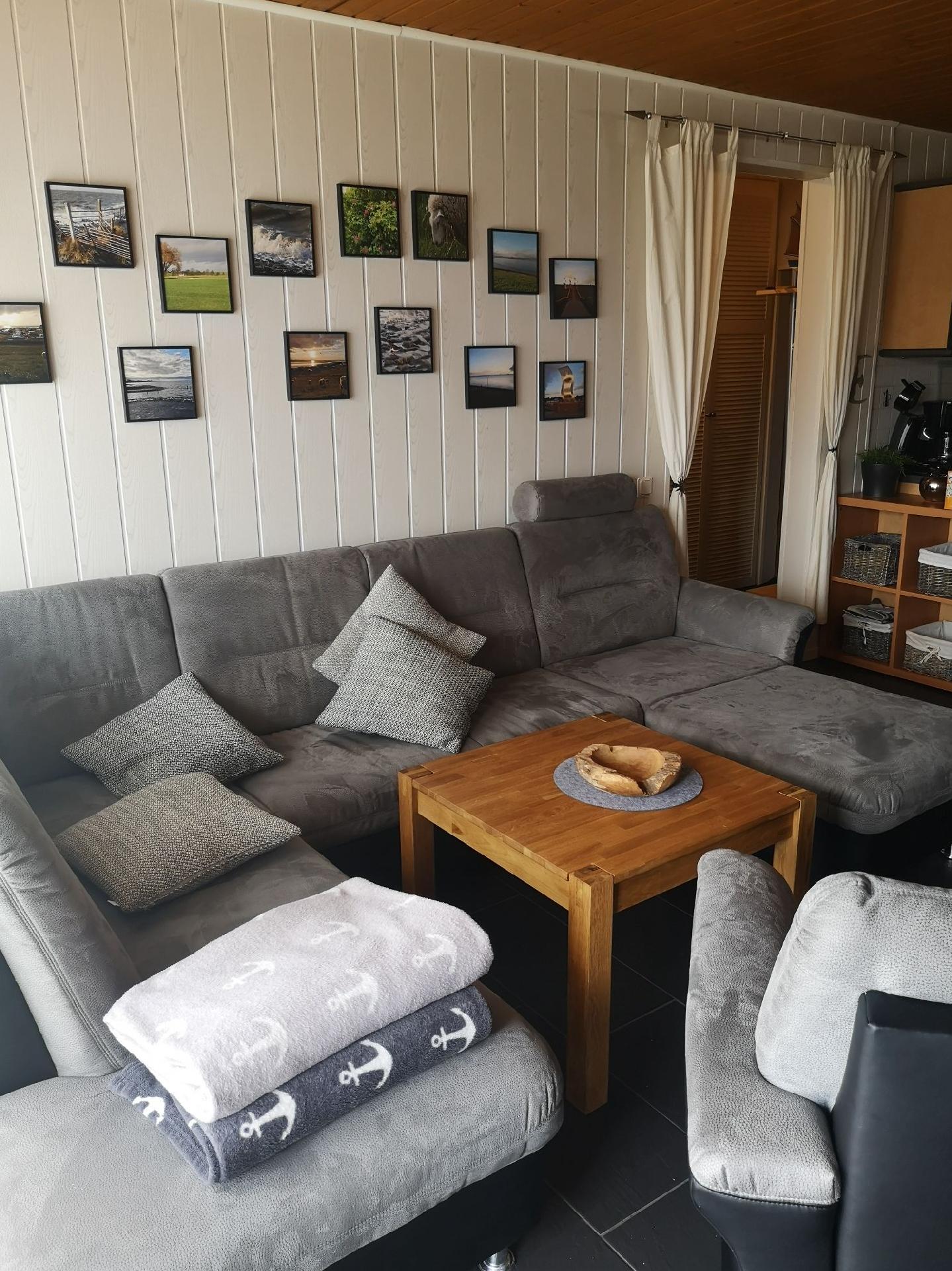 Es handelt sich um einen gut ausgestatteten Ferienbungalow, der 4 Personen einen gemütlichen Nordseeaufenthalt ermöglicht. Er verfügt über einen Wohn-/Essbereich mit Einbauküche, ein Schlafzimmer mit Doppelbett (1,60 x 2m mit durchgehendem Topper), ein Schlafzimmer mit 2 hintereinanderstehenden Einzelbetten (0,80m x 1,80 m), ein Badezimmer mit Dusche und WC und einen kleinen Abstellraum. Vorhanden sind 1 Sat-TV (Wohnzimmer), Hifi-Anlage mit CD, Bluetooth und USB, Waschmaschine, Trockner, Mikrowelle, Backofen, Cerankochfeld, Spülmaschine, Kühlschrank mit Gefrierfach, Kaffeemaschinen (Senseo, Filtermaschine), Wasser- und Eierkocher, Mixer, Fön, Toaster, Bügelbrett, Bügeleisen, Holzkohlengrill, Gesellschaftsspiele und Bücher. Das Haus verfügt über eine moderne Gasheizung und wird ganzjährig vermietet. Außerdem bieten wir unseren Gästen kostenloses W-LAN.