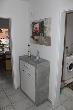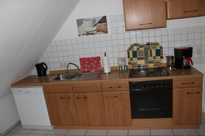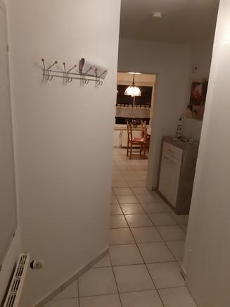 Diese schön eingerichtete Obergeschosswohnung ist 75 qm groß und besteht aus 1 Wohnzimmer, 2 Schlafzimmern mit je 1 Doppelbett, 1 große Küche (incl. Spülmaschine) mit Essbereich, 1 Bad, 1 Hauswirtschaftsraum mit Waschmaschine und Trockner. Seit Mai 2011 hat die Wohnung digitales Sat TV, so dass fast jeder seinen Heimatsender schauen kann. Zu dieser Wohnung gehört ein kleiner Gartenanteil mit Grillecke. In den Schlafräumen befinden sich im Fenster Mückengitter. Das Haus befindet sich auf einem abgeschlossenen Grundstück.