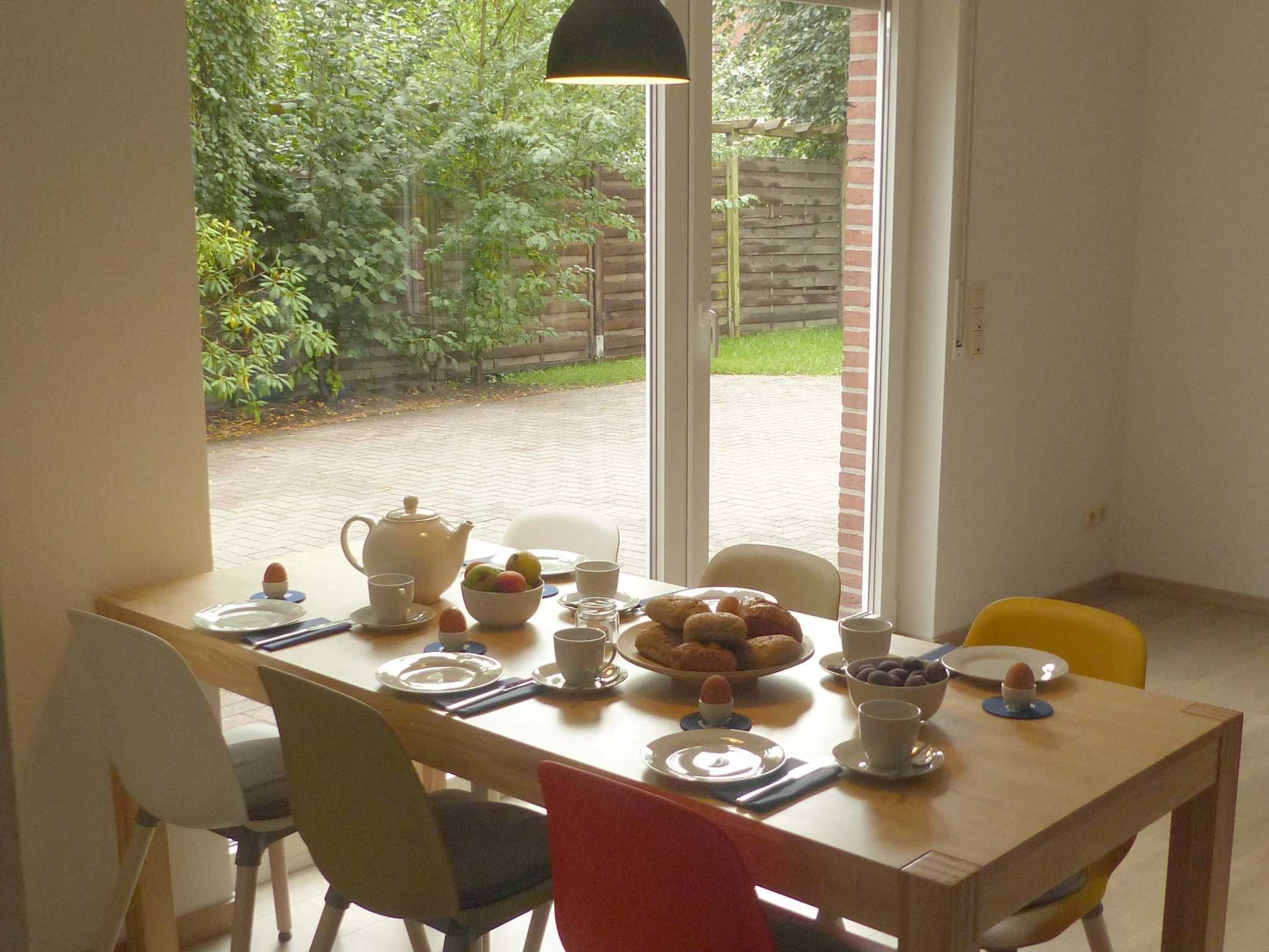 Im Erdgeschoss verfügt das Haus über ein großes, helles Wohnzimmer mit Sofalandschaft und 50 Zoll großem SAT-TV, Essbereich mit massivem Holzesstisch sowie einer separaten, sehr gut ausgestatteten Küche (mit Mikrowelle und Spülmaschine). Weiterhin befindet sich im EG ein neues Gäste-WC mit Handwaschbecken. Vom Wohnzimmer aus haben Sie Zugang zur sonnigen Terrasse sowie dem großen Garten. Im 1. OG finden Sie zwei Schlafzimmer (eins davon mit Doppelboxspringbett und das zweite mit zwei Einzelbetten) sowie ein helles und modernes Bad mit übergroßer Dusche. Im Dachgeschoss befindet sich ein Schlafstudio mit zwei weiteren Einzelbetten.