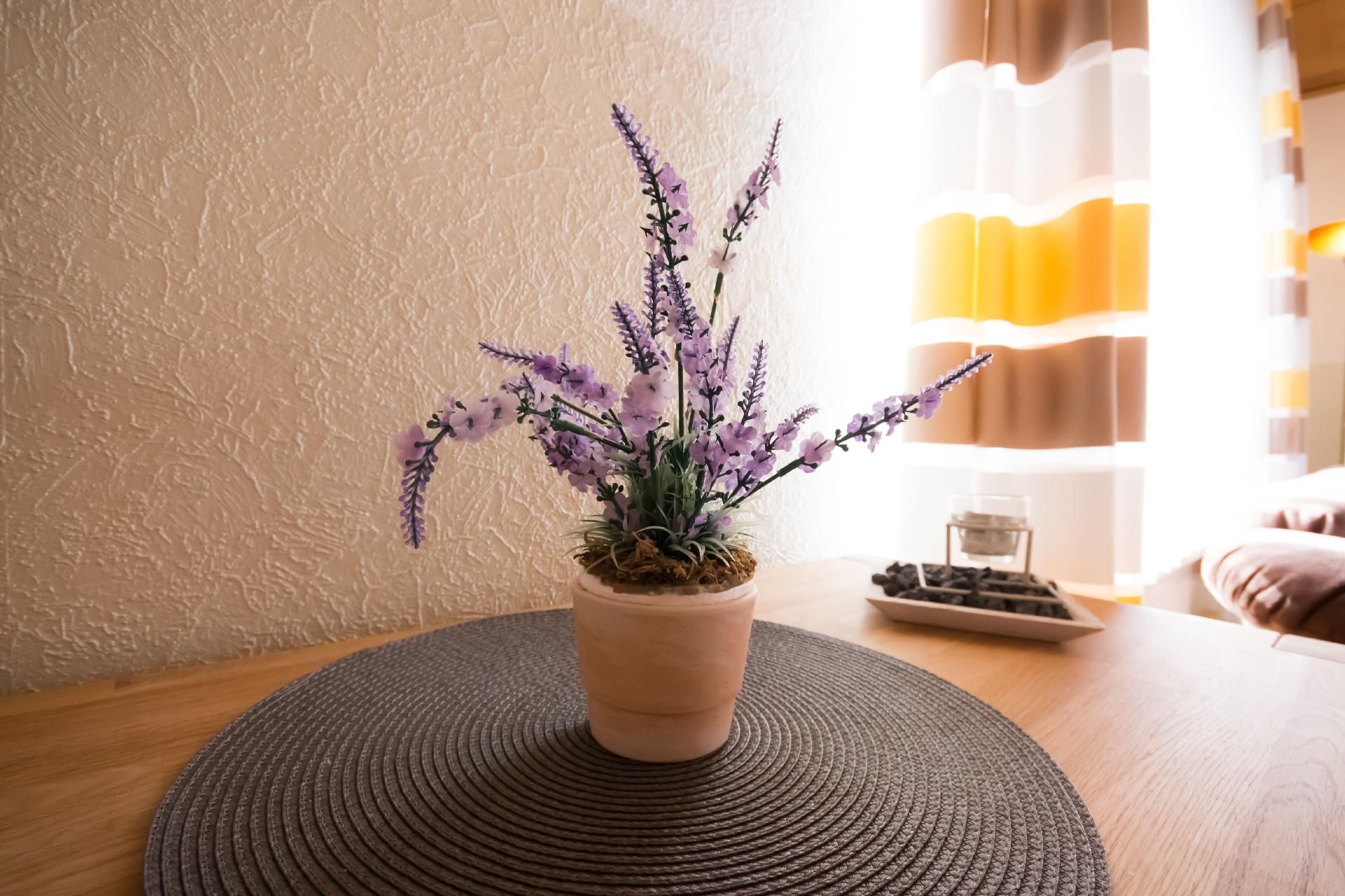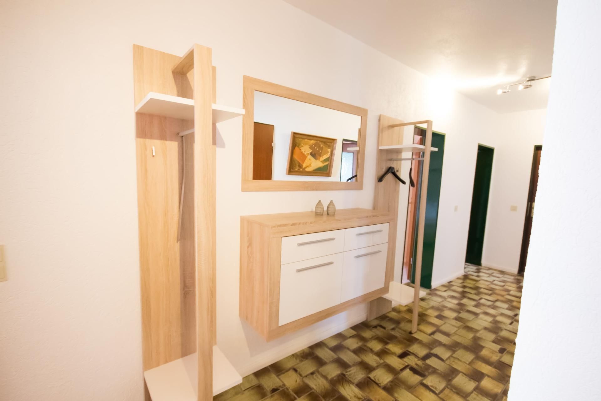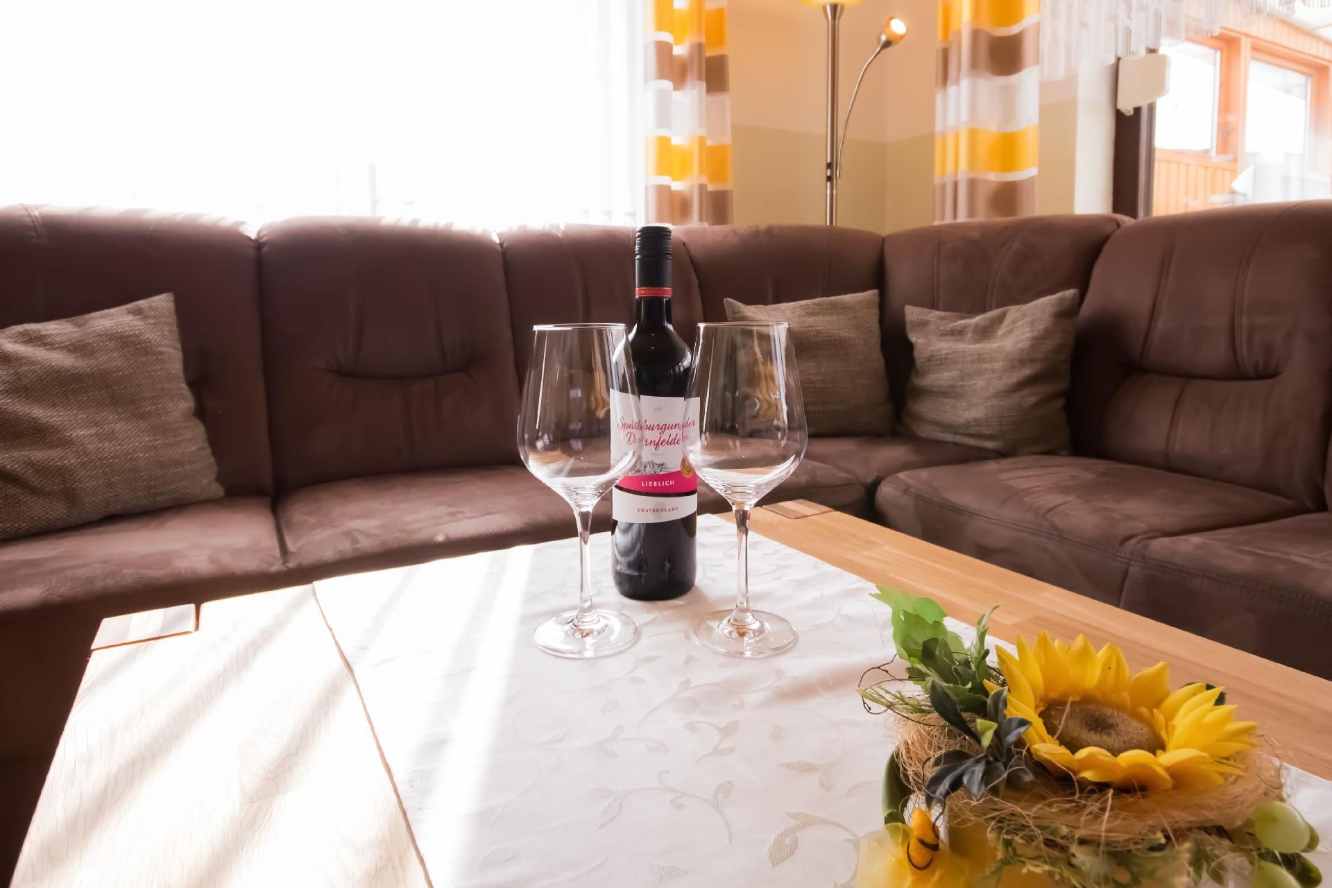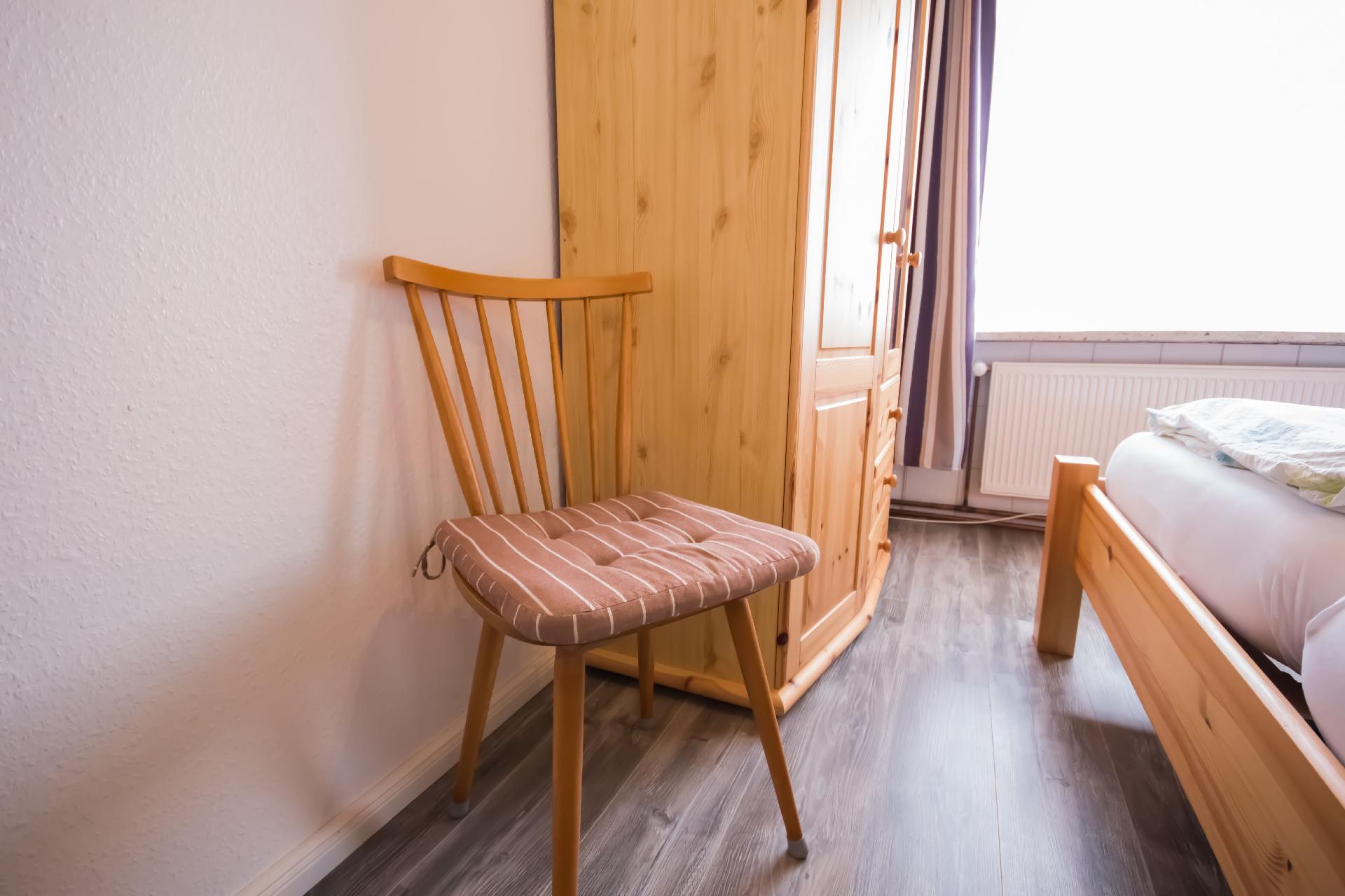 Die drei vollständig beheizten Nichtraucher-Wohnungen unterscheiden sich in Größe, Ausstattung und ihrer Lage im Gebäude. Der Fußboden in den allergikerfreundlichen Unterkünften ist teils gefliest und teils mit Laminat ausgelegt. Jede der Küchen bietet neben ausreichendem Koch- und Essgeschirr ein Cerankochfeld mit vier Platten, einen Kühlschrank mit Gefrierfach, eine Filter- und eine Pads-Kaffeemaschine, eine Mikrowelle mit Backofenfunktion sowie Toaster, Wasserkocher, Mixer und Eierkocher. Alle Schlafzimmer sind mit Nachttischen, Tischleuchten und einem Kleiderschrank, alle Betten mit Komfortlattenrosten ausgestattet. Die Badezimmer warten jeweils mit einer Dusche, einem Waschbecken mit Spiegel- und Unterschrank, einem WC sowie Föhn und Hocker auf. Die technische Ausstattung wird von einem DVD-Player, einem Radiorekorder bzw. einer Musikanlage mit CD-Player und einer Wetterstation im Wohnbereich komplettiert. Nach Absprache mit der Vermieterin wird Ihnen ein Zugang zum gemeinschaftlichen Abstellraum mit Waschmaschine und Wäschetrockner eröffnet. Beide Haushaltsgeräte können Sie gegen ein geringes Entgelt gerne nutzen.