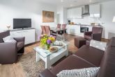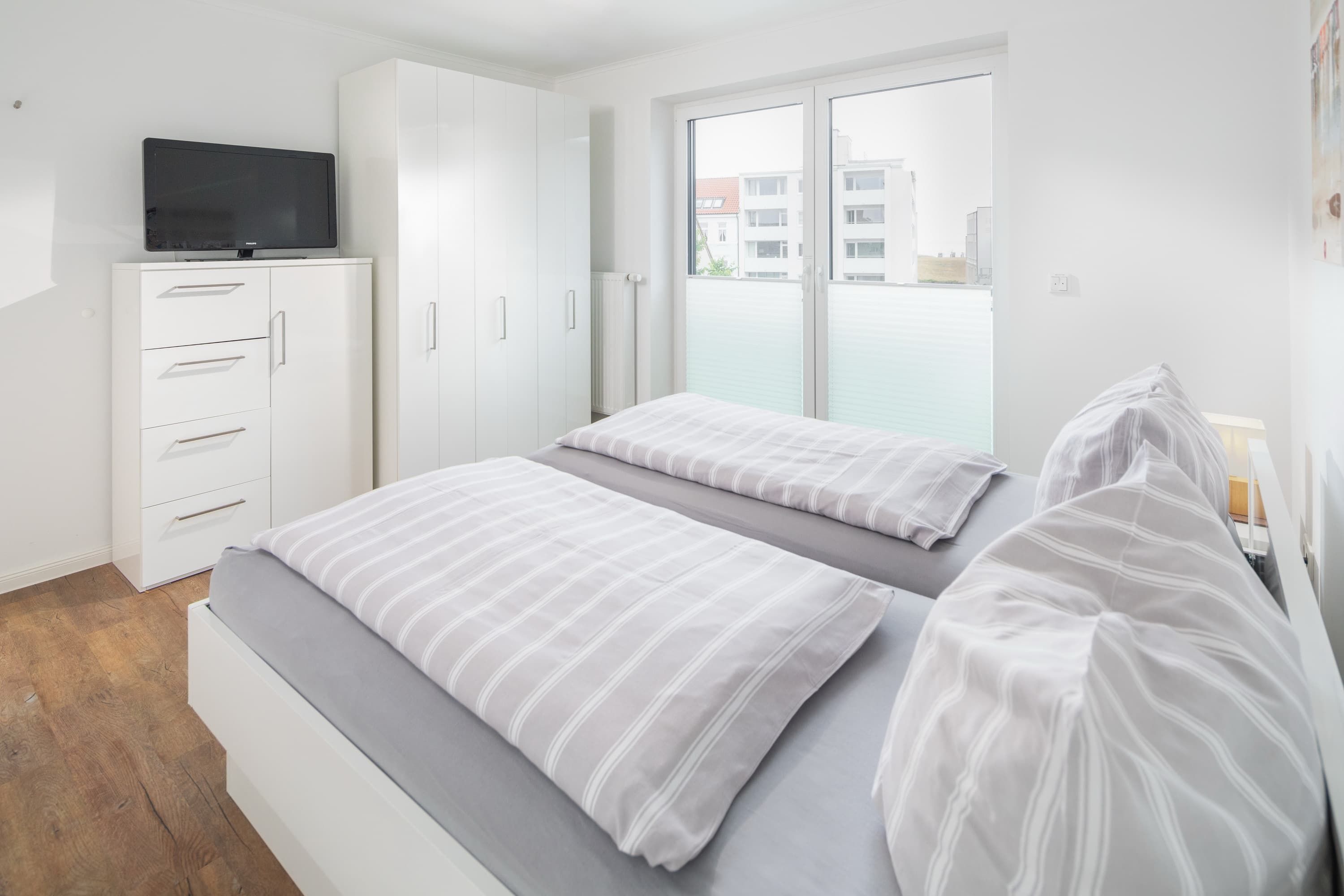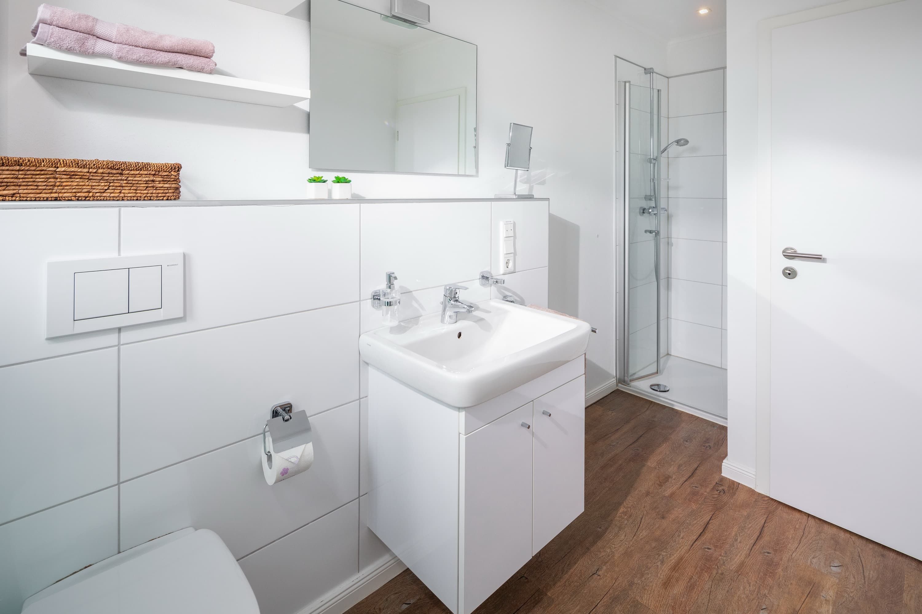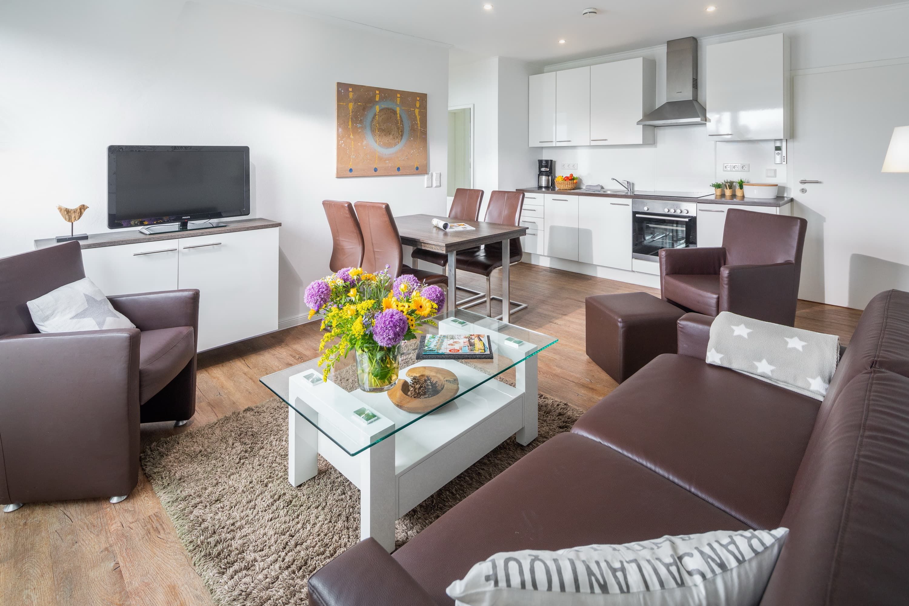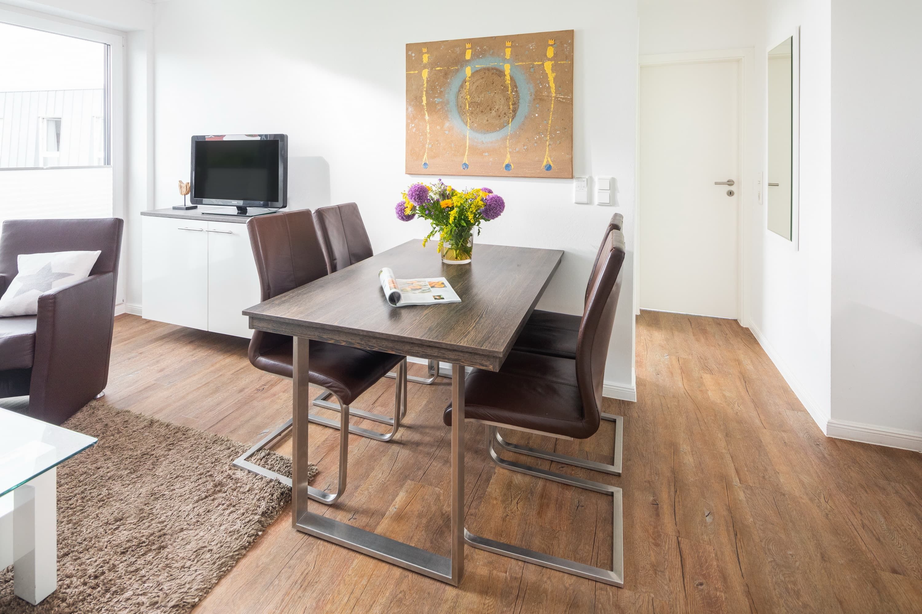 Sie verfügt über ca 45qm Wohnfläche und liegt im zweiten Stock. Sie bietet neben einem geräumigen Schlafzimmer mit Doppelbett einen modern und gemütlich gestalteten Wohnbereich mit Esstisch und angrenzender Küche. Im Wohnzimmer befindet sich eine hochwertige Schlafcouch die mit wenigen Handgriffen zu einem vollwertigen Bett mit Matratze und Lattenrost ausgezogen werden kann.