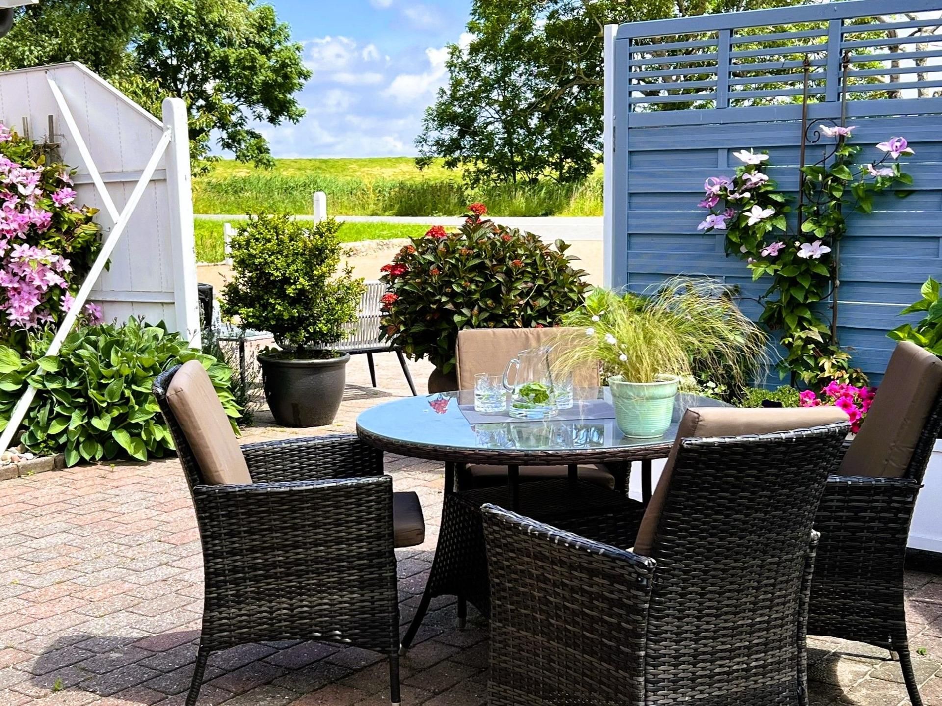 Ein gemütlicher Garten mit neuer Panoramsauna, Gartenmöbeln, Strandkörben und einem Grillplatz lädt zum verweilen und entspannen ein. PKW Stellplatz steht Ihnen kostenfrei zur Verfügung. Ein Waschcenter mit Waschmaschine und Trockner kann gegen Gebühr genutzt werden.