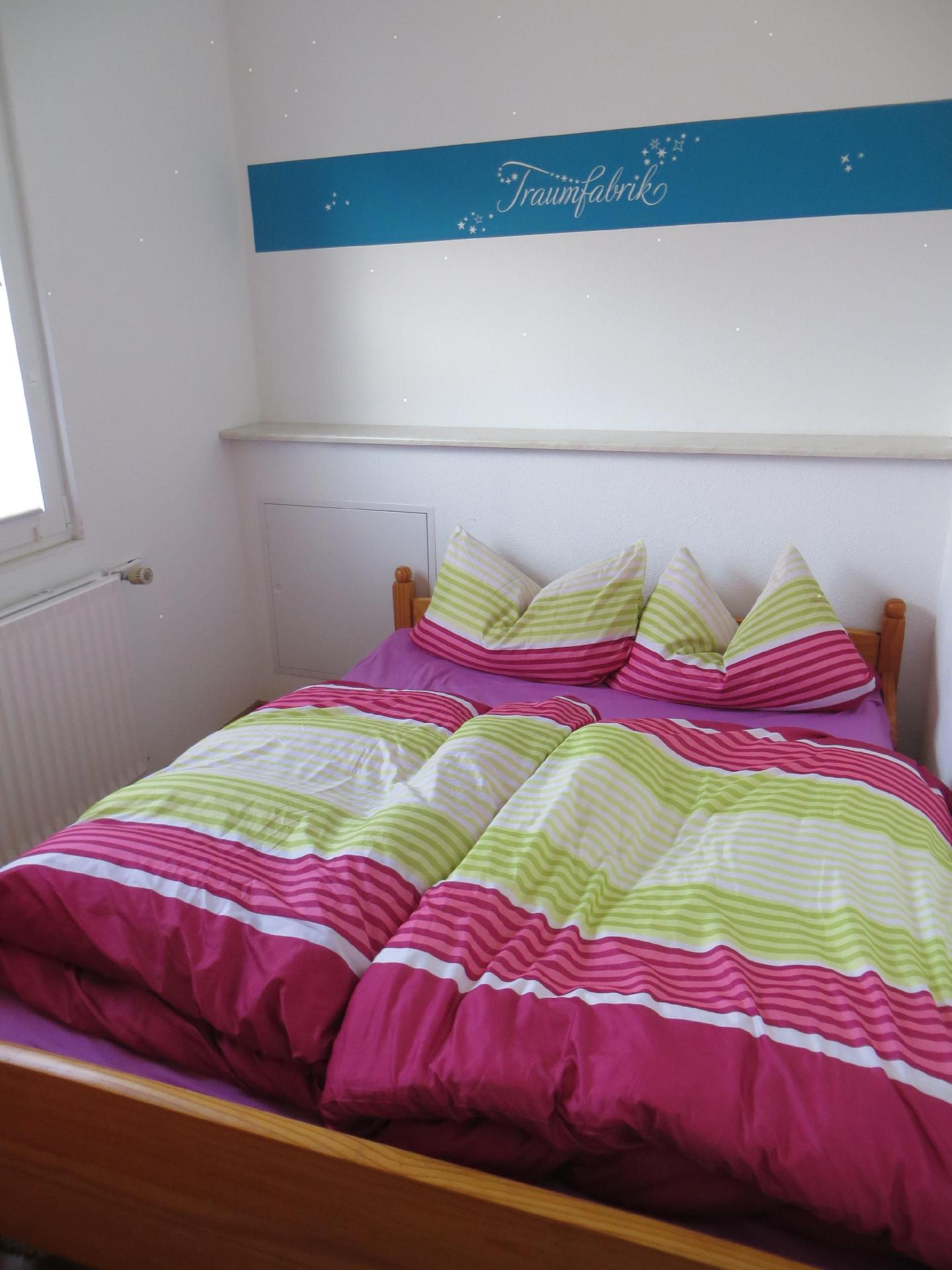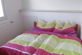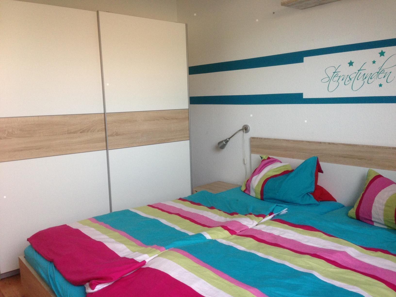 Das erste Schlafzimmer(12m²) besitzt ein Doppelbett (180 x 200) mit zwei 7-Zonen Einzelmatratzen und einen SAT-Fernseher (Flachbildschirm 32 Zoll) sowie einen großen Schiebetürenschrank. Das zweite Schlafzimmer (8m²) hat ein Doppelbett (180 x 200) mit zwei 7-Zonen Einzelmatratzen) und einen Schrank.