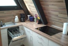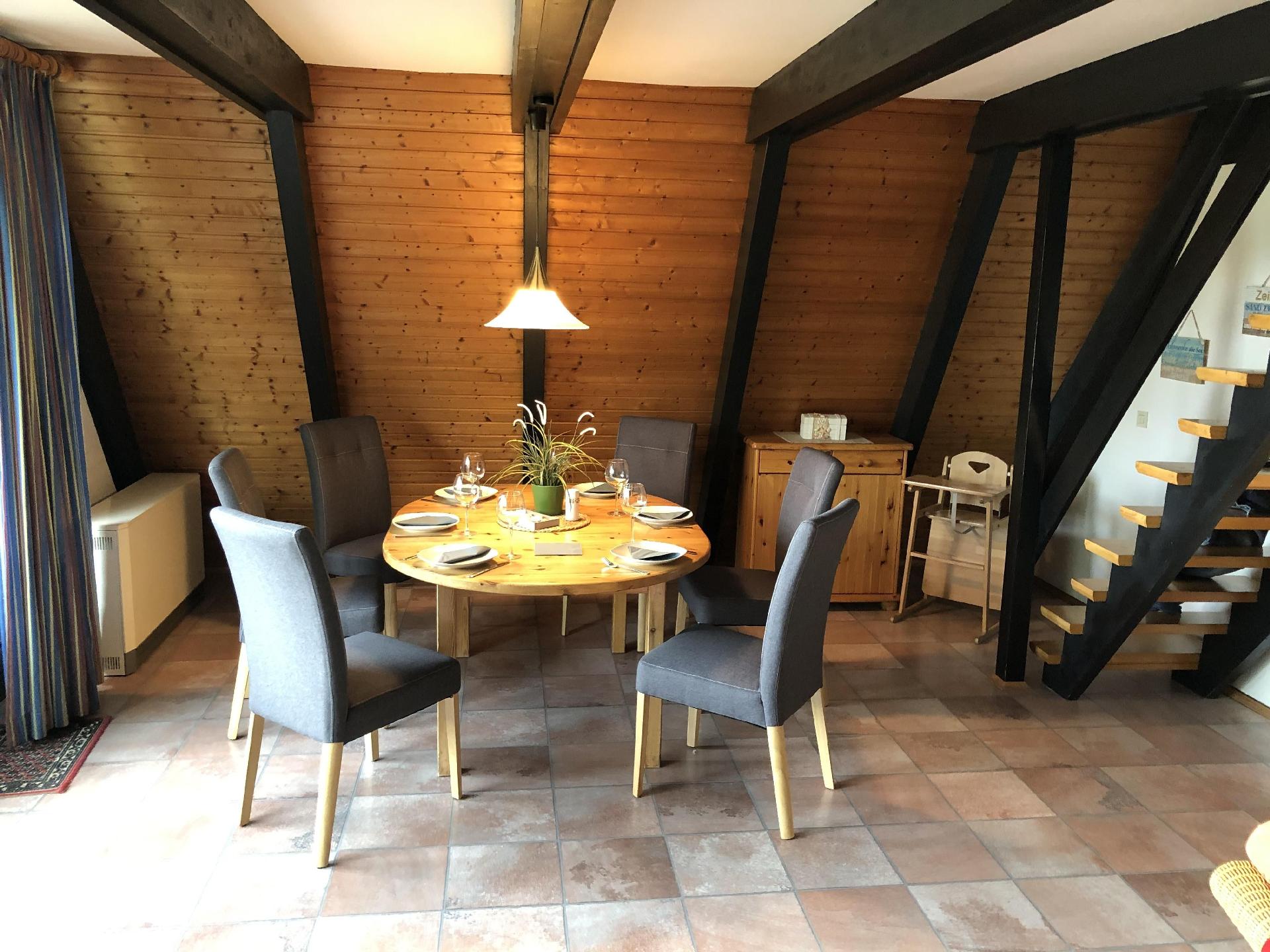 Das Ferienhaus unterteilt sich auf einer Wohnfläche von 78 m² in zwei Etagen. Zwei der drei Schlafzimmer befinden sich im Obergeschoss und verfügen jeweils über zwei Betten. Im Erdgeschoss werden Sie in einem dritten Schlafzimmer empfangen, das auch mit zwei Betten eingerichtet ist. Im großzügig geschnittenen Wohn- und Esszimmer können Sie schöne Stunden mit vorhandenen Gesellschaftsspielen und Büchern verbringen. Die Wohnzimmergarnitur ist im Mai 2022 erneuert worden. Nehmen Sie Platz in der gemütlichen Wohnoase, die aus zwei bequemen Sofas und einem Sessel besteht und lassen die Seele baumeln. Von dort haben Sie den Blick auf den Fernseher mit Sat.-TV Anschluss und DVD-Player. Nutzen Sie die vorhandenen DVDs oder Ihre mitgebrachten Filme für einen gemeinsamen Filmeabend. Die neuwertige Küche bietet Ihnen alles, was Sie für einen entspannten Familienaufenthalt brauchen. Von Spülmaschine bis hin zum Apfelschneider ist alles vorhanden. Der runde Esstisch eignet sich vorzüglich für gemeinsame Speisen.