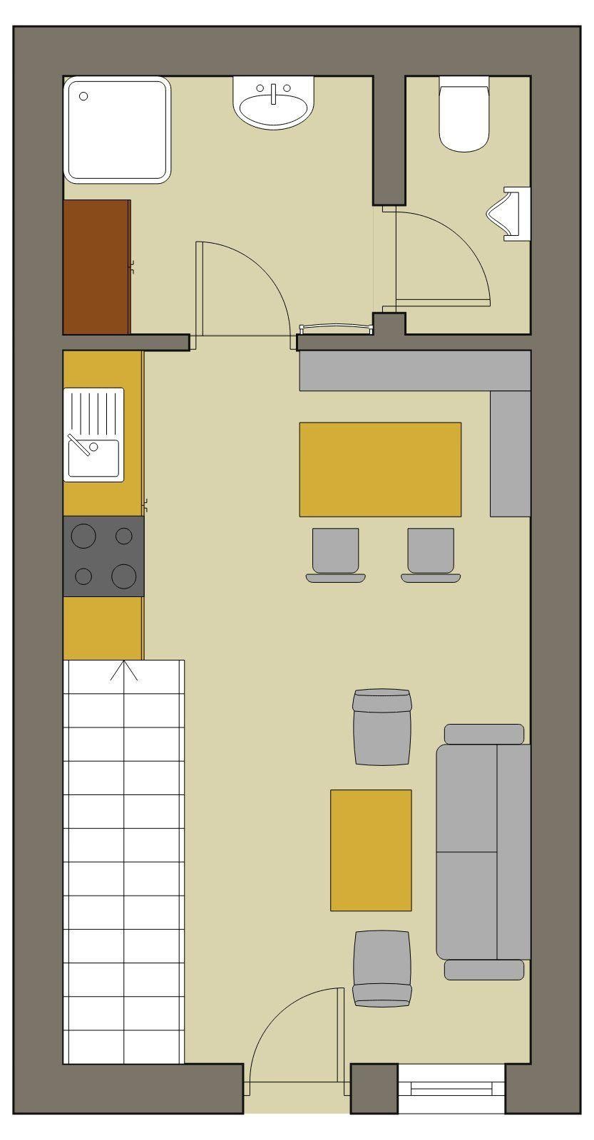 Kochen: Ceranherd; Gefrierfach; Herd; Kaffeemaschine; Kaffeemaschine; Kaffeepadmaschine; Kühlschrank; Mikrowelle; Minibackofen; Spülmaschine; Toaster; Wasserkocher