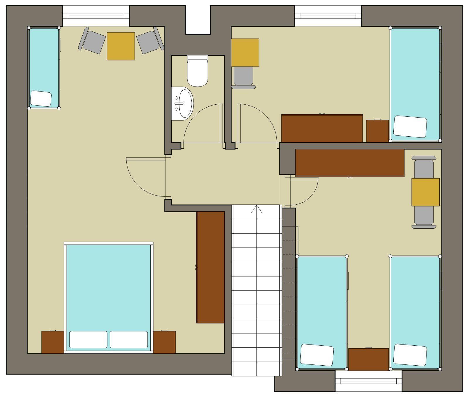 Schlafmöglichkeiten: Anzahl Doppelbetten (1,80m Breite): 1; Anzahl Einzelbetten: 3