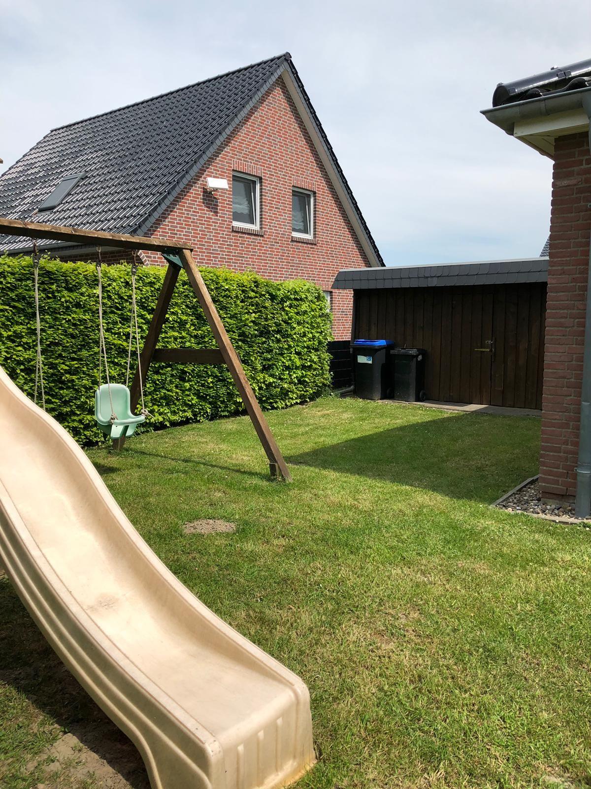 Der großzügige, komfortabel eingerichtete Nichtraucher-Bungalow bietet auf 115 m² ebenerdiger Wohnfläche alle Voraussetzungen für einen erholsamen Urlaub. Nach Betreten des Hauses empfängt Sie gleich die helle und freundliche Atmospäre des weitläufigen, komplett neu eingerichteten komfortablen Bungalows. Das Haus verfügt über 3 Schlafzimmer, die ausreichend Platz zum Zurückziehen bieten. Sie können zwischen zwei Doppelbettzimmer und einem kleineren Zweibettzimmer (mit Tisch zum Wickeln)wählen. Alle Schlafzimmer sind mit einem Schrank ausgestattet, so dass jeder Gast genügend Ablagefläche vorfindet. Des Weiteren stehen 2 Bäder zur Verfügung. Ein Bad ist mit einer Dusche und WC ausgestattet. Das zweite Bad mit WC bietet neben einer ebenerdiger Dusche zusätzlich auch noch eine Badewanne. Im weitläufigen Wohnbereich mit Flachbildschirm-Fernseher lädt eine große, gemütliche Sofaecke zum Ausspannen ein und der Essplatz für 6 Personen bietet ausreichend Platz zum Essen und Spielen. Für wohlige Wärme an kalten Wintertagen oder einfach für gemütliche Stunden das ganze Jahr über, sorgt der Kaminofen. Die an den Wohnbereich angrenzende offene, helle und freundliche Küche ist mit Backofen, Ceranfeld, Kühlschrank mit Gefrierfach, Mikrowelle und Spülmaschine komplett ausgestattet. Ein Abstellraum im Haus und ein Carportzum Unterstellen des Autos und von Fahrrädern komplementieren die komfortable, großzügige Ausstattung des Bungalows. Vom Wohnbereich, von einem der Doppelbettschlafzimmer und von der Küche aus gelangt man über Terrassentüren auf die Terrasse hinter dem Haus und in den Garten, der von einer neu gepflanzeten Hecke umrandet wird. Terrassenmöbel stehen zur Verfügung. Die Größe und ebenerdige Bauart, sowie der große, offene Wohn- und Küchenbereich und das Badezimmer mit einer barrierefreien Dusche bieten auch genügend Bewegungsfreiheit für Rollstuhlfahrer. Ein Babyreisebett und ein Kinderhochstuhl stehen ebenfalls zur Verfügung.