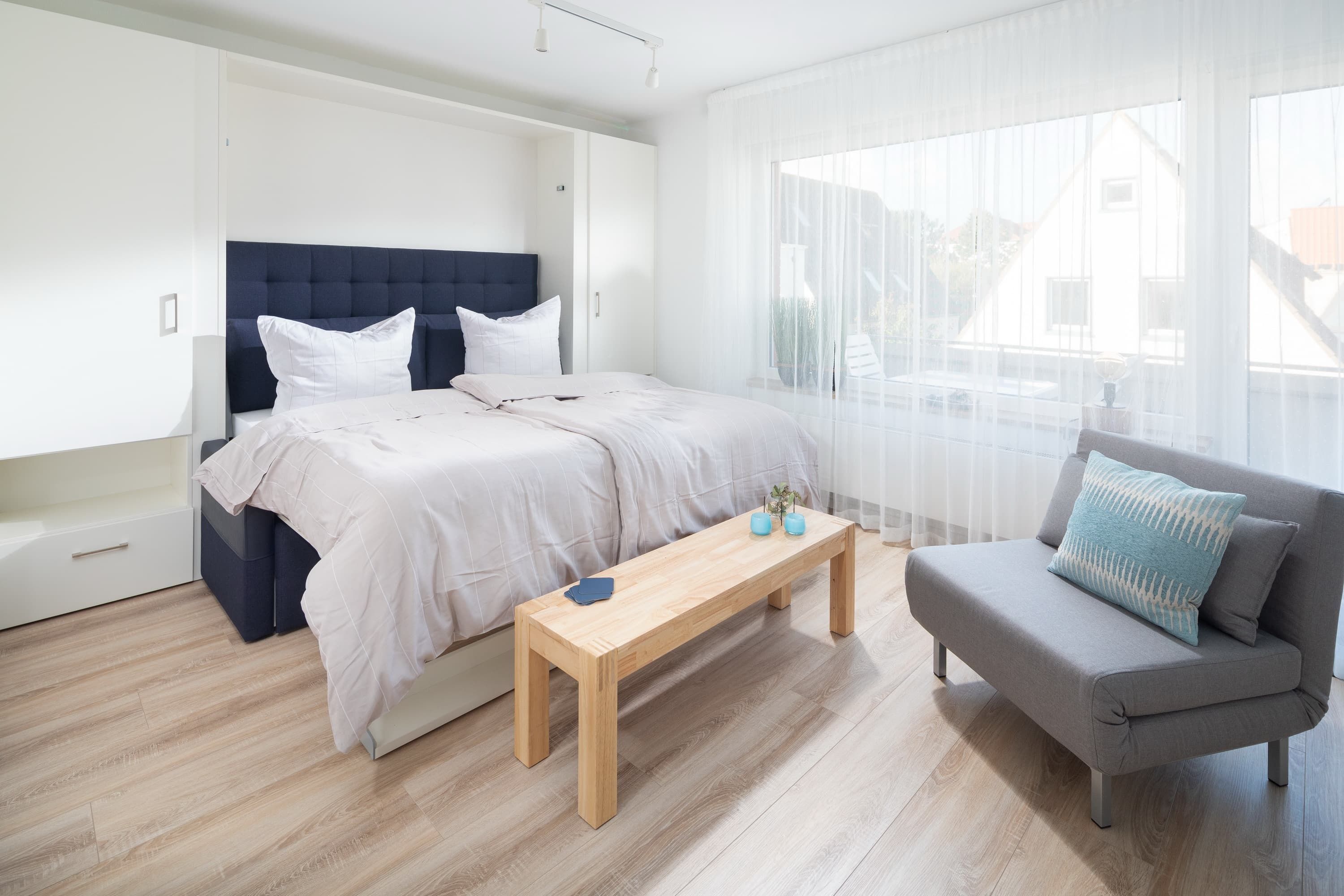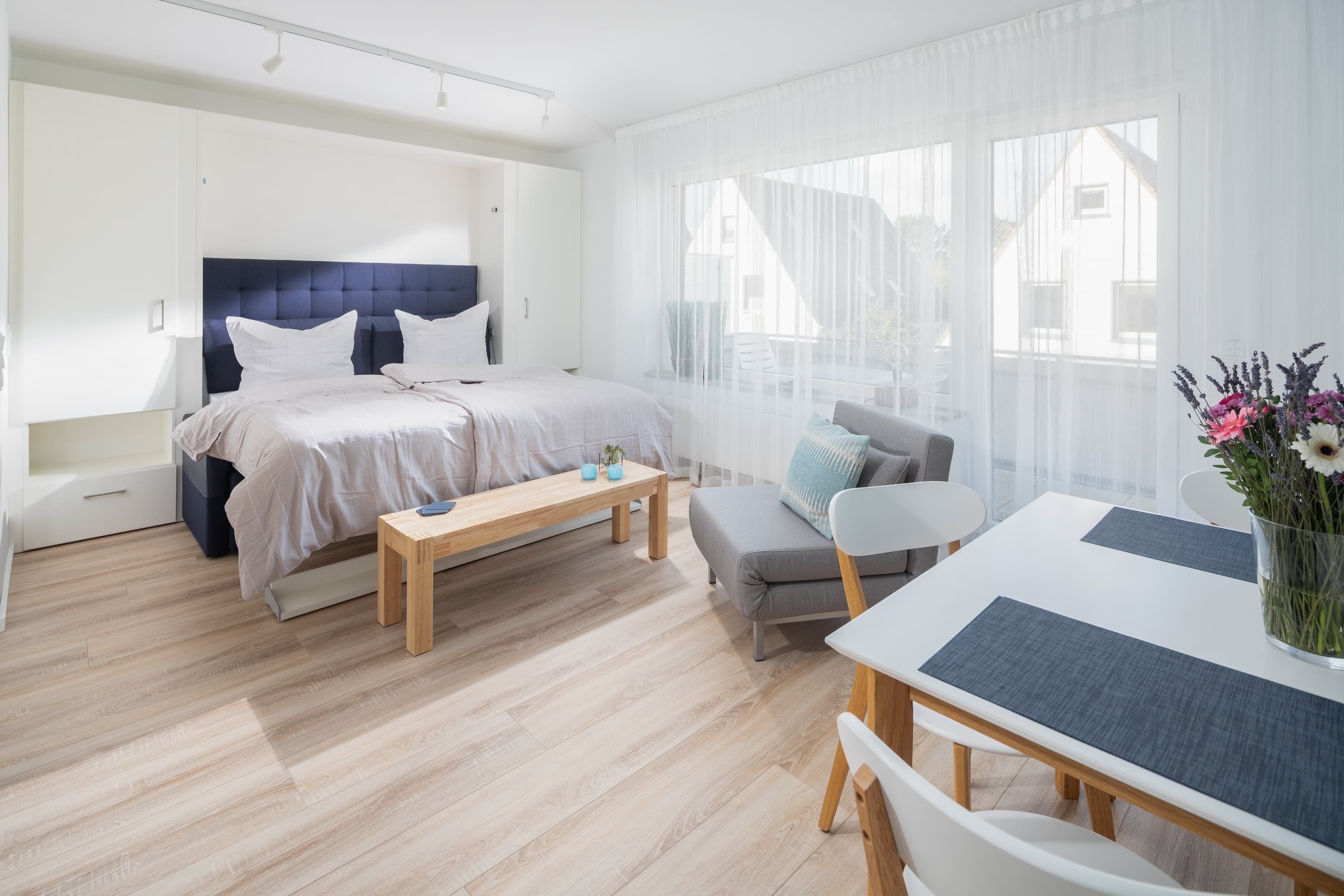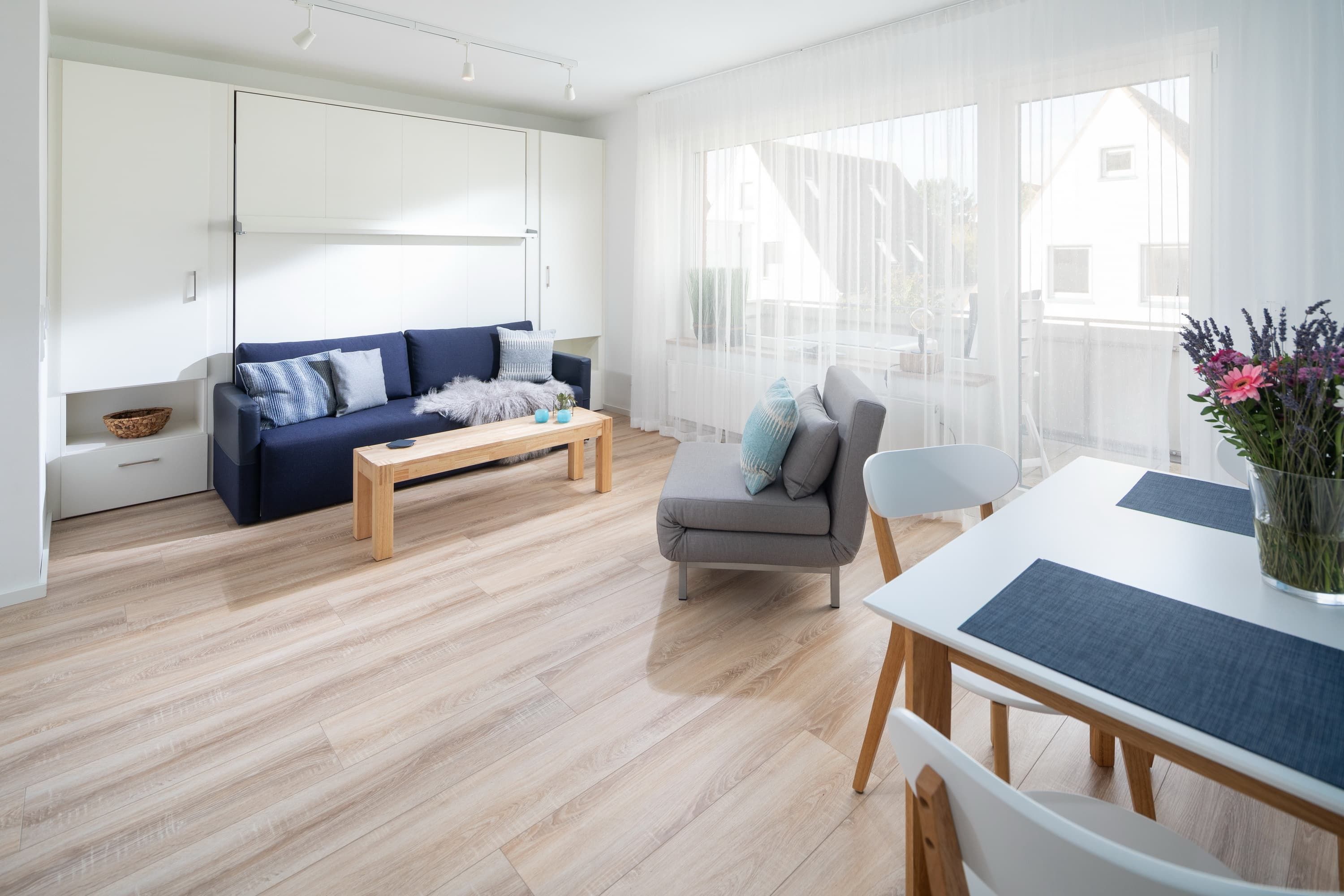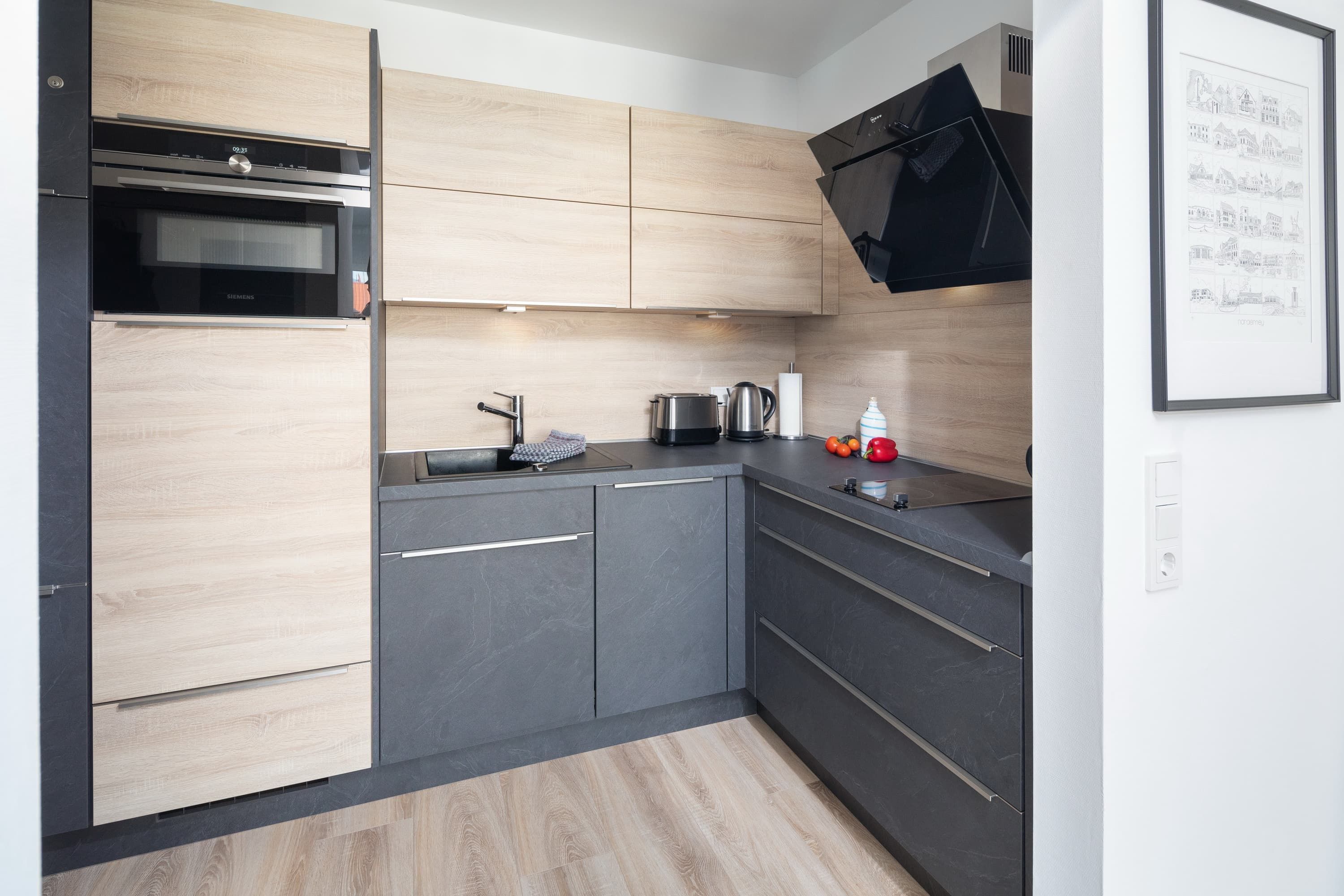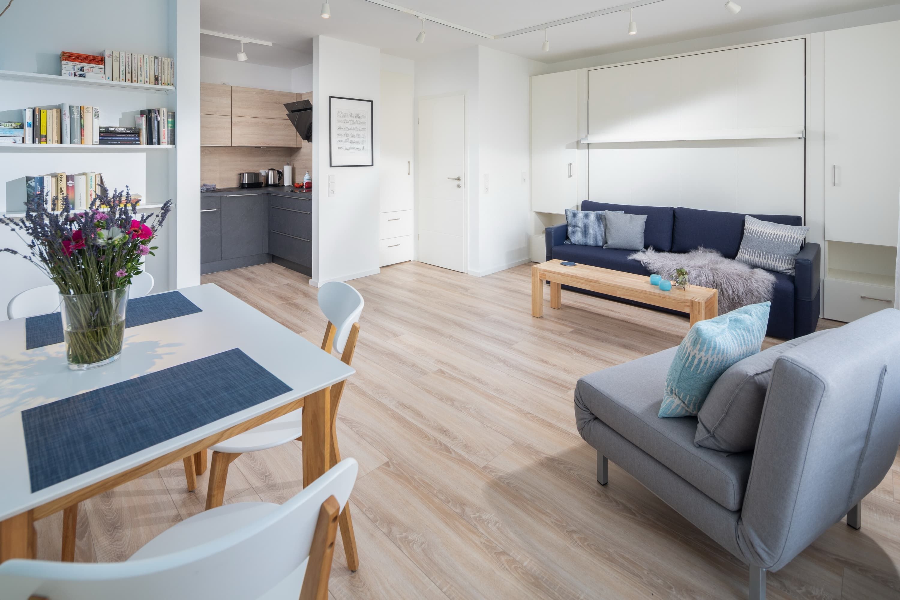 Die Ferienwohnung wurde 2019 komplett saniert. Der helle Wohn- und Schlafraum bietet ein hochwertiges Schrankbett mit integriertem Sofa. Am Esstisch können Sie gemeinsam frühstücken oder im gemütlichen Sessel etwas lesen. Die schöne Fototapete sorgt auch bei Nieselregen für Urlaubsgefühl! Die Küche bietet alle gängigen Elektrogeräte und wird auch Kochliebhabern gerecht. Vom Wohn- und Schlafraum aus gelangen Sie auf den geräumigen Balkon, von dem aus Sie die Dünen des Nordstrandes sehen können. Nur 50m sind es bis zum beliebten Januskopf mit Surfcafé und Cornelius.