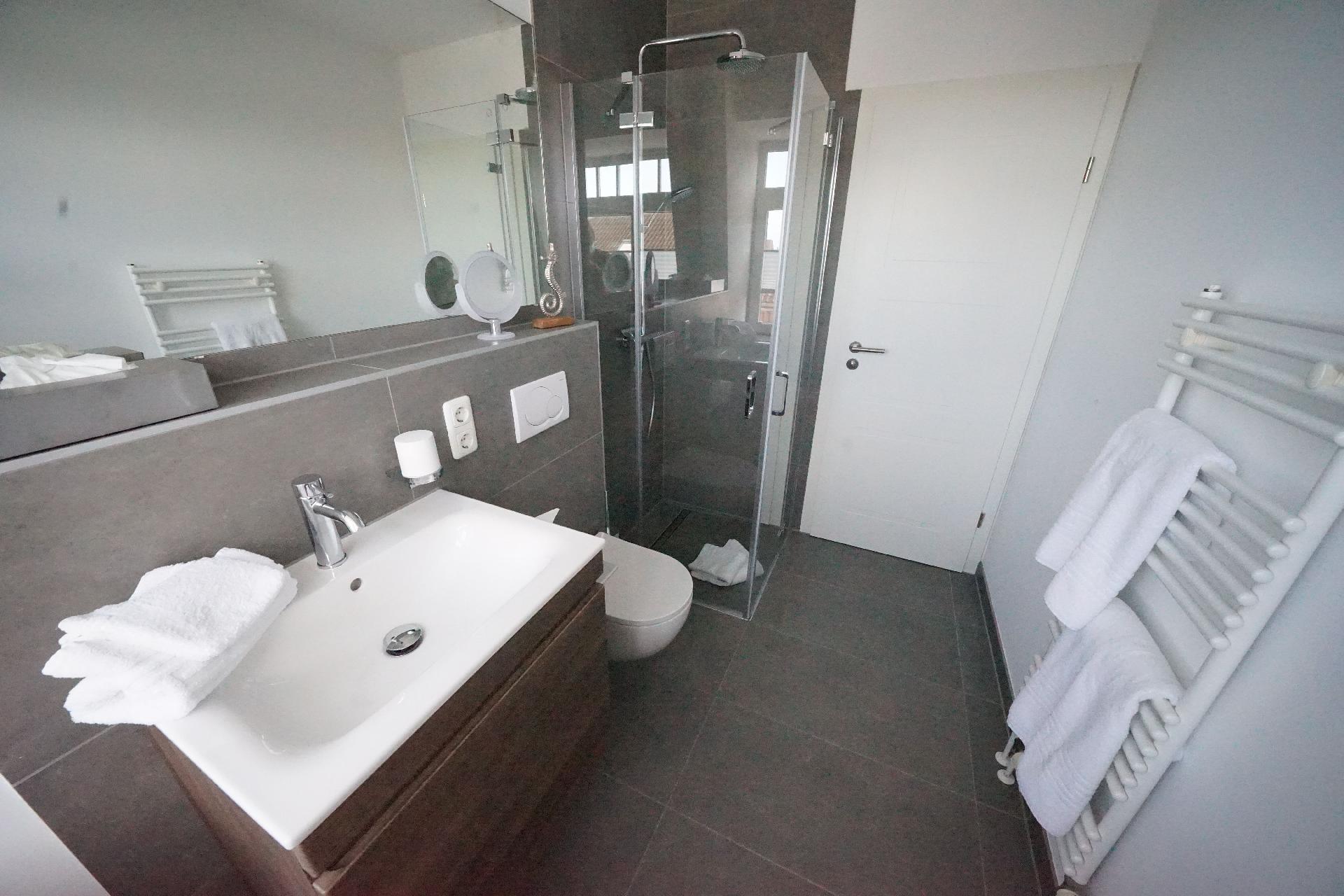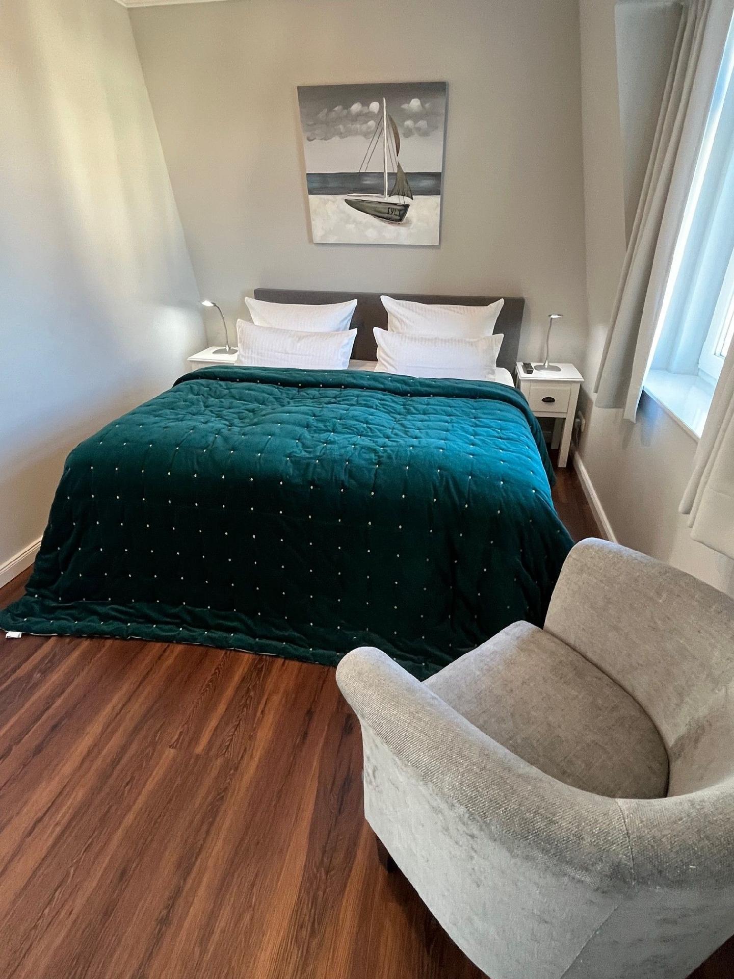 Im Inneren der Wohnung erwartet Sie eine einladende Atmosphäre, ausgestattet mit allem, was Sie für einen sorglosen Aufenthalt benötigen. Die Wohnung verfügt über zwei Schlafzimmer, die nach einem ereignisreichen Tag zur Ruhe einladen. Jedes Zimmer ist ausgestattet mit einem komfortablen Doppelbett (1,80 × 2 m), Verdunklungsmöglichkeiten sowie praktischen Annehmlichkeiten wie einem Bügelbrett und Bügeleisen, um stets bestens vorbereitet zu sein. Zur gemeinschaftlichen Nutzung im Gebäude stehen Ihnen eine Waschmaschine und ein Wäschetrockner zur Verfügung, was Ihnen das Reisen mit leichtem Gepäck ermöglicht.