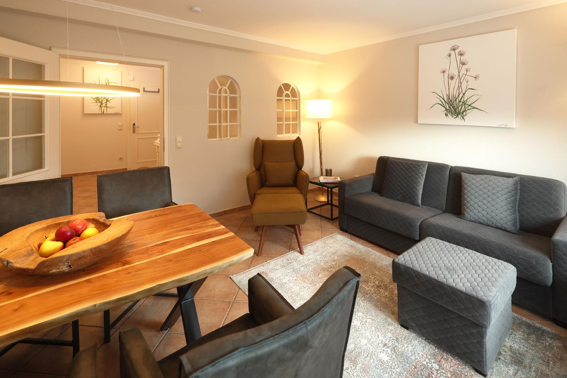 Unser Apartment Strand-Lodge verfügt über ein Schlafzimmer mit Doppelbett 180x200, einem großzügigen Wohnzimmer, einem großen Essbereich, mit Küche, ein Duschbad und ein Gäste-WC, Sauna, Hauswirtschaftsraum mit Waschmaschine und Trockner, Gaderobenschrank, Garten und Terrasse.