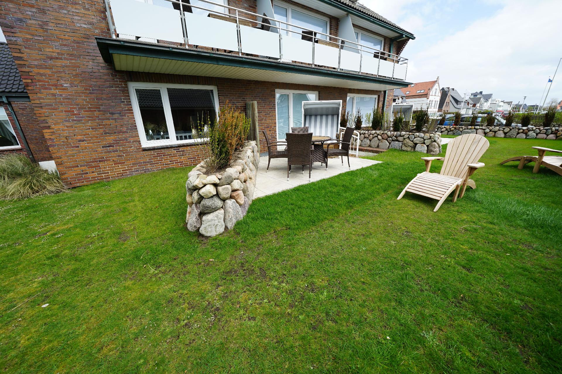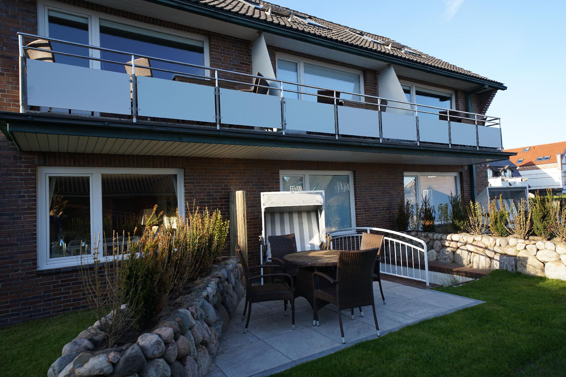 Wir heißen Sie herzlichst willkommen in unserer geräumigen 2-Zimmer-Ferienwohnung Strand-Lodge in der neu eröffneten Strandvilla Schützenstraße 4 in Westerland. Unsere Strand-Lodge ist mit 89 qm die mittlere der drei Ferienwohnungen im Erdgeschoss. Sie erstreckt sich über 2 Ebenen (Erdgeschoß und Souterrain).Eintreffen und wohlfühlen - lautet hier die Maxime!Die schöne Erdgeschosswohnung ist ideal für 2-3 Personen. Sie betreten sie durch die Küche. Diese ist ausgestattet mit einer Esstischgruppe, einem 2er Cerankochfeld und einem Geschirrspüler. Von hier aus schließt sich das Wohnzimmer mit einer bequemen Schlafcouch, einer Stereoanlage, einem DVD Player und dem Flat TV an. Hier haben Sie auch Zugang zur sonnigen Südterrasse mit Strandkorb und Gartenmöbeln. Eine breite Treppe führt ins Souterrain. Hier befindet sich sowohl das große Schlafzimmer mit Boxspringbett und Flat TV als auch das Duschbad und ein separates Gäste WC.Im Schlafzimmer lädt ein behagliches Bett zum Träumen ein. Das Wohnzimmer bietet mit einer Schlafcouch eine weitere Möglichkeit. Im geräumige Badezimmer finden Sie eine Dusche. Eine zusätzliches Gäste-WC ist ebenfalls vorhanden.Im Souterrain des Hauses befinden sich Waschmaschine und Trockner, ein Bügelbrett und Bügeleisen sowie eine Sauna (gegen Gebühr), die gemeinschaftlich genutzt werden können. Selbstverständlich gibt es im gesamten Haus Free Wifi.Ob in weichen Polstern , am großen Esstisch oder auf der Terrasse: Es bieten sich viele Möglichkeiten gemeinsam zu entspannen und zu genießen.Kommen Sie mit großen Erwartungen, diese werden hier erfüllt!