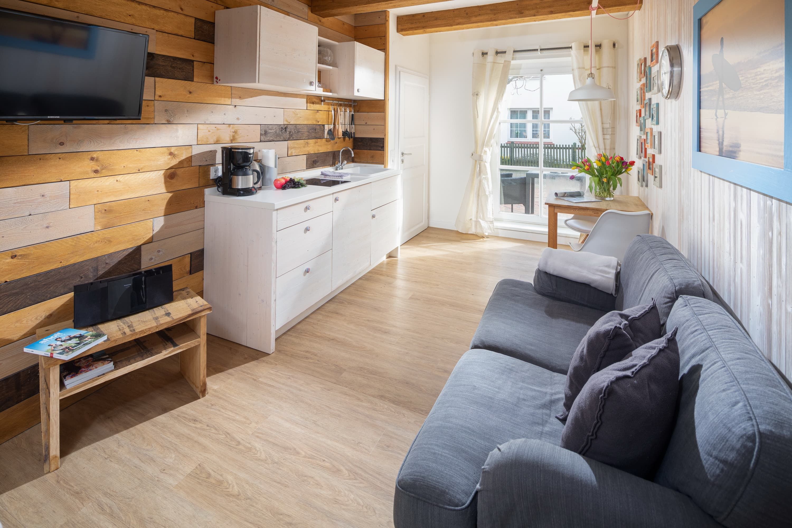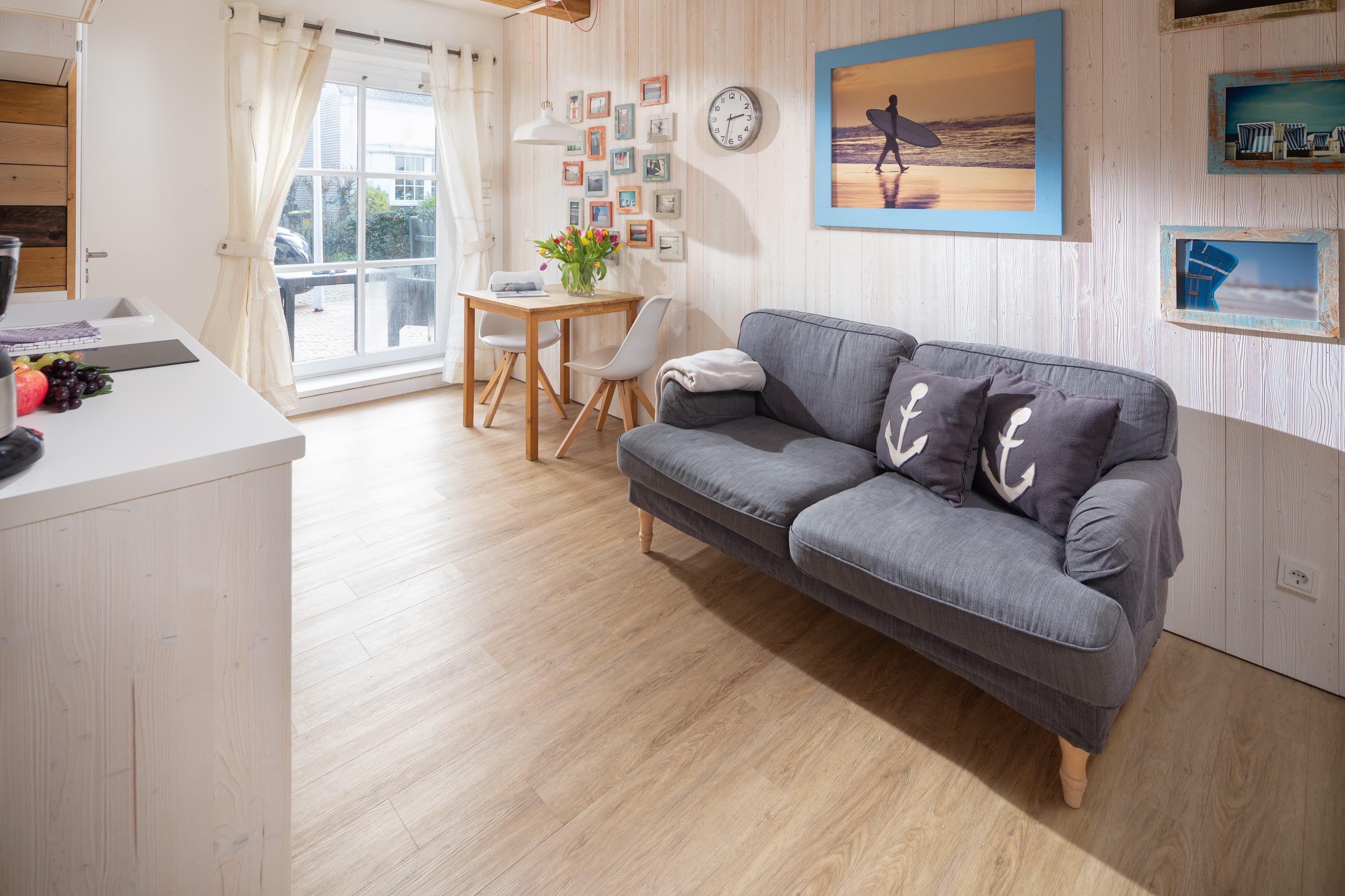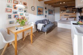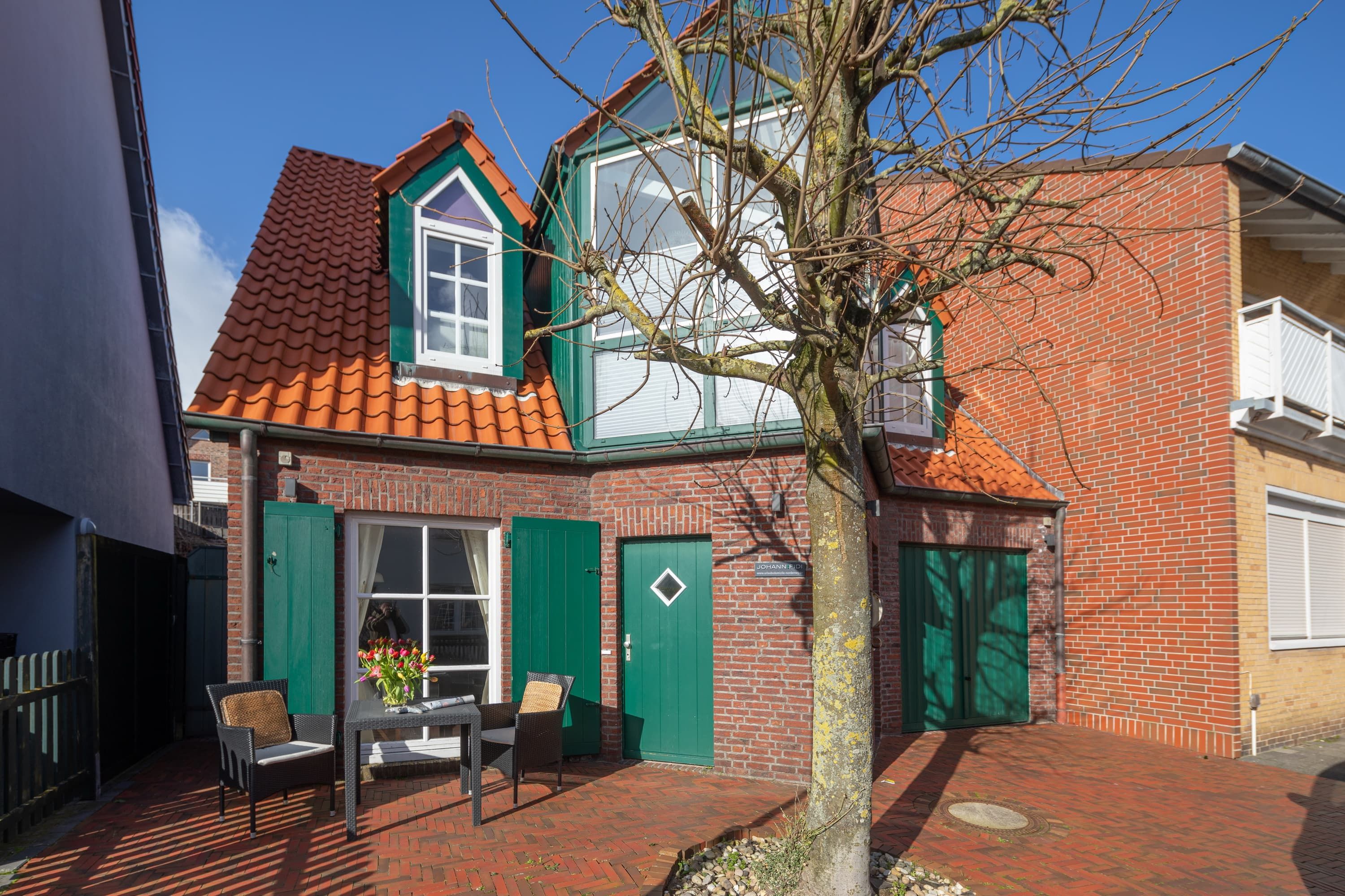 Die Ferienwohnung „Johann Fidi“ liegt in einer kleinen, gemütlichen Gasse im Zentrum Norderneys. Über einen separaten Eingang gelangen Sie in den Wohn- und Schlafraum mit Doppelbett (1,60), Küchenzeile und Esstisch, Flur mit Kleiderschrank und das separate Duschbad. Vor dem Haus haben Sie die Möglichkeit sich entspannt im Aussenbereich in der Langestraße zu Kaffee und Kuchen in die Sonne zu setzen. In der geschützen Garage können Sie Ihre Fahrräder sicher verstauen.