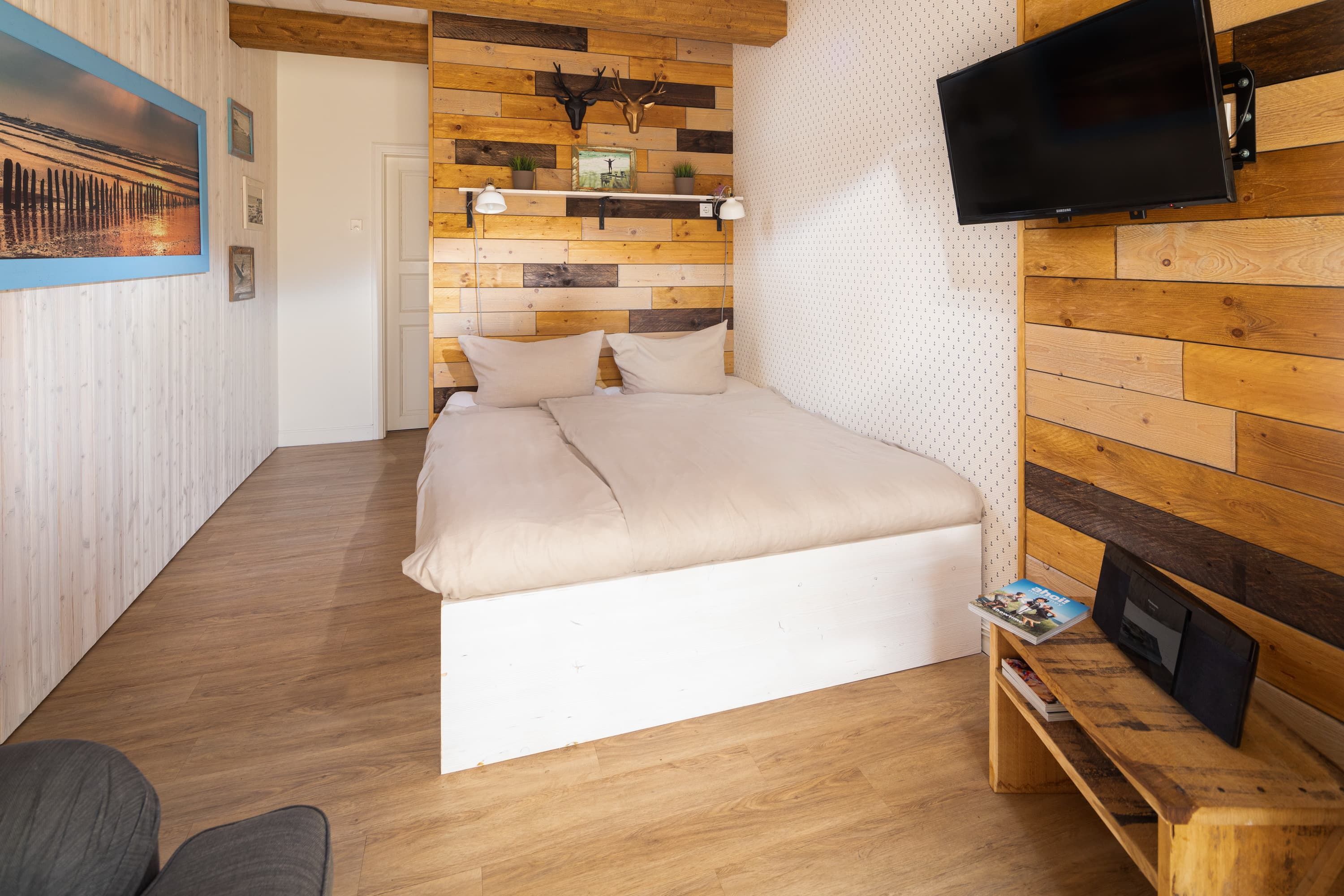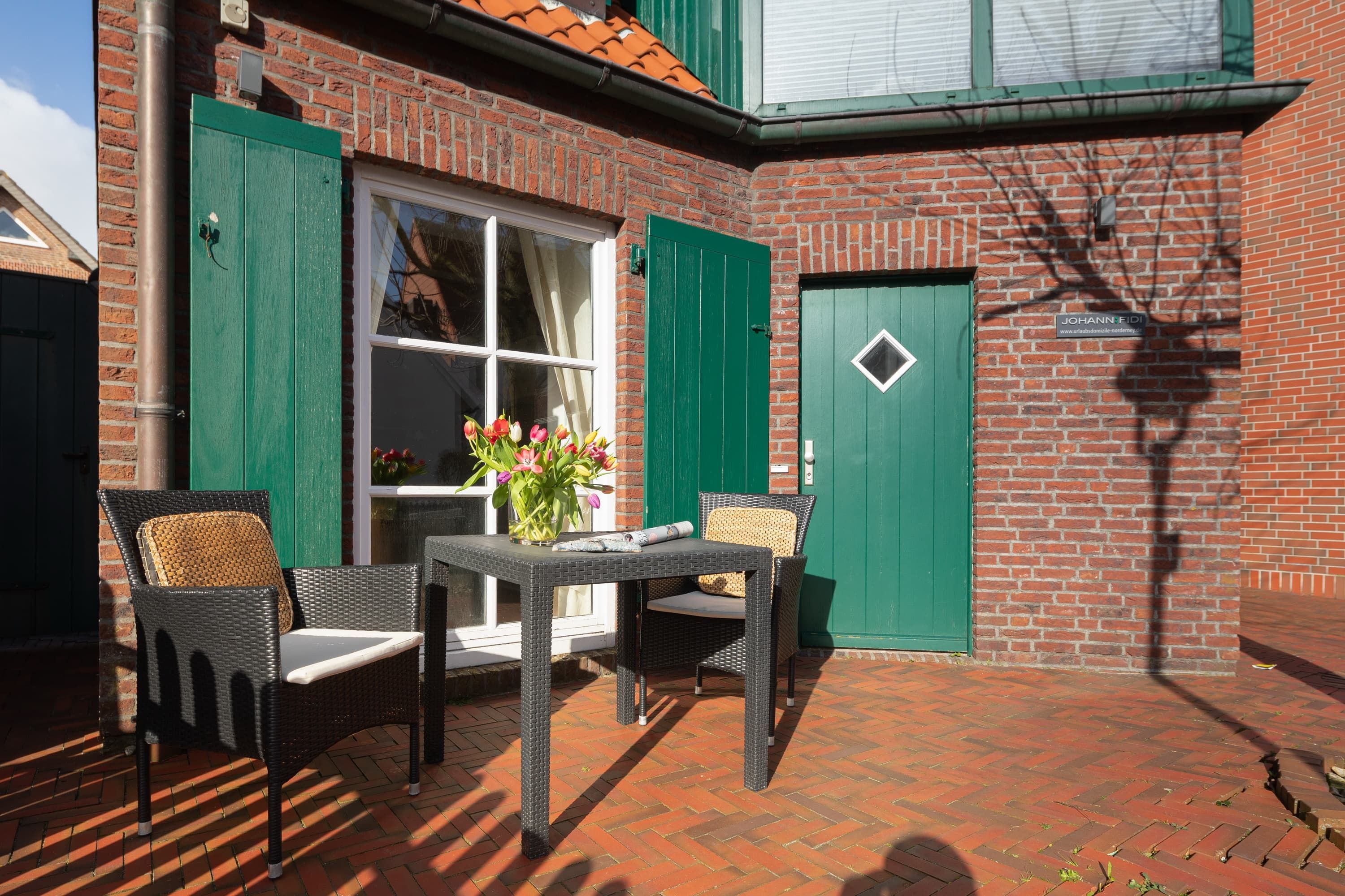Die Ferienwohnung Johann Fidi liegt in einer kleinen, gemütlichen Gasse im Zentrum Norderneys. Über einen separaten Eingang gelangen Sie in den Wohn- und Schlafraum mit Doppelbett (1,60), Küchenzeile und Esstisch, Flur mit Kleiderschrank und das separate Duschbad. Vor dem Haus haben Sie die Möglichkeit sich entspannt im Aussenbereich in der Langestraße zu Kaffee und Kuchen in die Sonne zu setzen. In der geschützen Garage können Sie Ihre Fahrräder sicher verstauen.