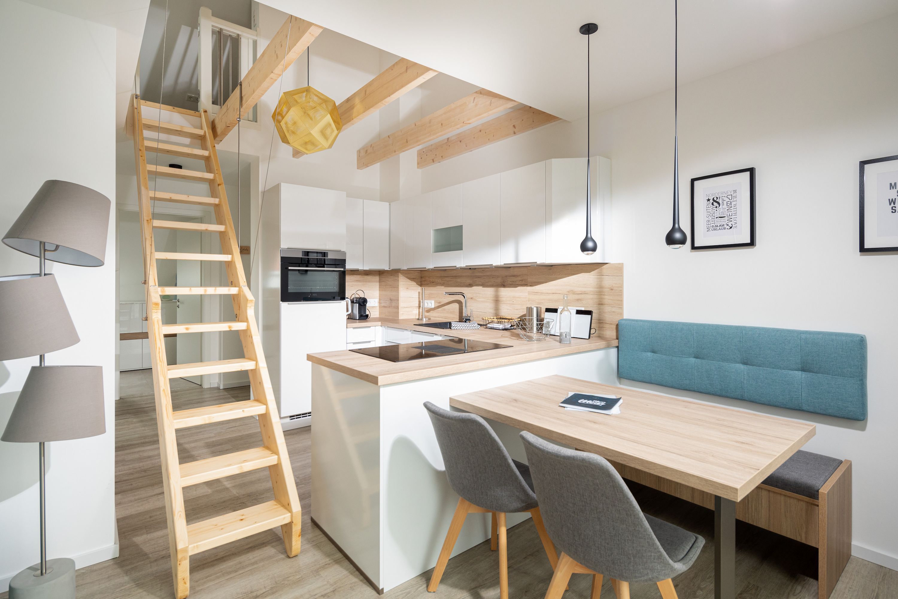 Die Meersuiten sind ein Neubau von 2020, gelegen am Rande der Norderneyer Innenstadt in einer ruhigen Seitenstraße, etwa 400m vom Nordstrand entfernt.