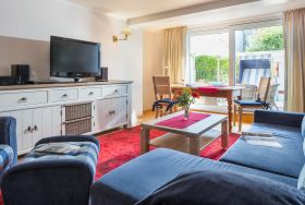 Die 63m² EG-Wohnung mit 12 m² Terrasse bietet Platz für bis zu 4 Personen.