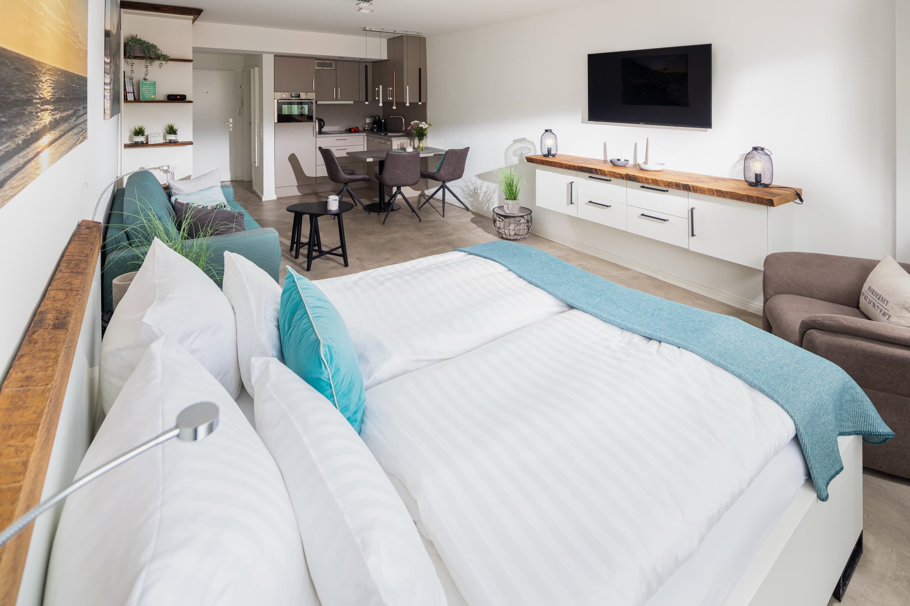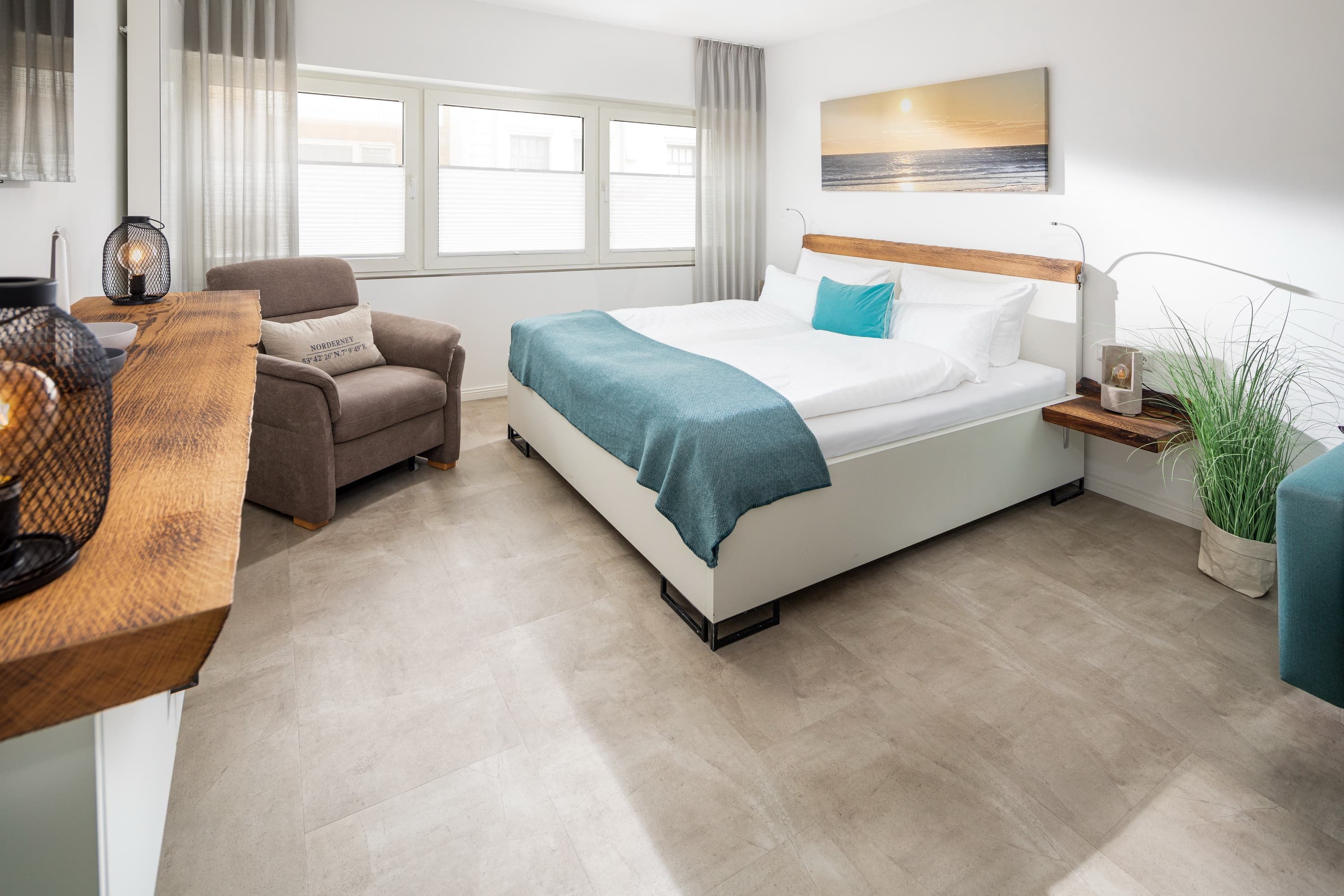 Die „Lüttje Ney“ heißt Sie schon beim Eintreten herzlich willkommen. Die 40 qm große Whg wurde 2020 hochwertig und liebevoll saniert. Sie bietet einen modernen und gemütlichen Wohn-und Schlafraum mit einem 1,80m großen Bett und zwei 155 x 220m großen Bettdecken und insgesamt 4 Kopfkissen zum Wohlfühlen. Ein gemütlicher Relaxsessel mit ausziehbarer Fußstütze und ein bequemes Sofa laden zum Lesen oder Fernsehen (Smart-TV) ein.