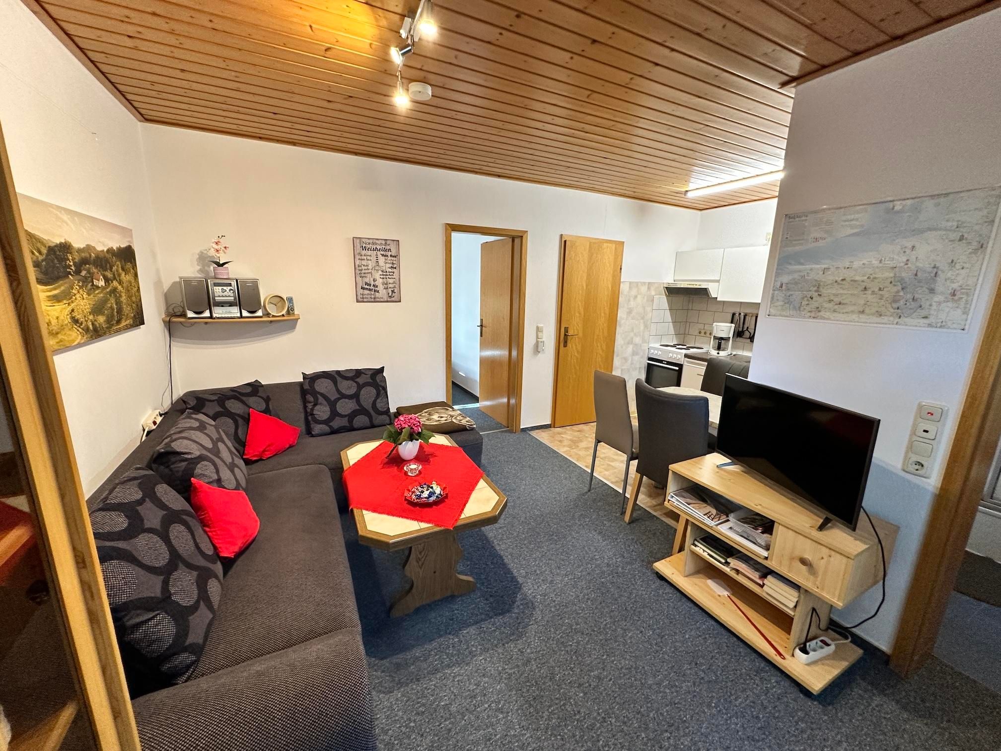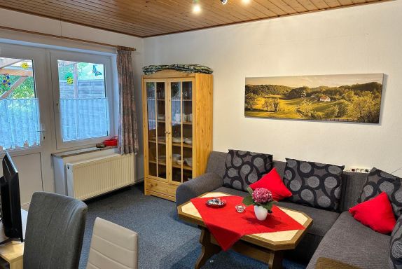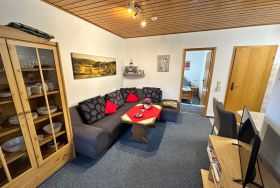 Wohnzimmer mit Couchtisch, 3 er u. 2 er Sofa, Glasschrank, Digital Sat-TV, Telefon, Stereoanlage mit CD-Player natürlich mit Fernbedienung