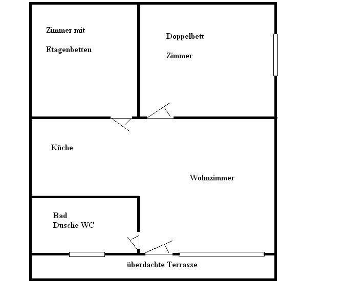 Wir empfehlen die Wohnung für bis zu 2 Erwachsene und 2 Kinder oder 3 Erwachsene und 1 Kind.