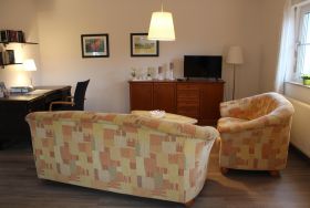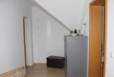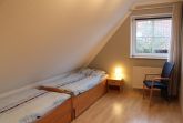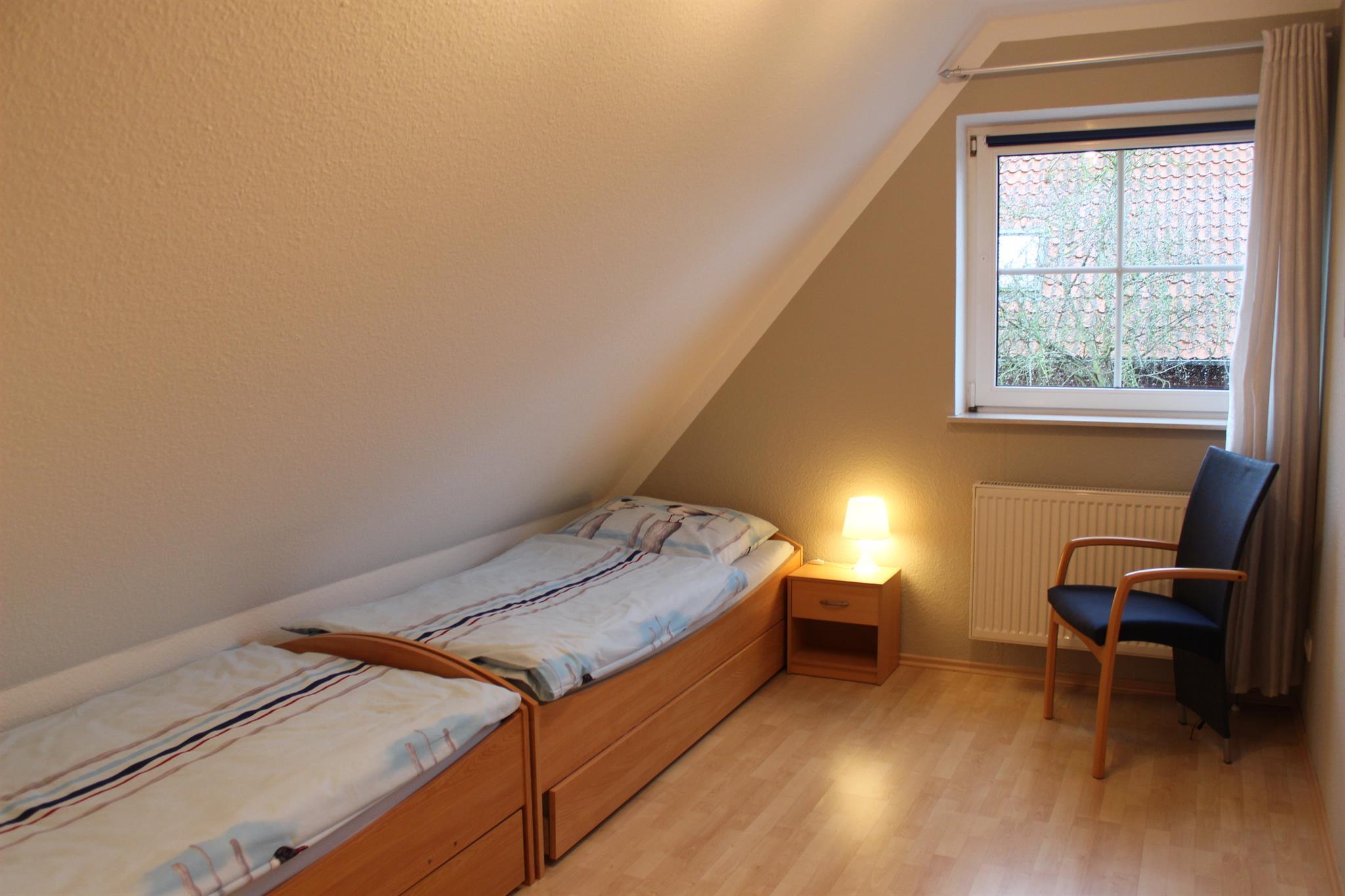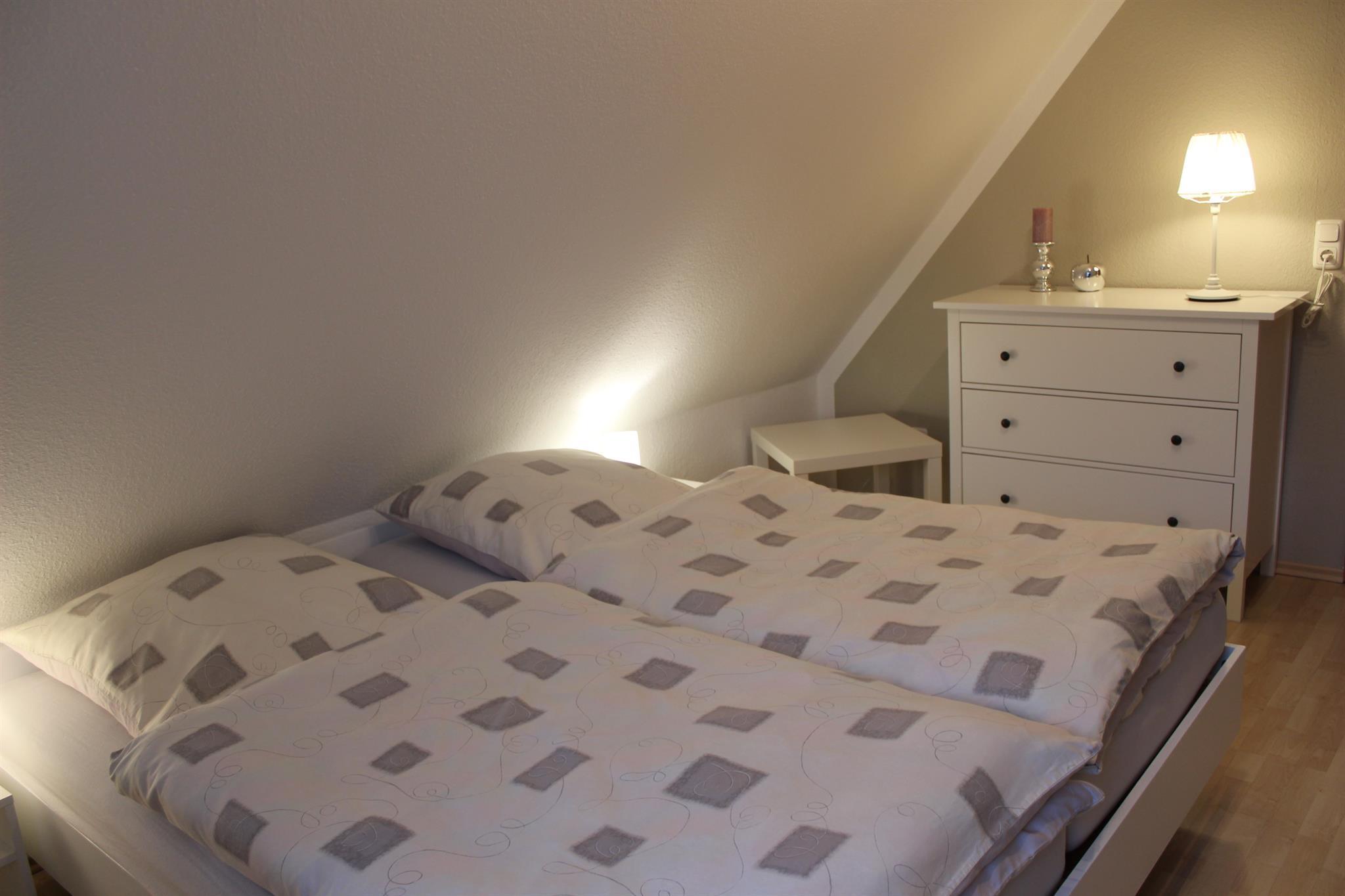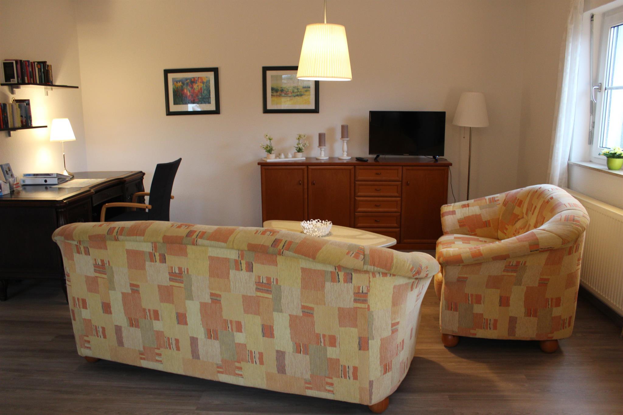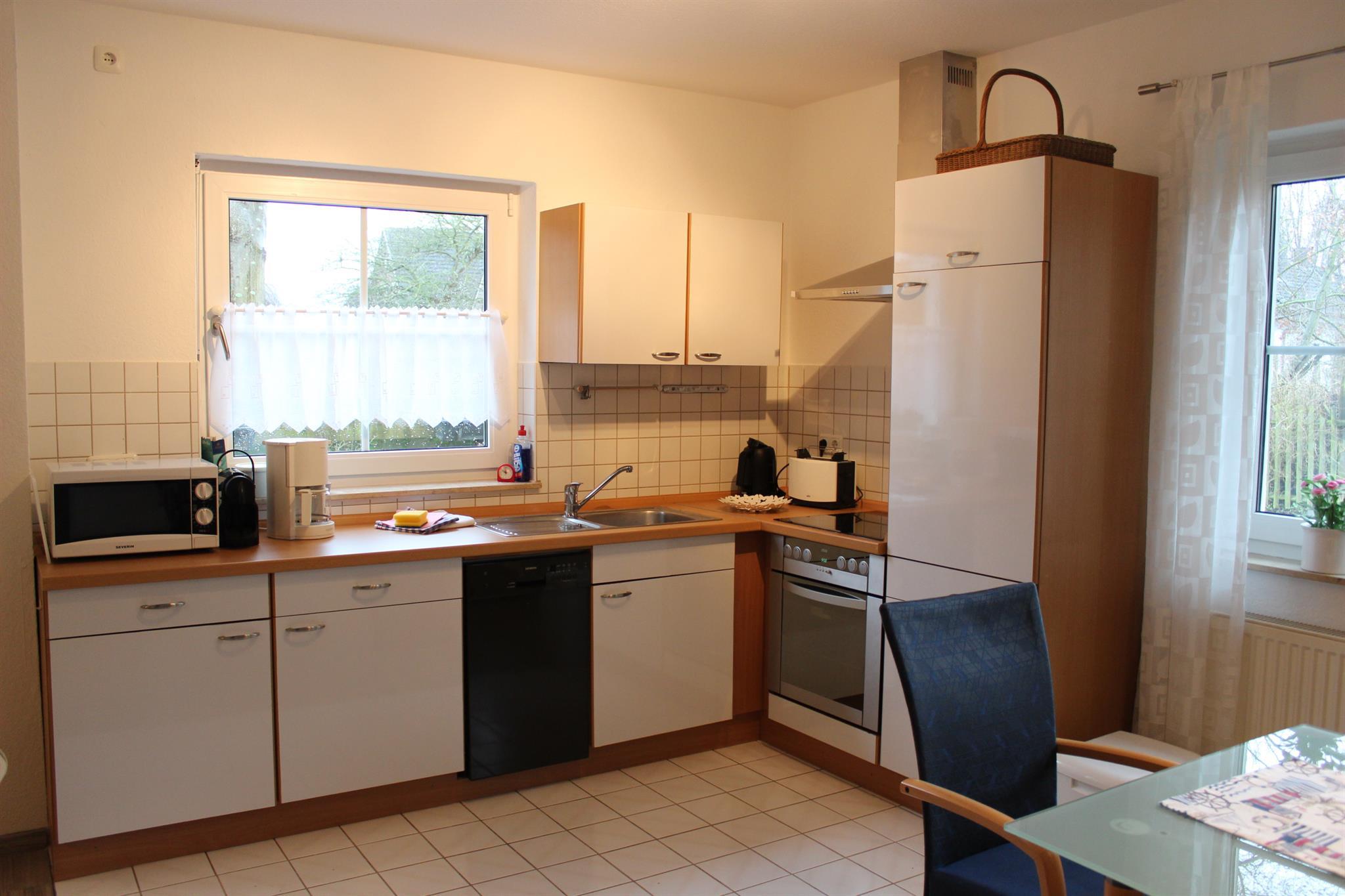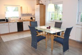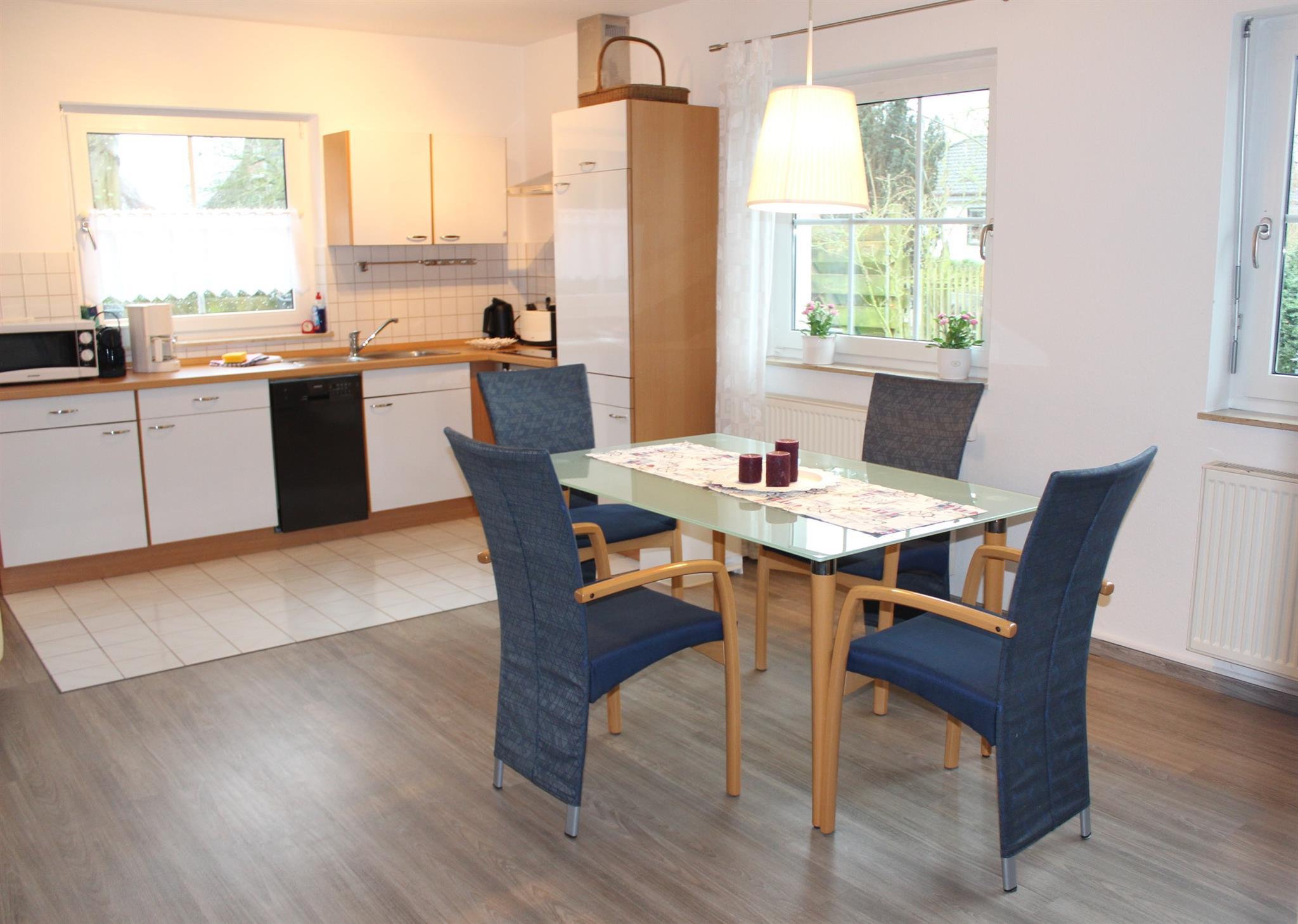 Im Ergeschoss finden Sie im Eingangsbereich eine Garderobe und einen Schuhschrank. Der Wohnbereich mit einer gemütlichen Sitzecke, TV und einem Schreibtisch,der offen ist zur Küchenzeile mit einer voll ausgestatteten Einbauküche die mit Geschirrspülmaschine,Backofen, Mikrowelle, Kühlschrank, Kaffeemaschine, Wasserkocher und Toaster und einer Essecke. Ein Bad mit Dusche und WC. Im Obergeschoss, das mit einem Treppenlift zu erreichen ist, finden Sie die beiden Schlafräume, eins mit Doppelbett und eins mit zwei Einzelbetten, mit je einem Zusatzbett zum ausziehen. Die Terrasse hat eine gemütliche Sitzecke mit sehr schönen Bepflanzungen und einem Grill.