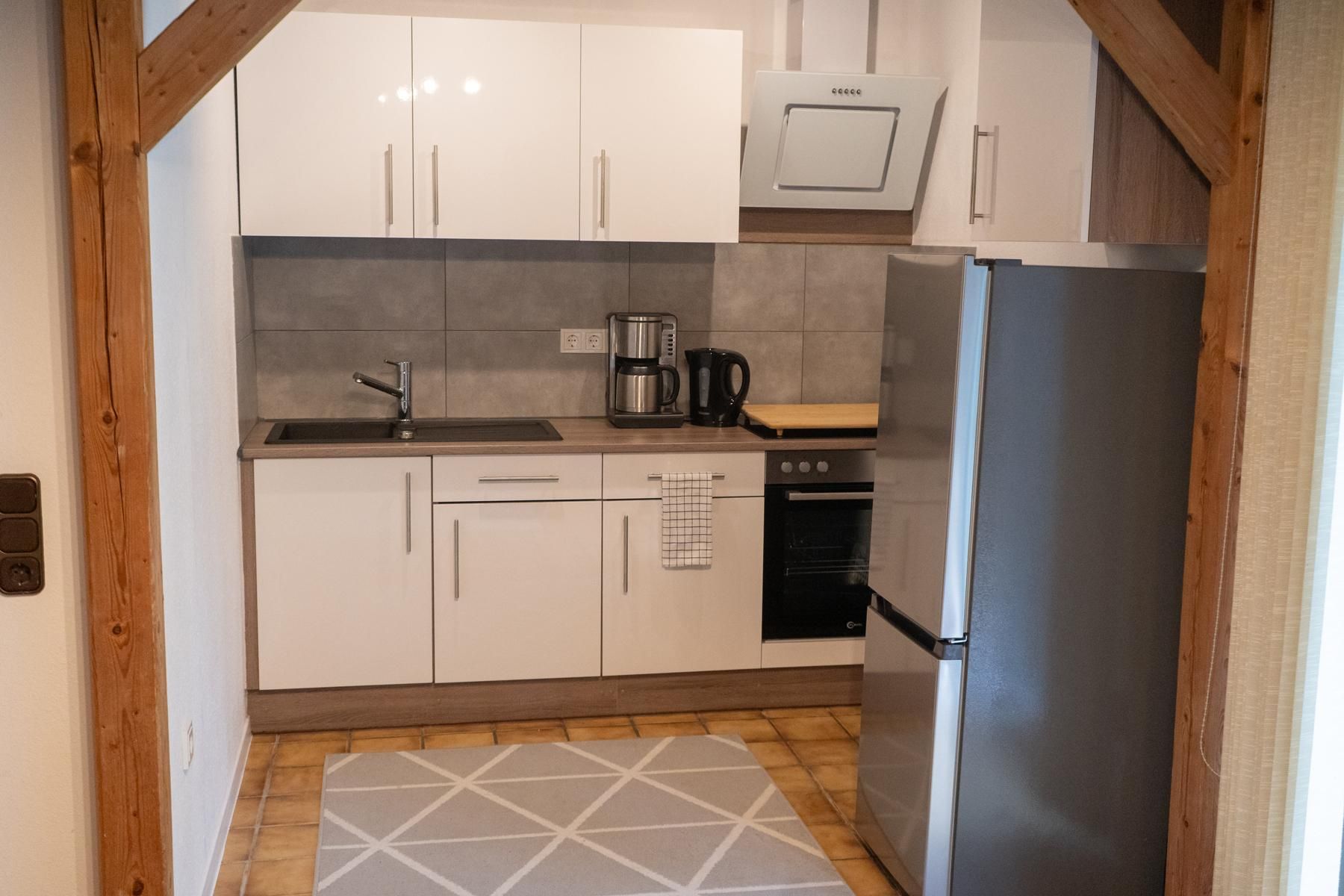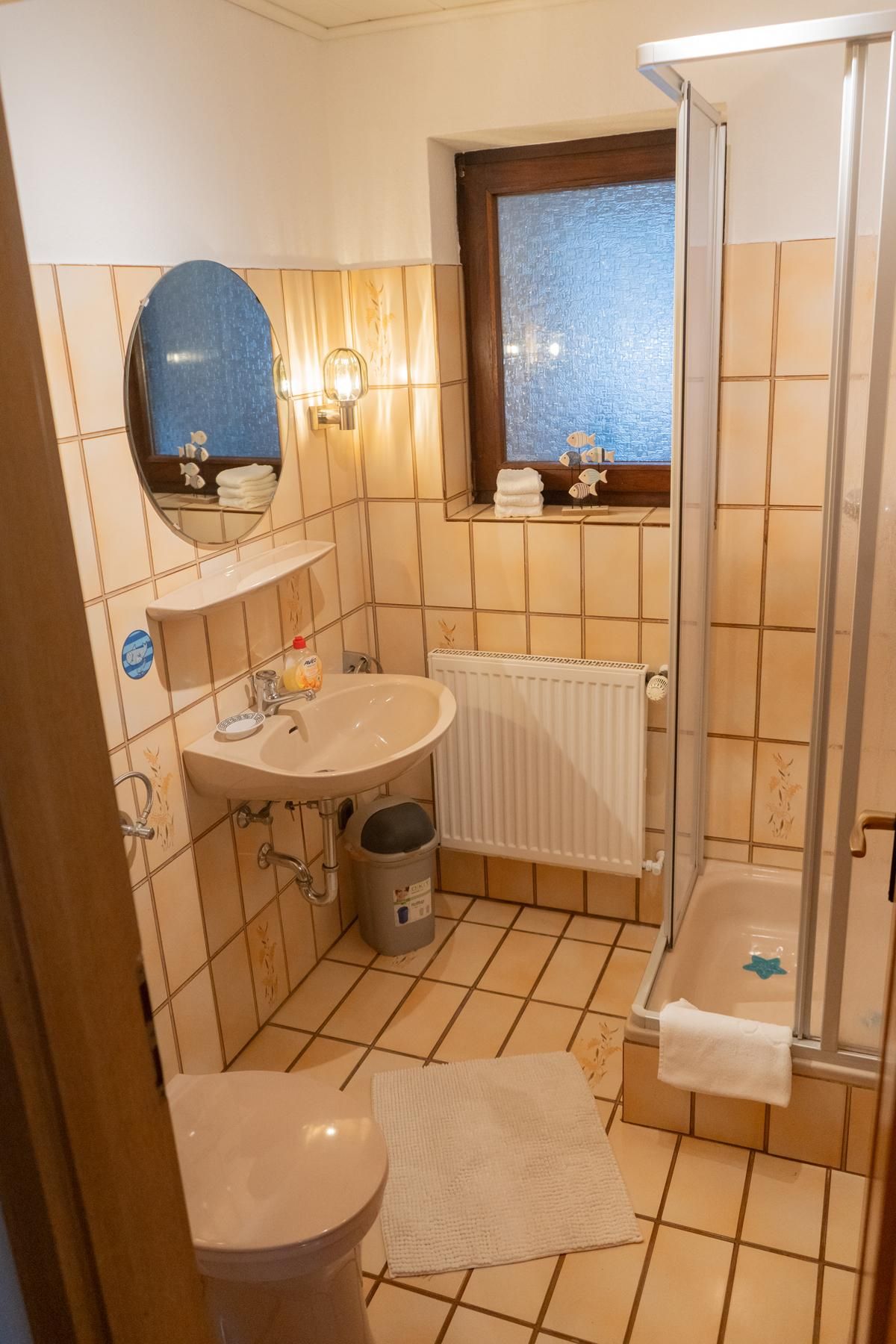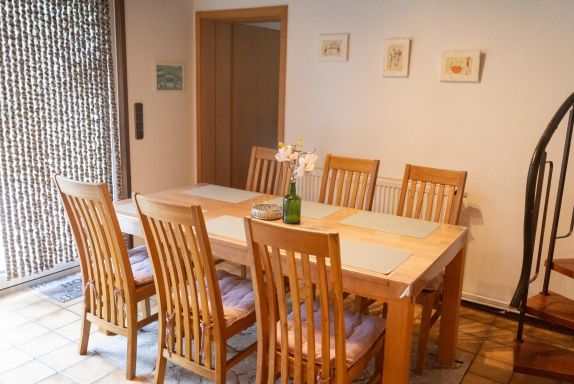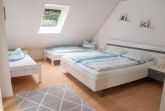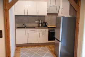 Die Ferienwohung Süd W3 hat im Erdgeschoss ein Schlafzimmer mit Doppelbett und zwei separaten Couchbetten, eine Küche (Mikrowelle, 4-Plattenherd, Kaffeemaschine, Wasserkocher, Toaster) mit einer Essecke und ein Badezimmer mit Dusche /WC. Eine Wendeltreppe führt ins 1. Obergeschoss in ein Wohnzimmer mit Sitzecke (Radio, Sat-TV), Kamin und zwei zusammengestellten Couchbetten. Über eine Raumspartreppe erreichen Sie das Dachgeschoss mit einer Spielhöhle für Kinder (nicht für Kleinkinder geeignet).