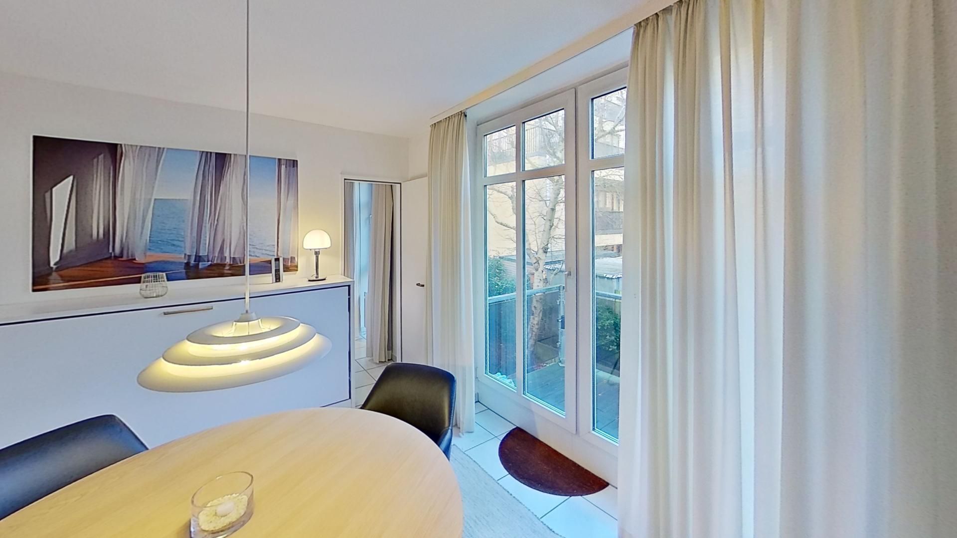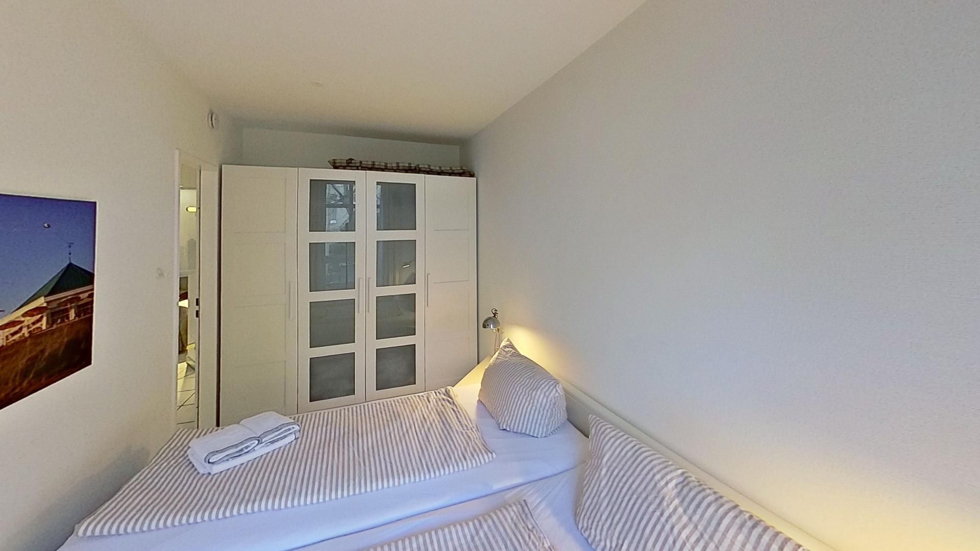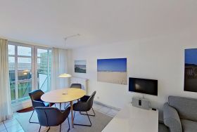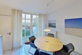 Die Ferienwohnung Auszeit für drei Personen liegt in ruhiger Lage im Zentrum Norderneys. Sie bitte einen gemütlichen Wohnraum mit Esstisch und Zugang zum Balkon in den ruhigen Innenhof. In der Sitzecke mit Sofas lassen sich entspannte Abende verbringen. Das Norderneyer Schlafzimmer geht vom Wohnraum ab, genau wie die Küche. Von hier gelangen Sie ins Duschbad. Es stehen Ihnen gemeinschaftlich genutzte Waschmaschine und Trockner gegen Gebühr zur Verfügung. Sie gelangen zum Nordstrand (Kaiserwiese, Milchbar) in wenigen Minuten zu Fuß und sind ebenso im Stadtkern mit Restaurants und Einkaufsmöglichkeiten. Ein Fahrradverleih liegt in fußläufiger Entfernung.