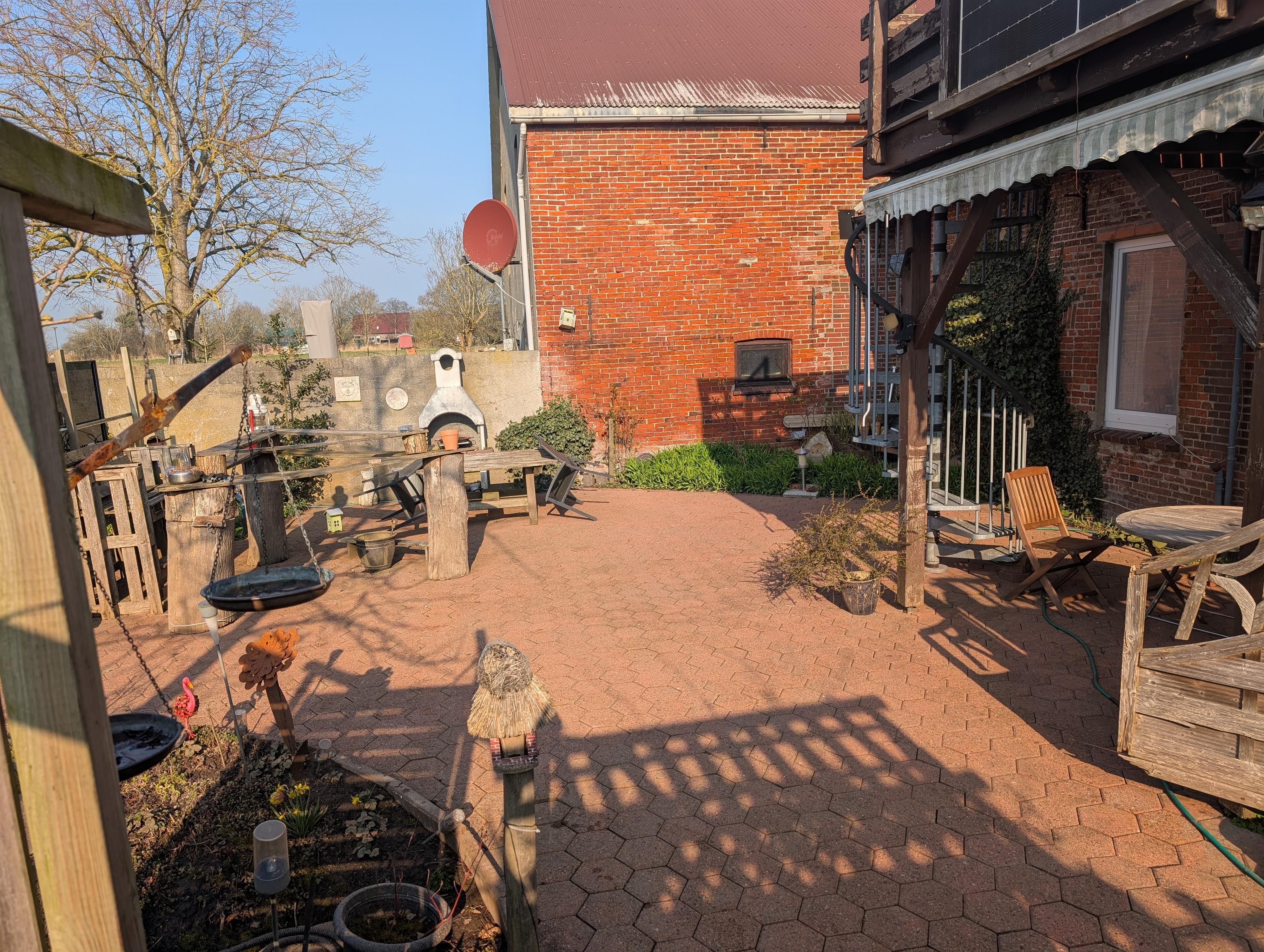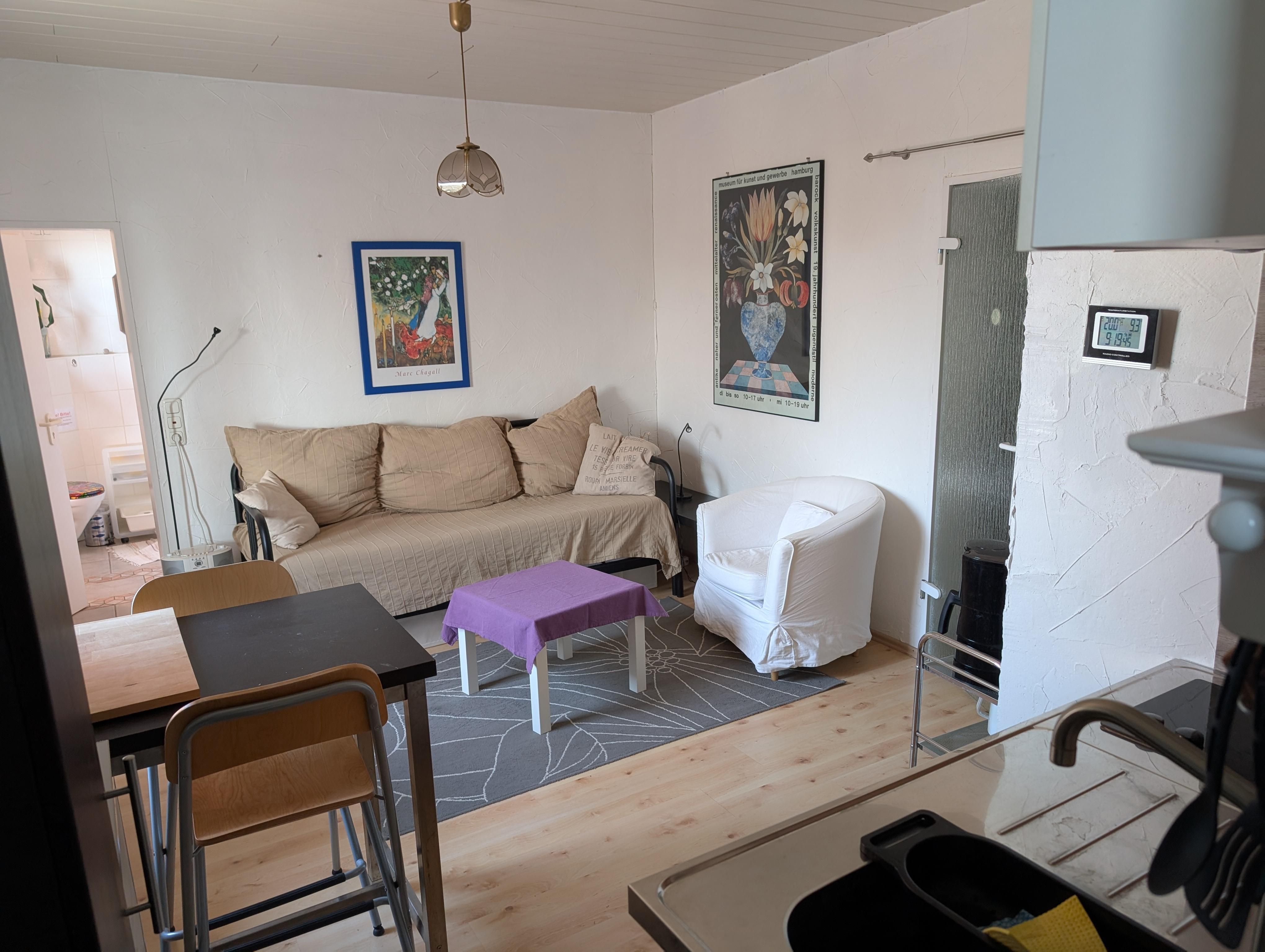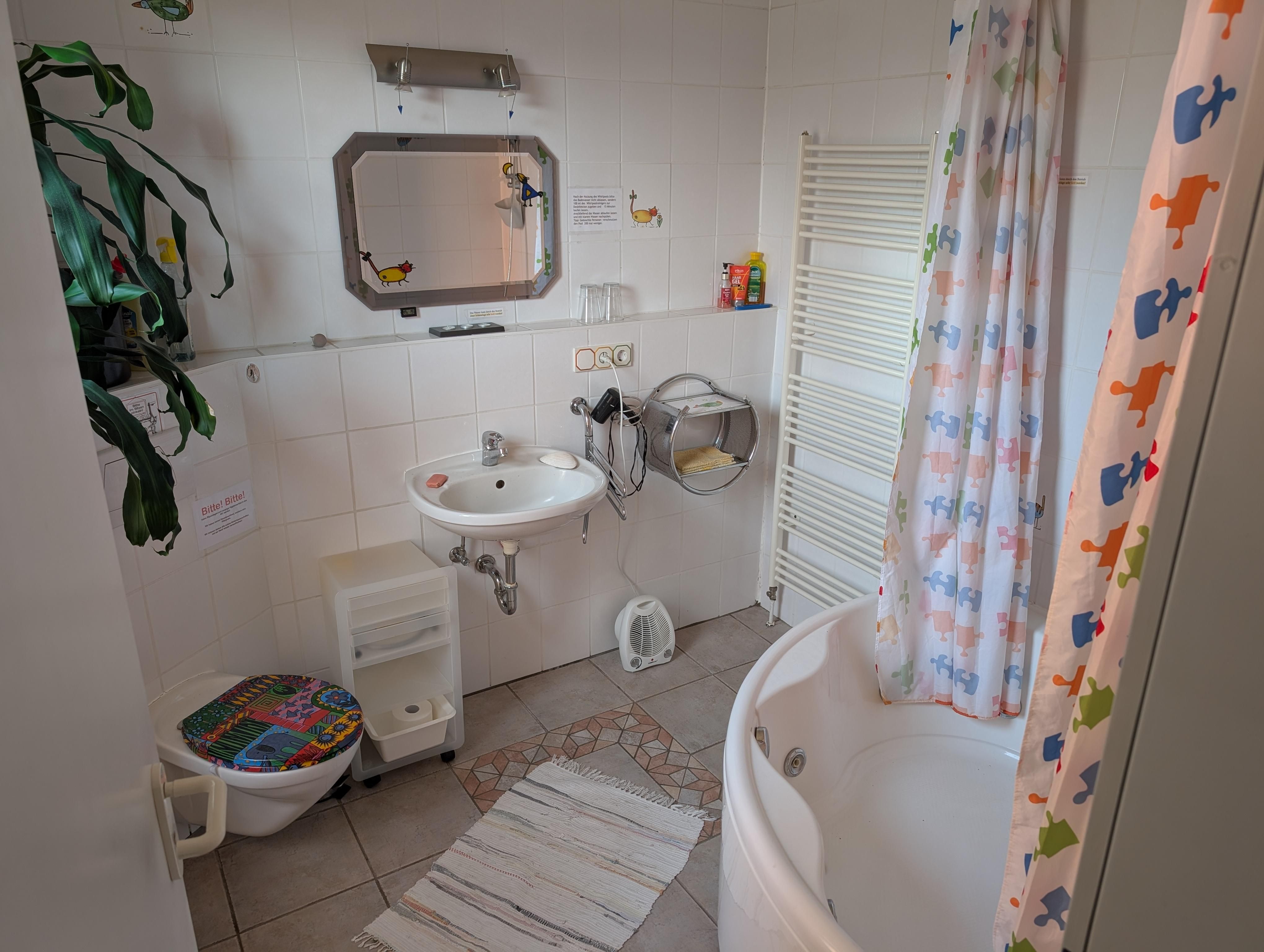 Die sehr gemütliche und helle Ferienwohnung für 4 Personen liegt im Obergeschoss eines sehr schönen Hauses direkt am Deich. Sie hat ein Wohnzimmer mit einer Sitzecke, einem großen Flachbildschirm und einem Zugang auf den Balkon mit Sitzmöglichkeiten für 4 Personen und einer Wendeltreppe in den großen Garten. Die voll ausgestattete Küche hat eine Essecke und eine Küchenzeile mit Backofen, Geschirrspüler, Mikrowelle, Kaffeemaschine, Wasserkocher und Toaster. Die 2 Schlafzimmer haben beide jeweils 2 Einzelbetten und einen Schrank mit genügend Platz. Das kleine Duschbad hat ein Waschtisch, Dusche und WC.