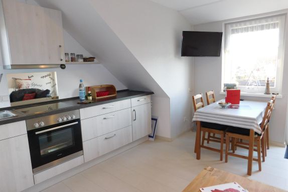 Die neu errichtete Ferienwohnung (Nichtraucher) für 3 Personen befindet sich im Obergeschoss, in ruhiger Lage in Ortskernnähe in Burhave. Die Wohnung ist sehr gemütlich und komfortabel eingerichtet. Sie verfügt über einen offenen Wohnbereich mit Küchenzeile (E-Herd mit Backofen, Kühlschrank mit 3 Sterne Gefrierfach, Geschirrspüler, Mikrowelle etc.). Ein Kinderzimmer, großes Schlafzimmer mit Doppelbett und Platz für ein Babybett. Alle Zimmer verfügen über ein TV-Gerä und sind mit elektrischen Aussenrolläden ausgestattet. 2 Badezimmer mit Dusche und WC. Zu der Wohnung gehören ein geräumiger, voll ausgestatteter, überdachter Balkon, auf dem selbstverständlich geraucht werden darf. In der Fewo befindet sich eine Sauna. Für die Saunabenutzung berechnen wir jeweils 15 €. Bettwäsche und Handtücher können gegen eine Gebühr dazugebucht werden. Bettwäsche pro Person 12 €, Handtücher (2 Duschtücher, 2 Handtücher) pro Person 8 €. Kinderbett und Hochstuhl sind in der Wohnung vorhanden. Zusätzlich vohanden: 1 Bollerwagen, 1 Kinderdreirad und 1 kleines Kinderlaufrad. Unterstellmöglichkeit für eigene Fahrräder ist vorhanden. Kostenloses W-Lan, Spiele für Innen. Autostellplatz am Haus. Das Mitbringen von Haustieren ist nicht gestattet. Wir berechnen 50 € Endreinigung und eine Kaution von 100 €.
