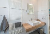 Für erholsame Stunden drinnen wie draußen sorgen das dekorative elektrische Kaminfeuer sowie die überdachte, nach Süden gerichtete Loggia mit Rattan-Möbeln, Lounge-Garnitur und Elektrogrill. Die Küchenzeile bietet höchste Qualität und Top-Ausstattung. Hier wurde an alles gedacht. Das Tageslichtbad mit Regendusche, Echtglaskabine und Fußbodenheizung bietet ungestörte Wellness-Momente. Tolle Fliesen und super Ausstattung, wie z.B. ein eingebautes Radio, bringen weiterhin gute Laune ins Bad. Zusätzlich steht ein weiteres WC zur Verfügung.
