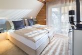 Im Schlafzimmer mit gemütlichem Doppelbett finden Sie Ruhe und Erholung. Für zusätzliche Gäste oder entspannte Lesestunden steht im Wohnzimmer eine komfortable Schlafcouch bereit. Der stilvolle Wohnraum lädt mit kuscheligen Sitzgelegenheiten, Smart-TV und viel Licht zum Relaxen oder zu einem gemütlichen Fernsehabend ein.
