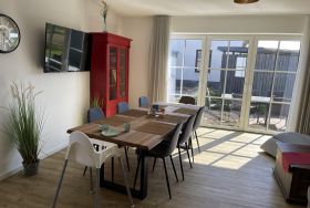 Das Ferienhaus 15 befindet sich auf der wunderschönen, im Jahr 2018 neu erbauten Komfort-Ferienanlage Gut Tossens nur ca. 100 m von dem schönen Strand der Nordsee-Halbinsel von Butjadingen entfernt. Im April 2022 wurde das Haus renoviert und erstrahlt nun wieder im neuen Glanz. Die Ferienanlage ist ideal für jeden Urlaubstyp und jedes Alter geeignet - ob Alleinreisende, Pärchen oder Familien mit Kindern, hier finden Sie viel Platz und Gemütlichkeit für jeden Anspruch. Von der Ferienanlage aus können Sie zu Fuß oder mit dem Rad alle wichtigen Freizeitanlagen und Versorgungen, wie den Badestrand mit großem Kinderspielplatz, das Schwimmbad Aqua Mundo vom Center Parcs und den Ortskern mit Einkaufsmöglichkeiten und Restaurants in wenigen Minuten erreichen. Über die öffentlichen Verkehrsmittel mit Bus- und Fährverbindungen können Sie schöne Ausflüge und Erlebnistouren nach Nordenham, Eckwarden, Burhave, Wilhelmshaven oder Bremerhaven unternehmen.